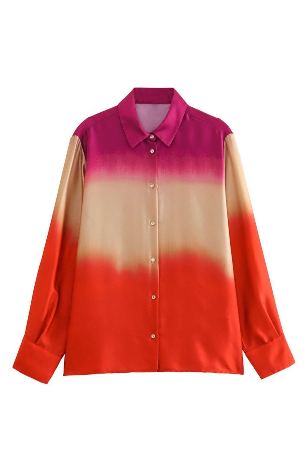 - Gradient Printed, Sunset Color, Loose Fit Blouse, Straight Leg Trousers.