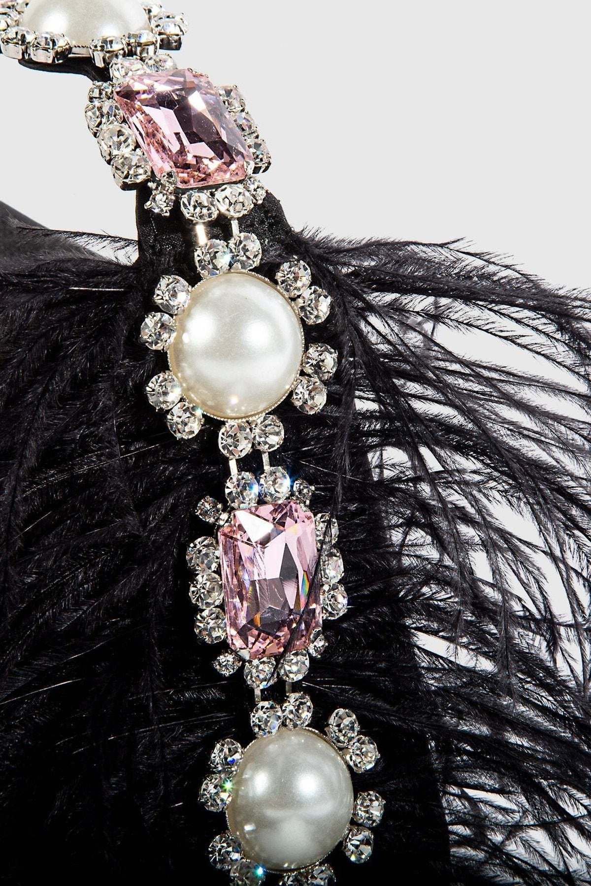 - Diamante Handle, Sparkle Rhinestone, Feather Trimmed, Satin Bag.