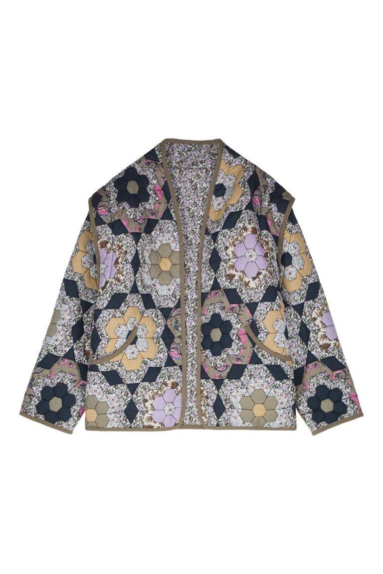 - Floral Print, Removable Sleeves, Double Sided, Pockets, Shawl Collar, Long Sleeves, Hip-Length.