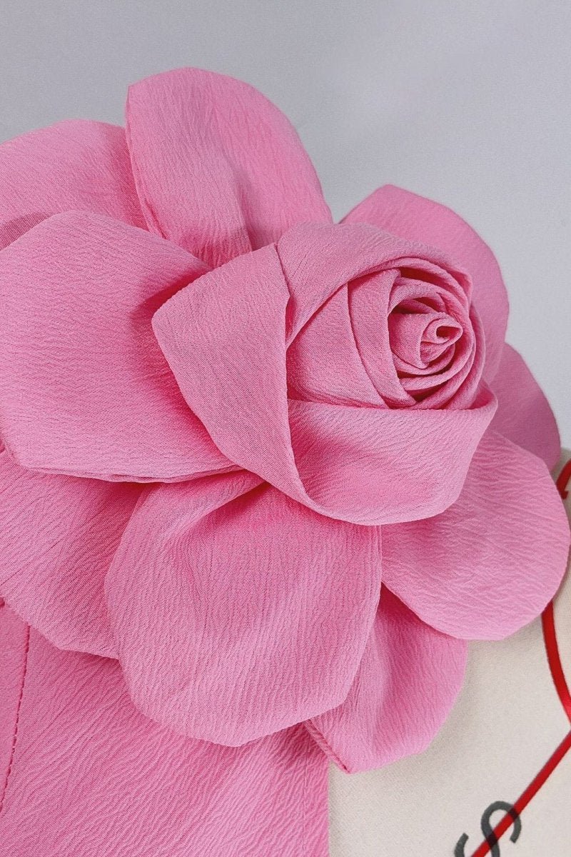 - Cut-out Detailing, 3D Flower Decored, One-Shoulder, Half Sleeve, Midi Length.