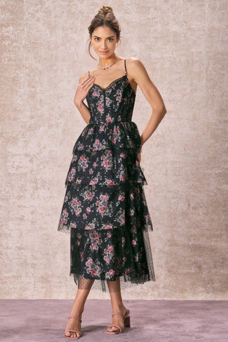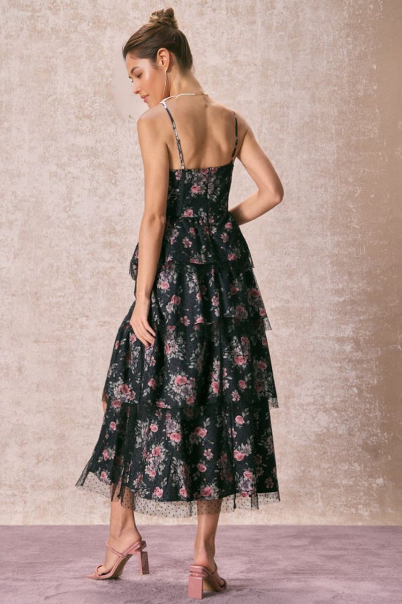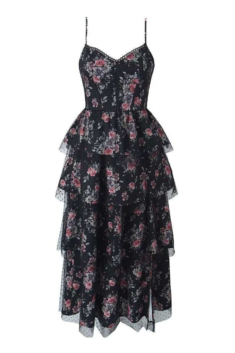 - A-Line, Sweetheart Neck, Floral Printed, Sleeveless, Polka Dot, Ankle Length.