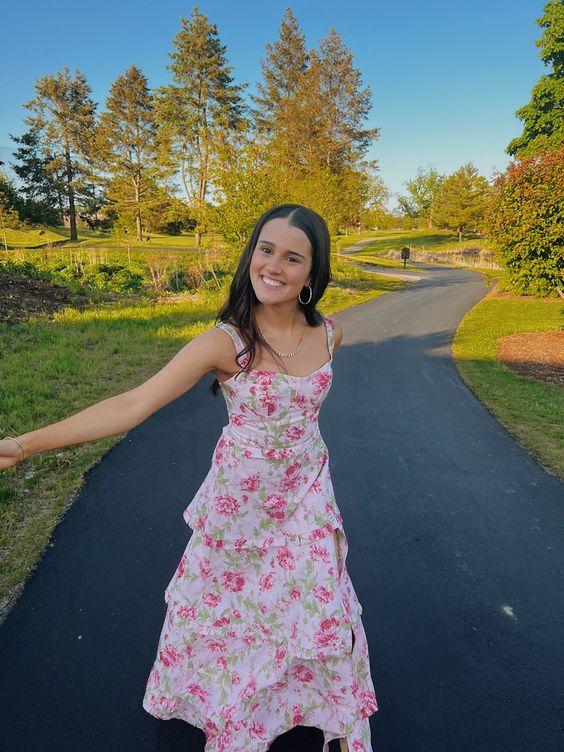 A-Line Sequare Neck Floral Layered Long Prom Dress With Slit Elegant Formal Evening Dress SH1009