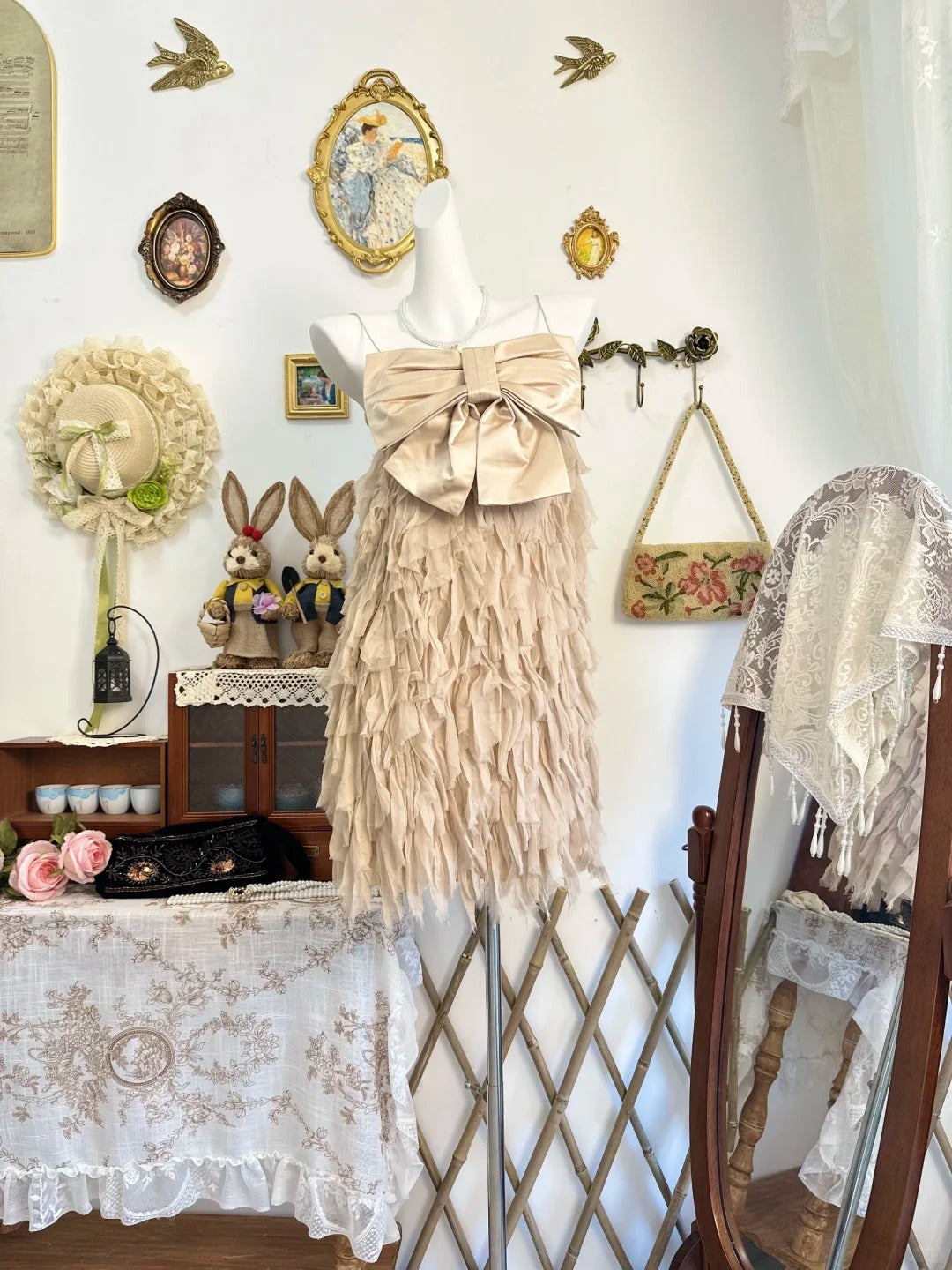 amakanas-Champagne bow vintage short chiffon homecoming dress birthday dress gh5208
