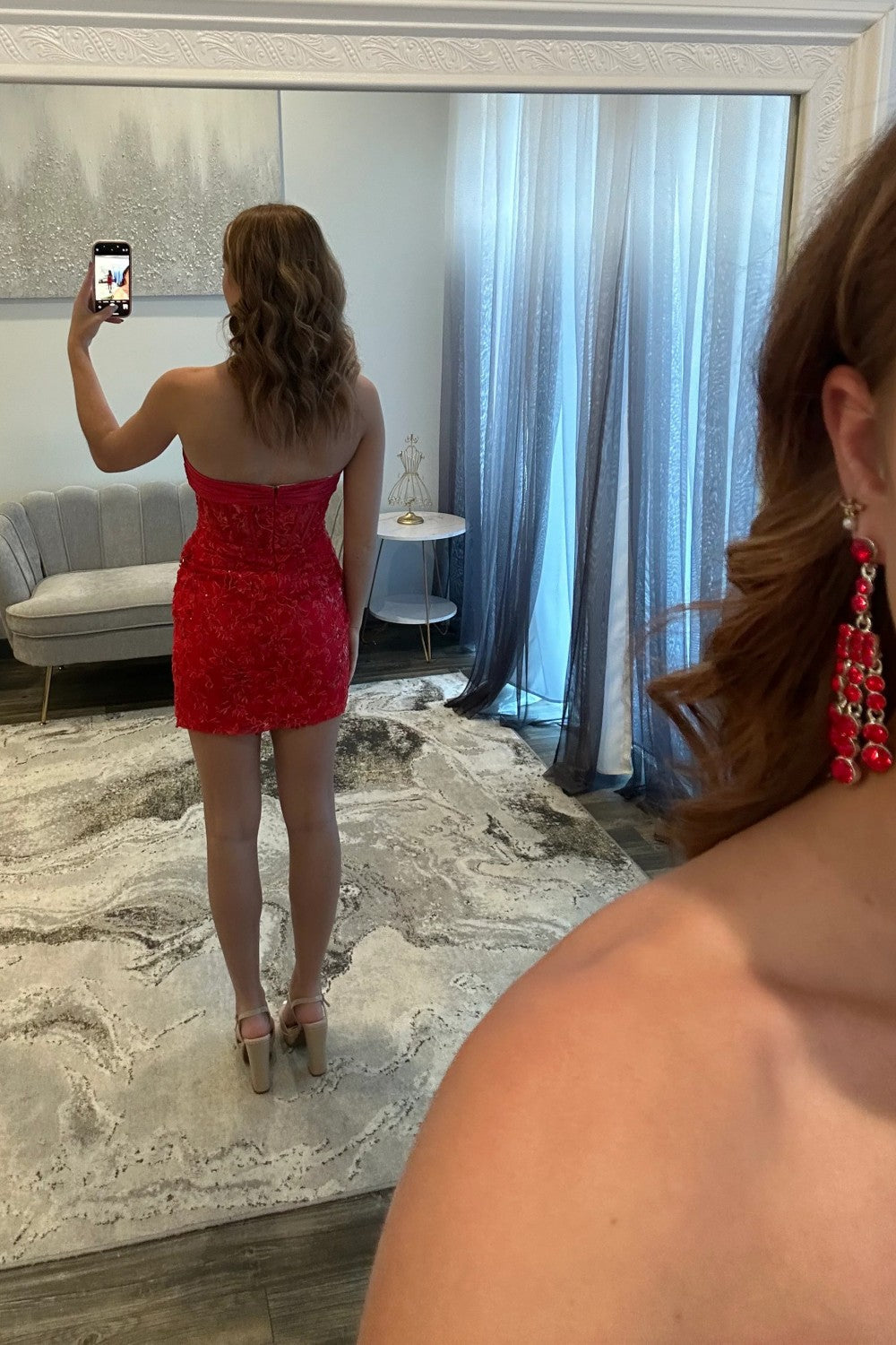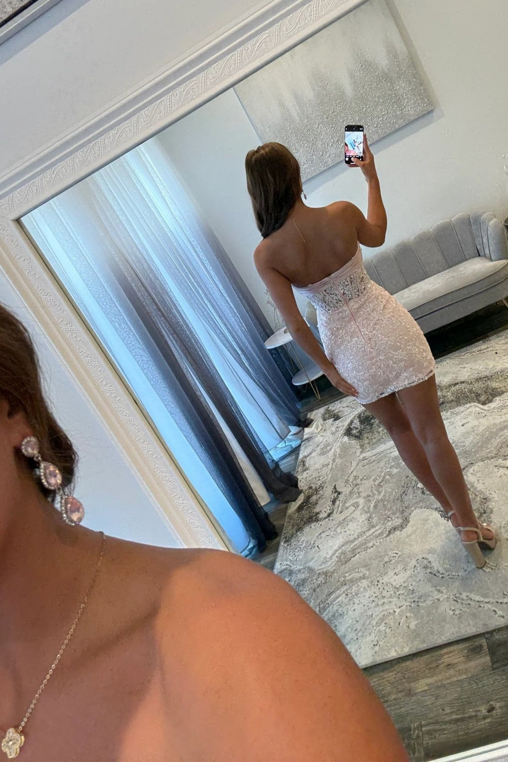 Radiate soft elegance in this Blush Pink Strapless Lace Homecoming Dress featuring a delicately detailed lace overlay, a structured corset bodice for a flattering fit, and a satin bow that adds a sweet, feminine touch. Perfect for homecoming, parties, or any special occasion where you want to feel graceful, romantic, and effortlessly beautiful.