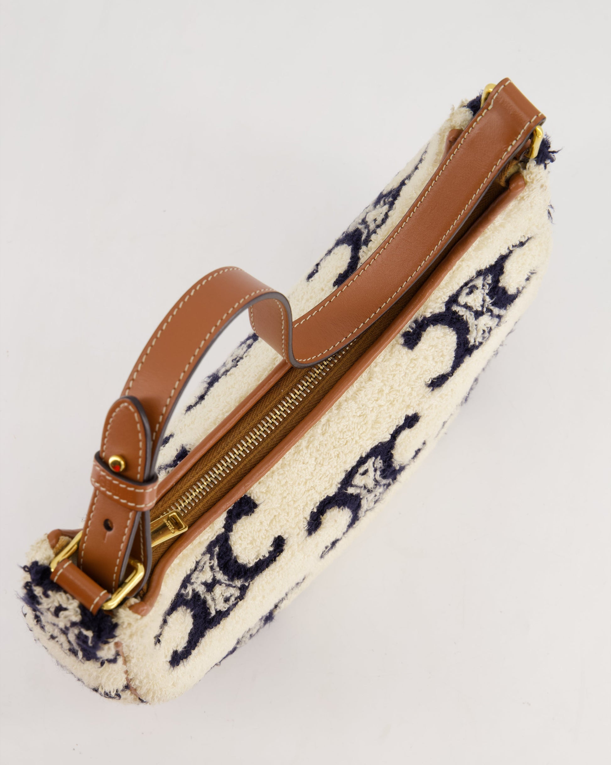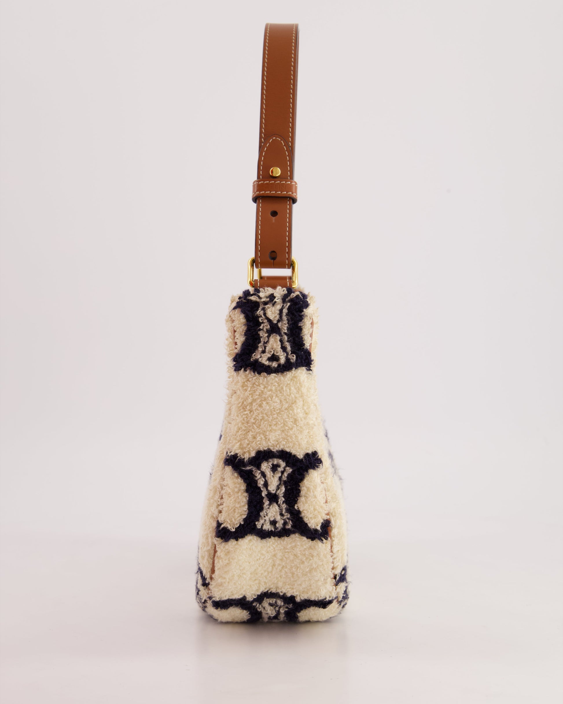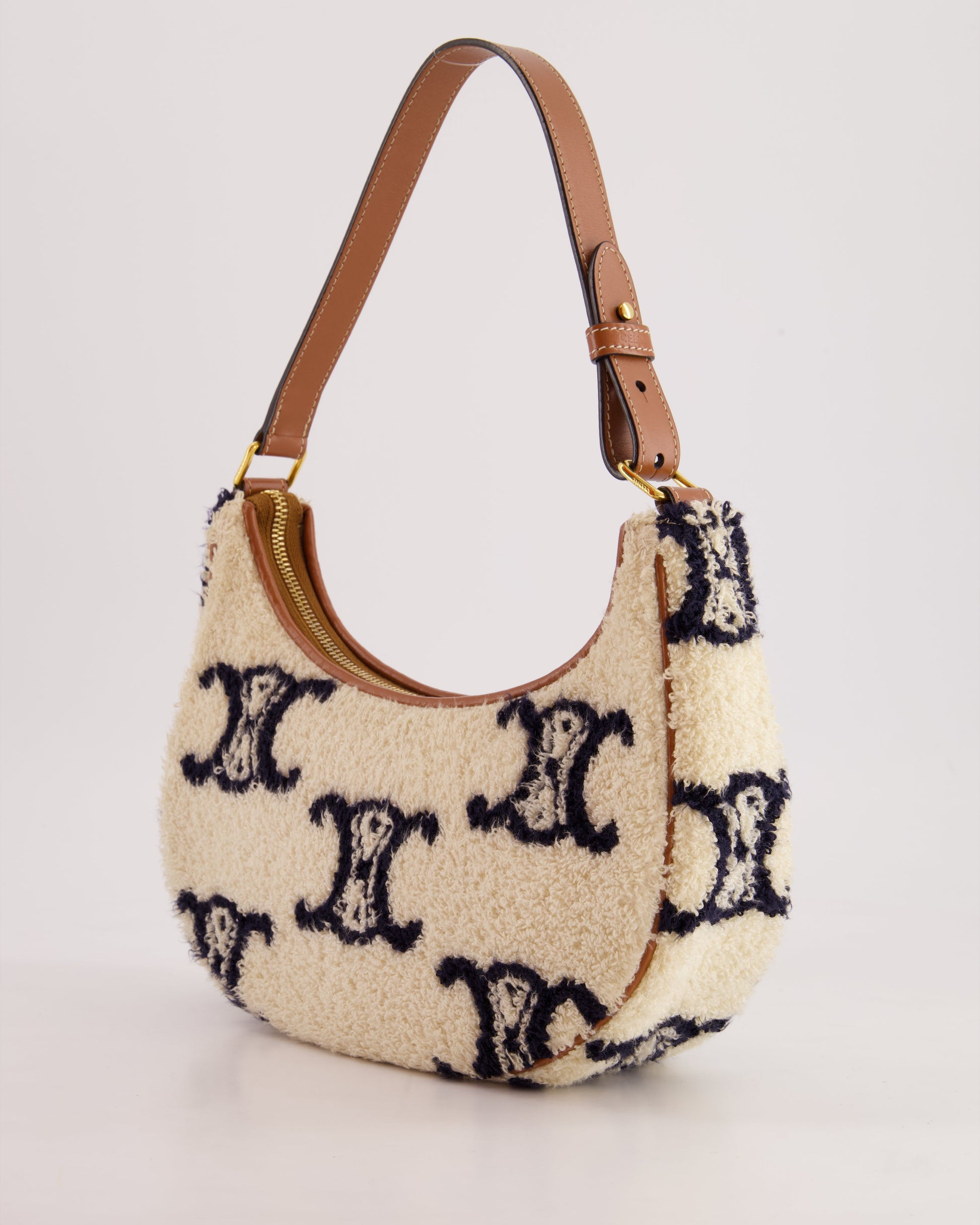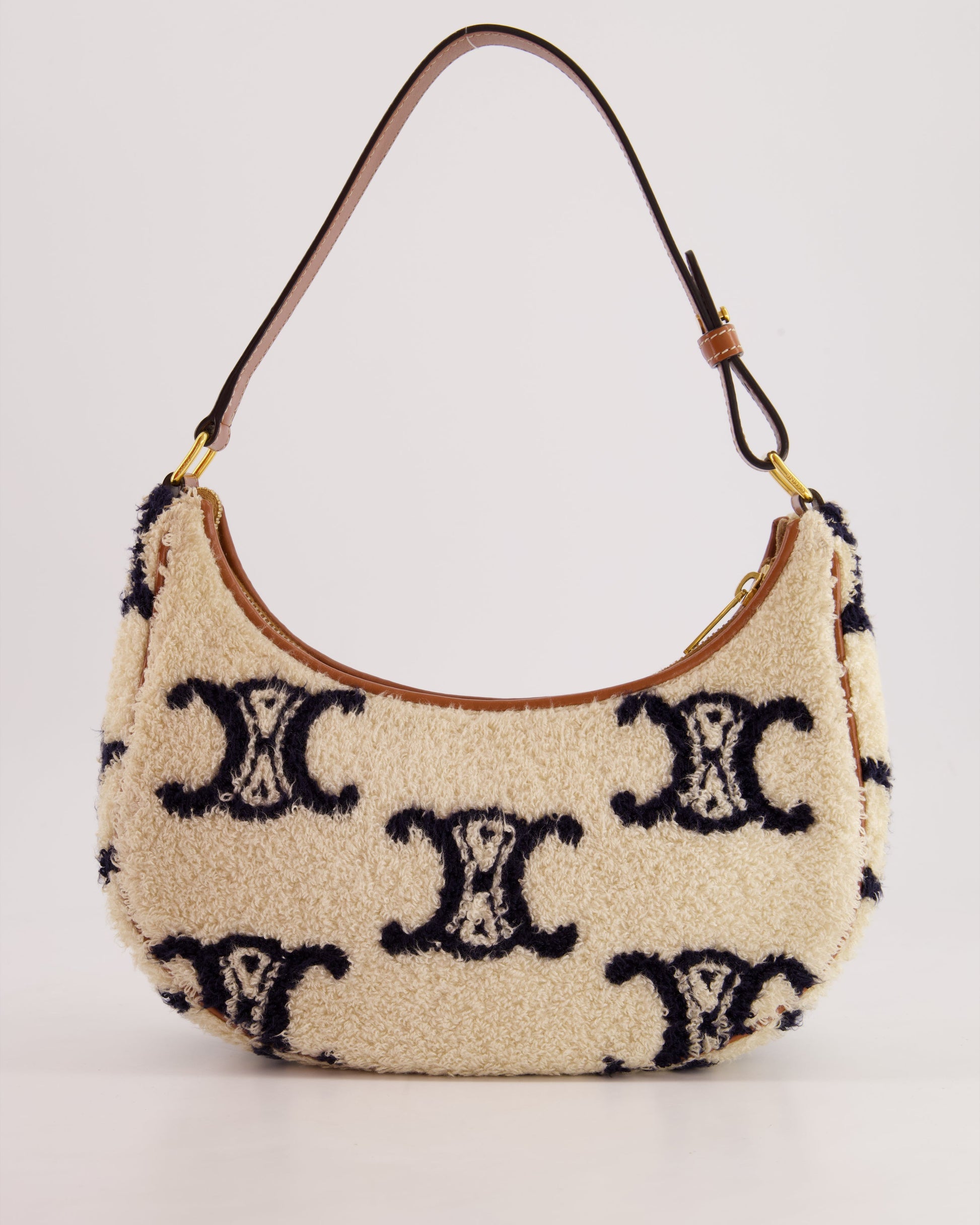 Celine Cream Ava Bag in Shearling with Brown Leather Strap and Gold Hardware Bag