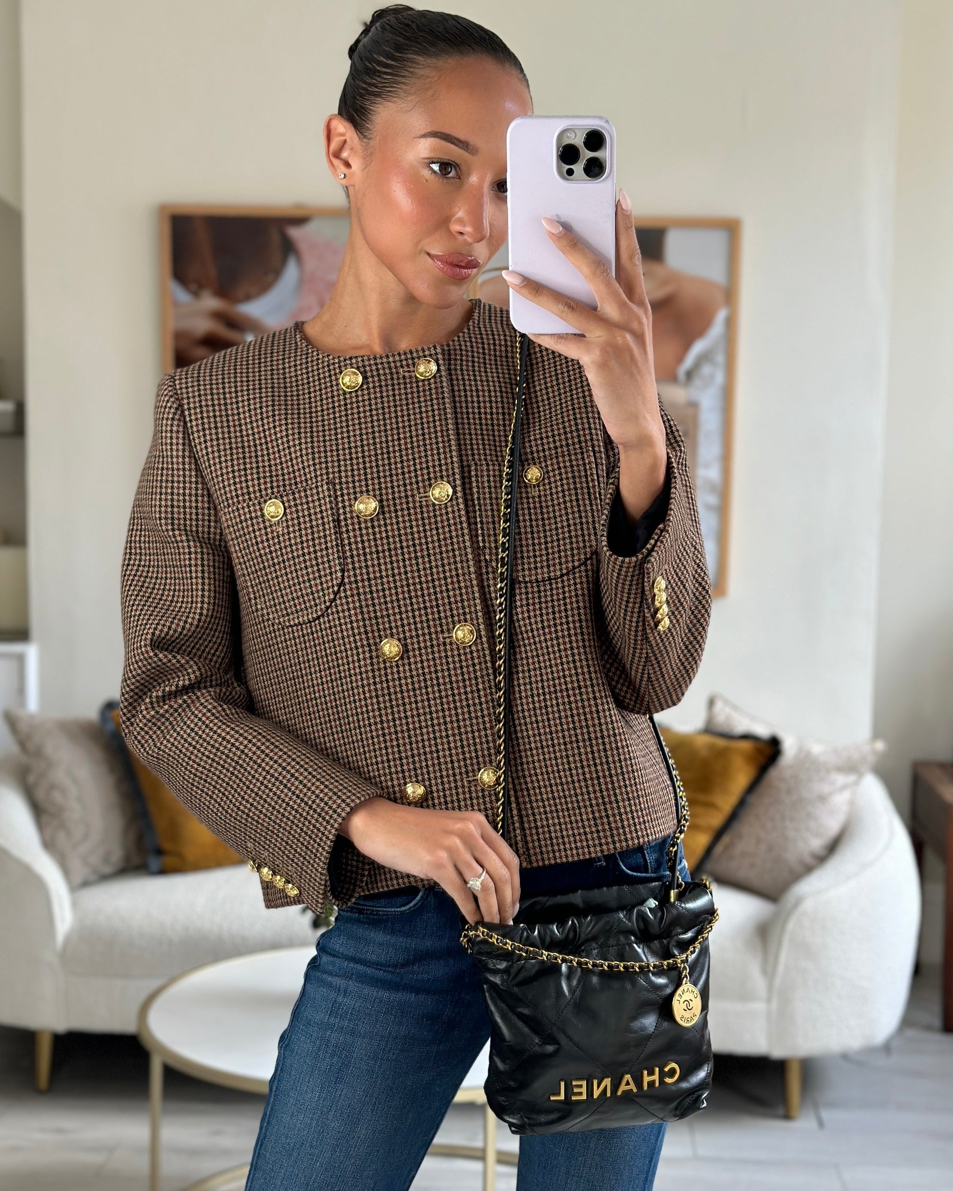 Chanel 22 Mini Hobo Bag in Black Shiny Lambskin with Brushed Gold Hardware
