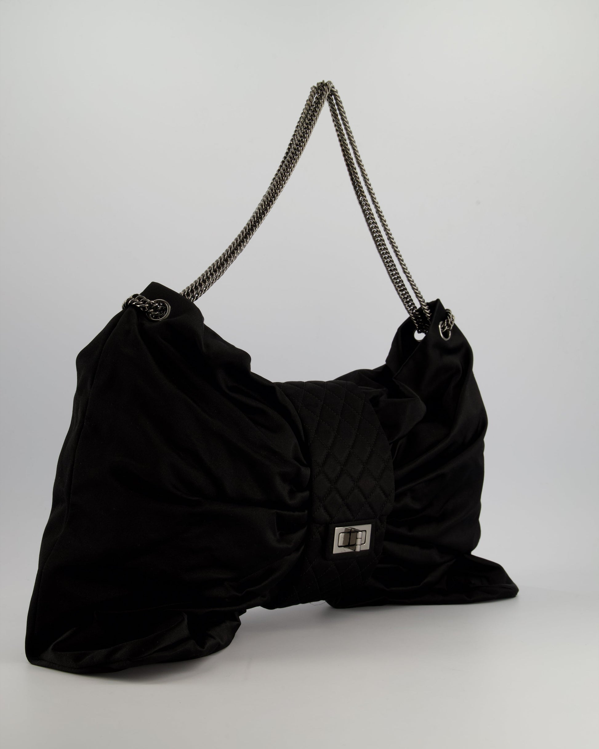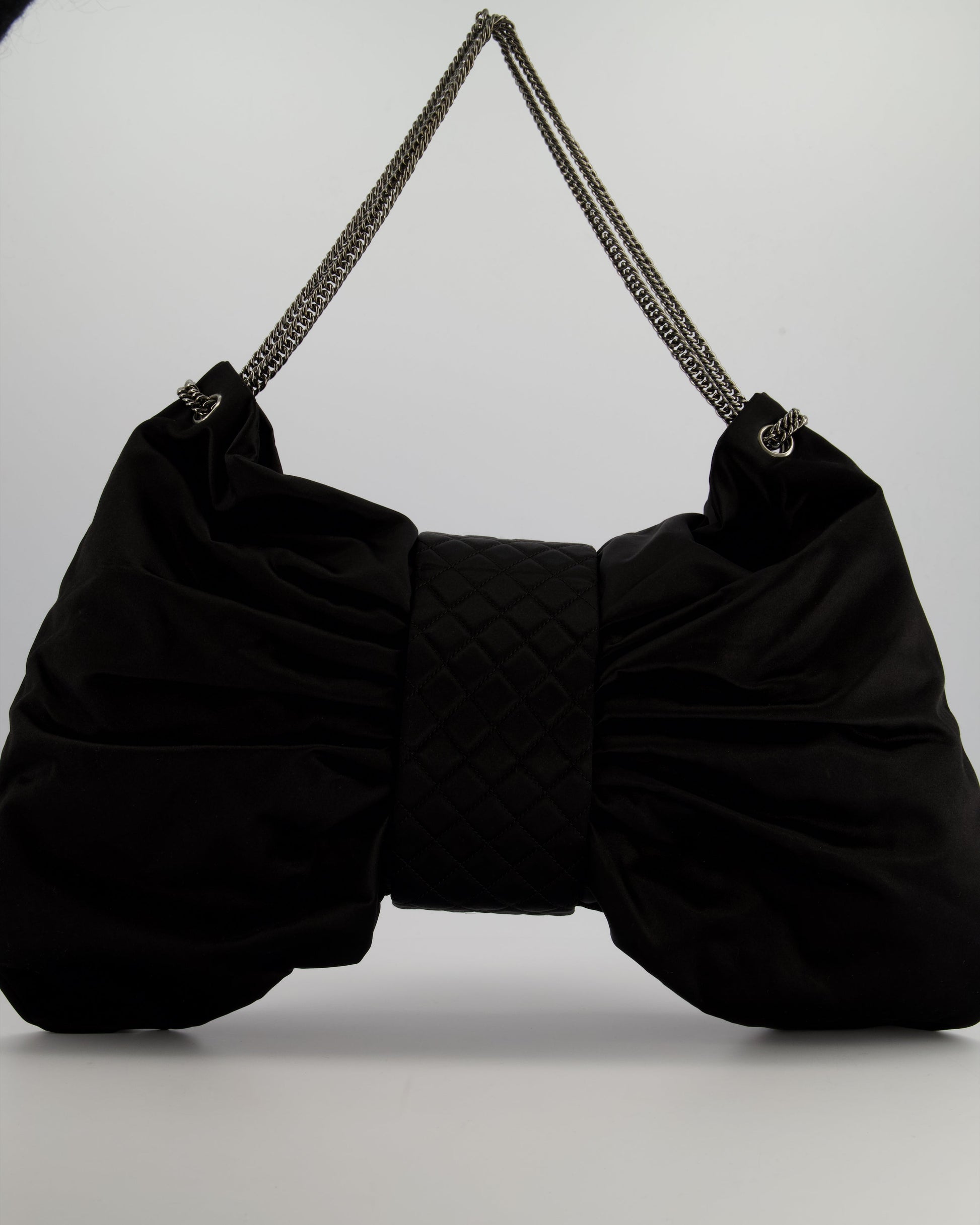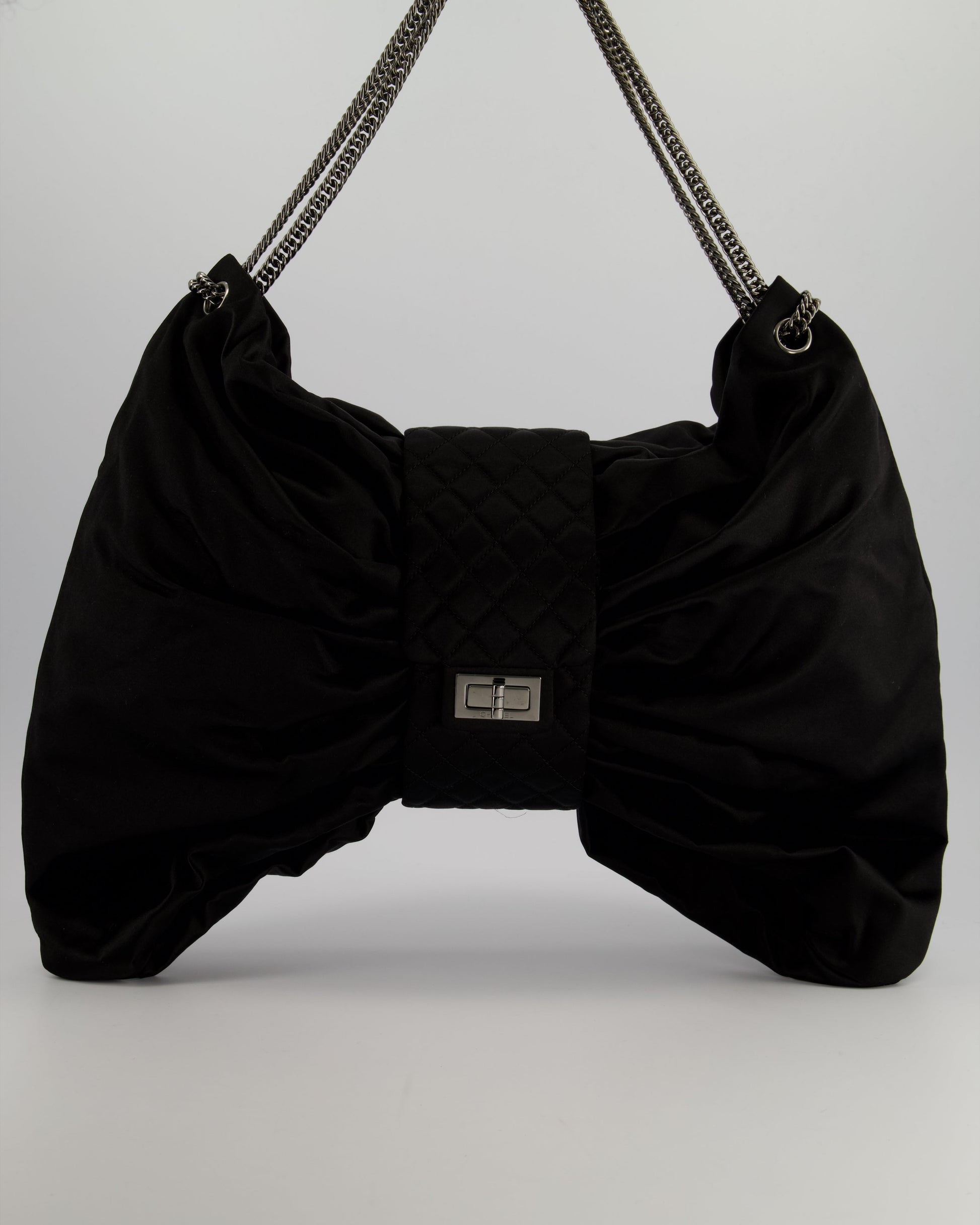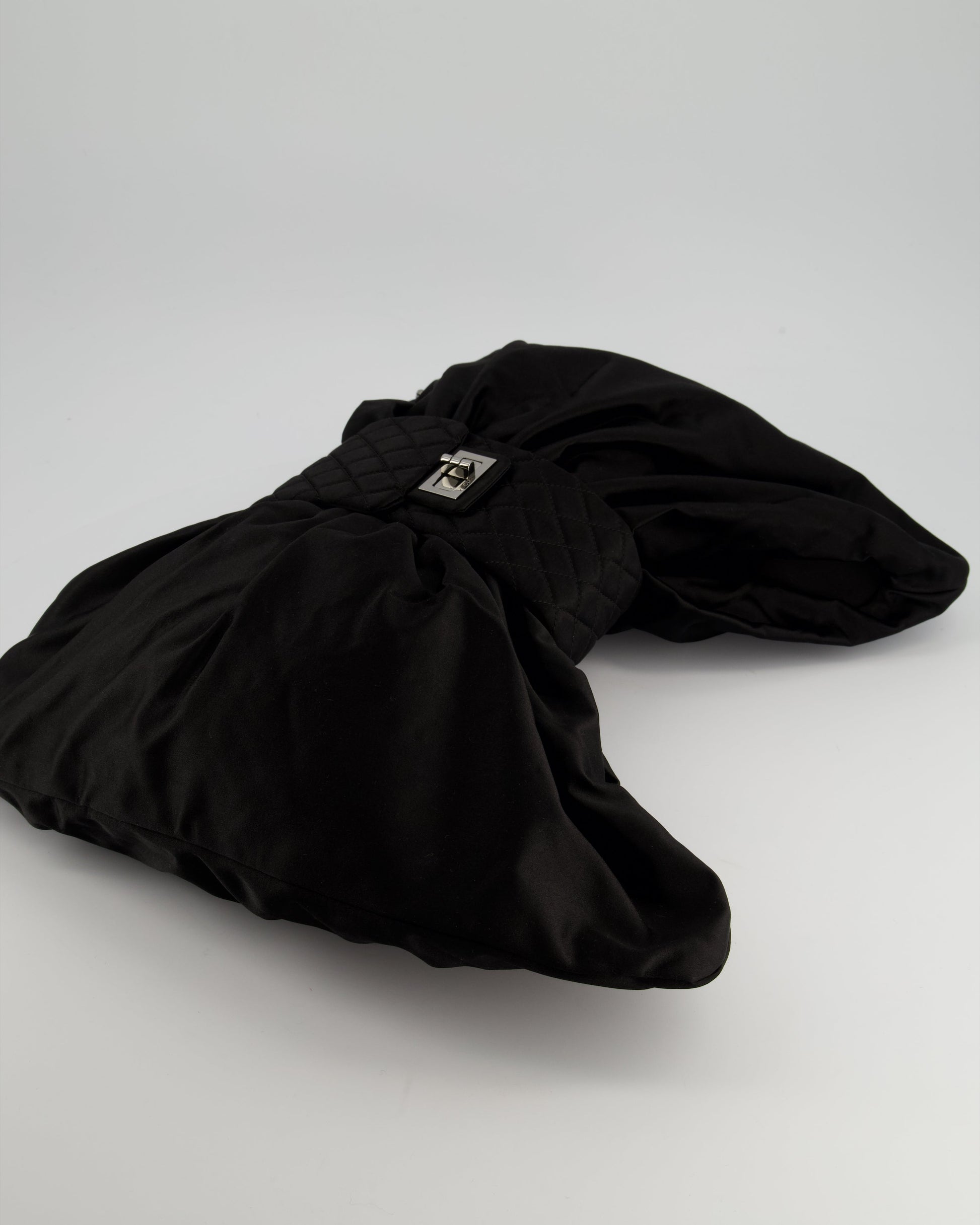 Chanel Black Large Satin Bow Reissue Shoulder Bag with Quilted Flap Detail and Silver Hardware