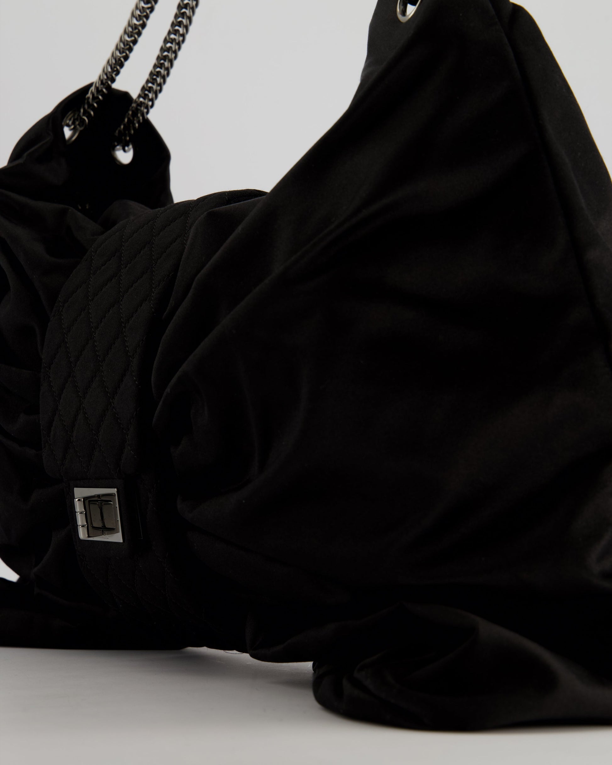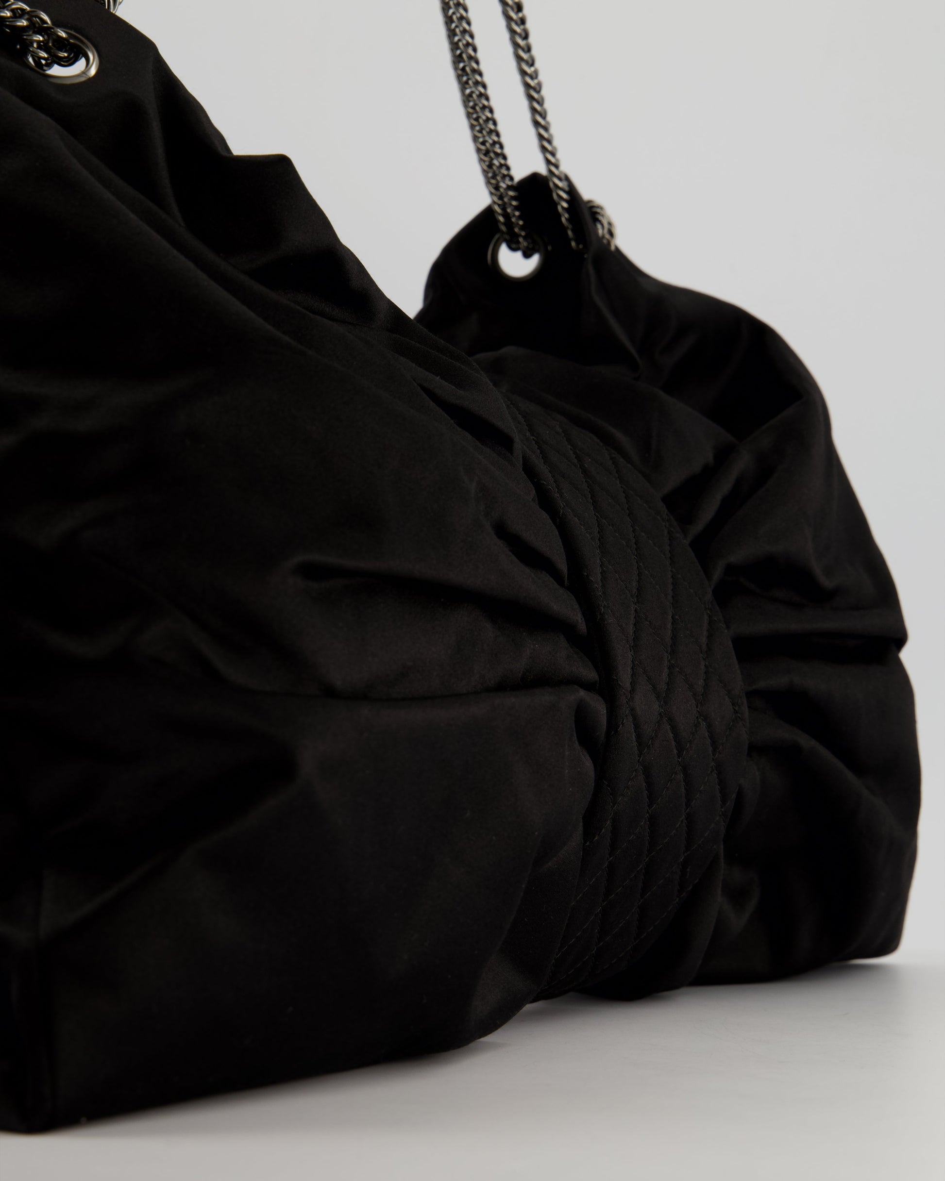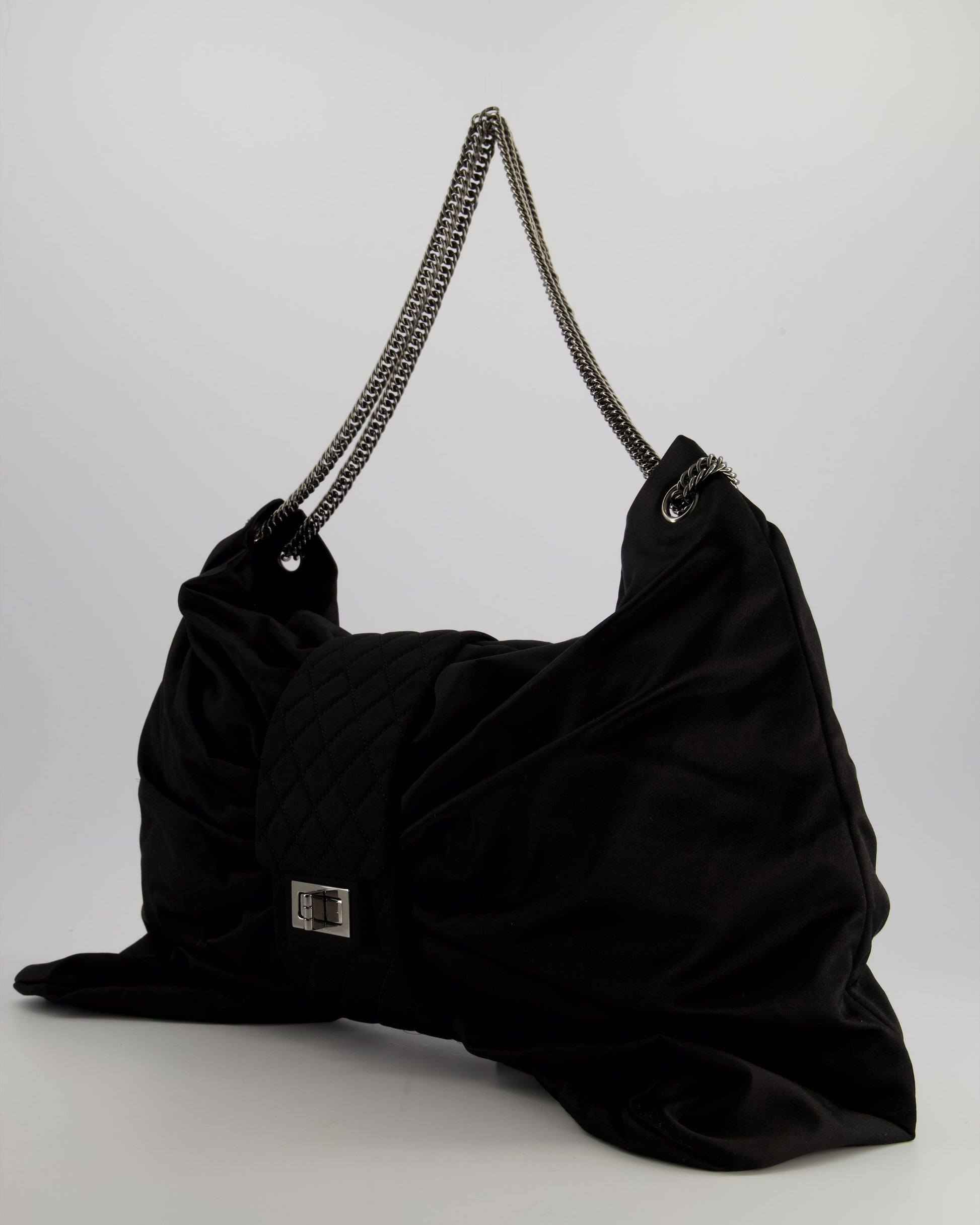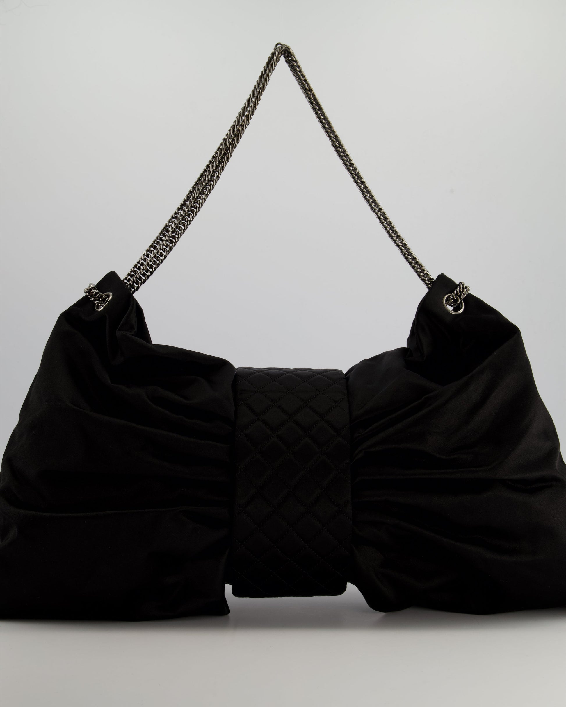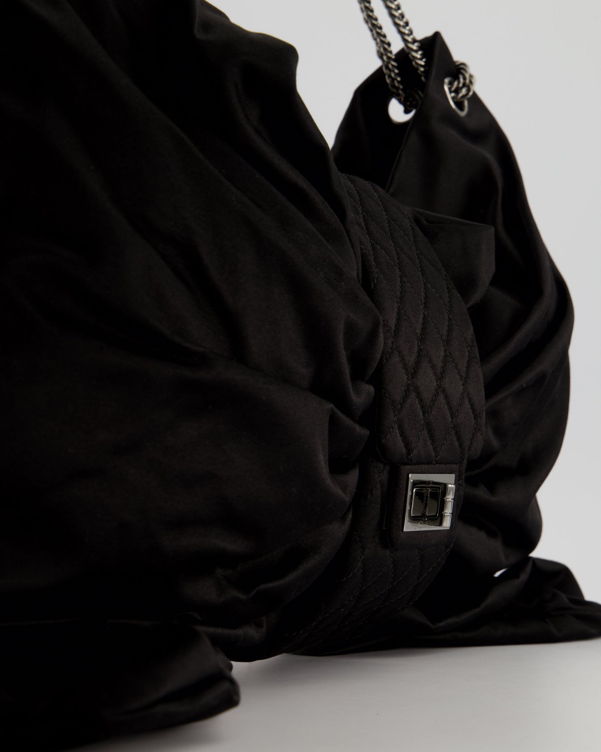 Chanel Black Large Satin Bow Reissue Shoulder Bag with Quilted Flap Detail and Silver Hardware