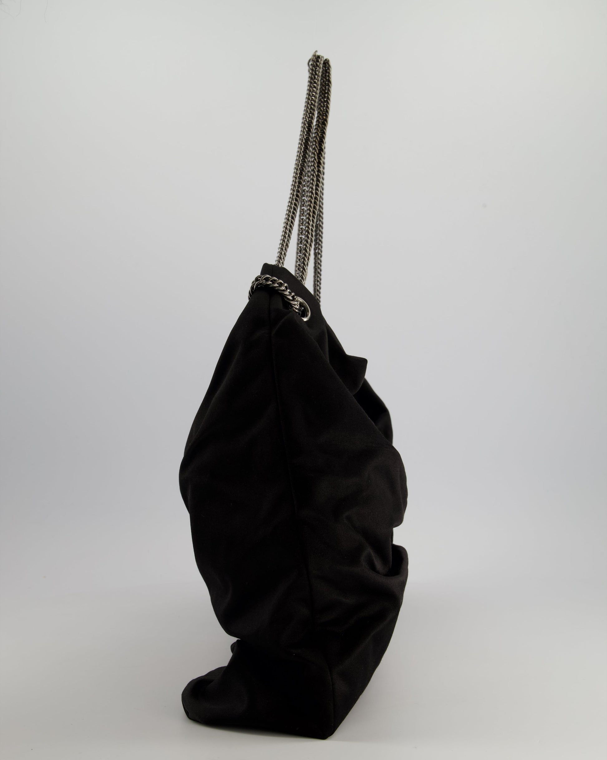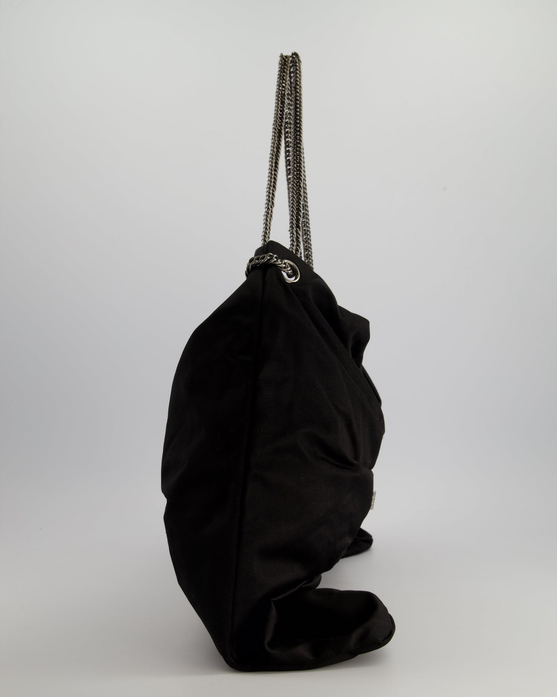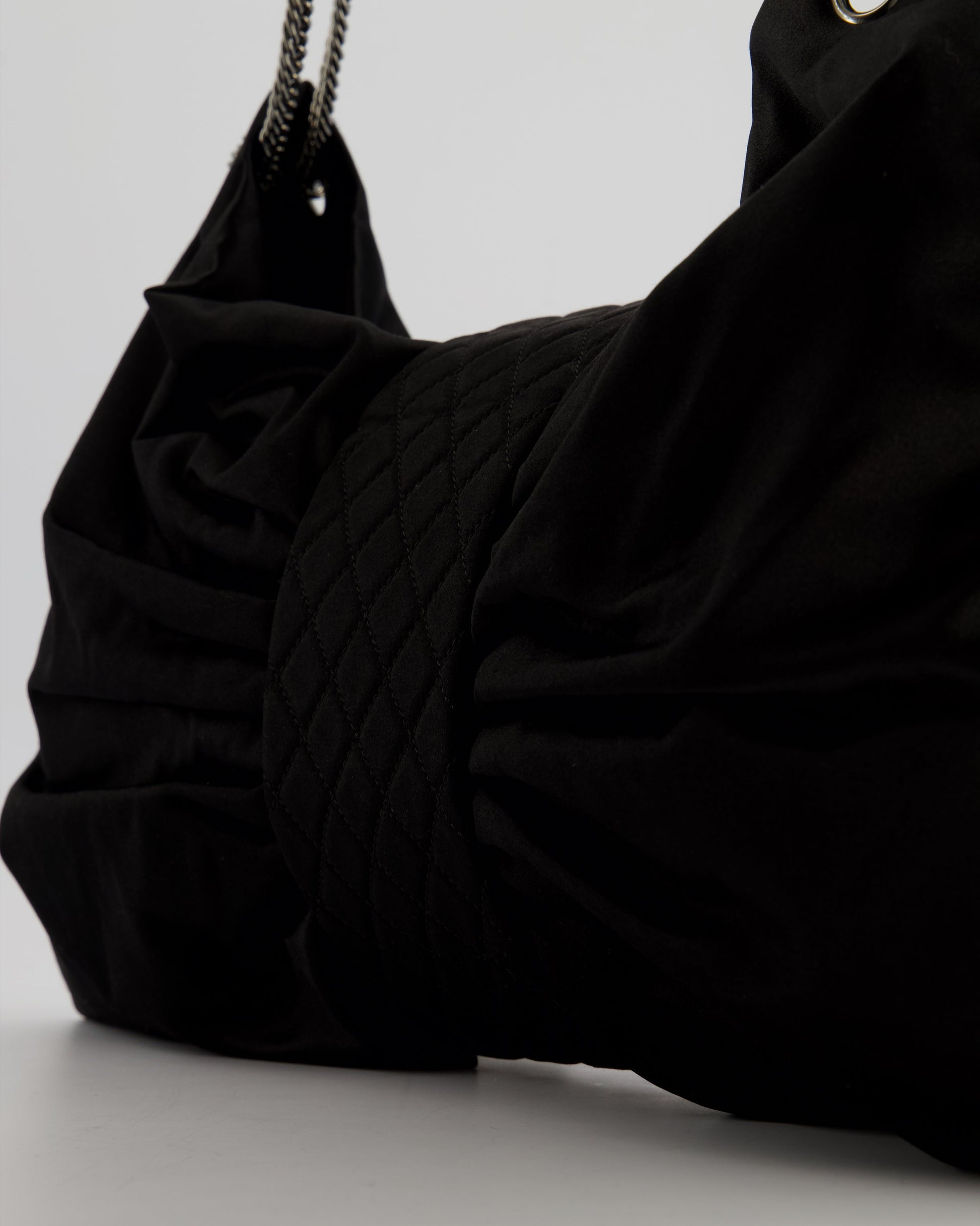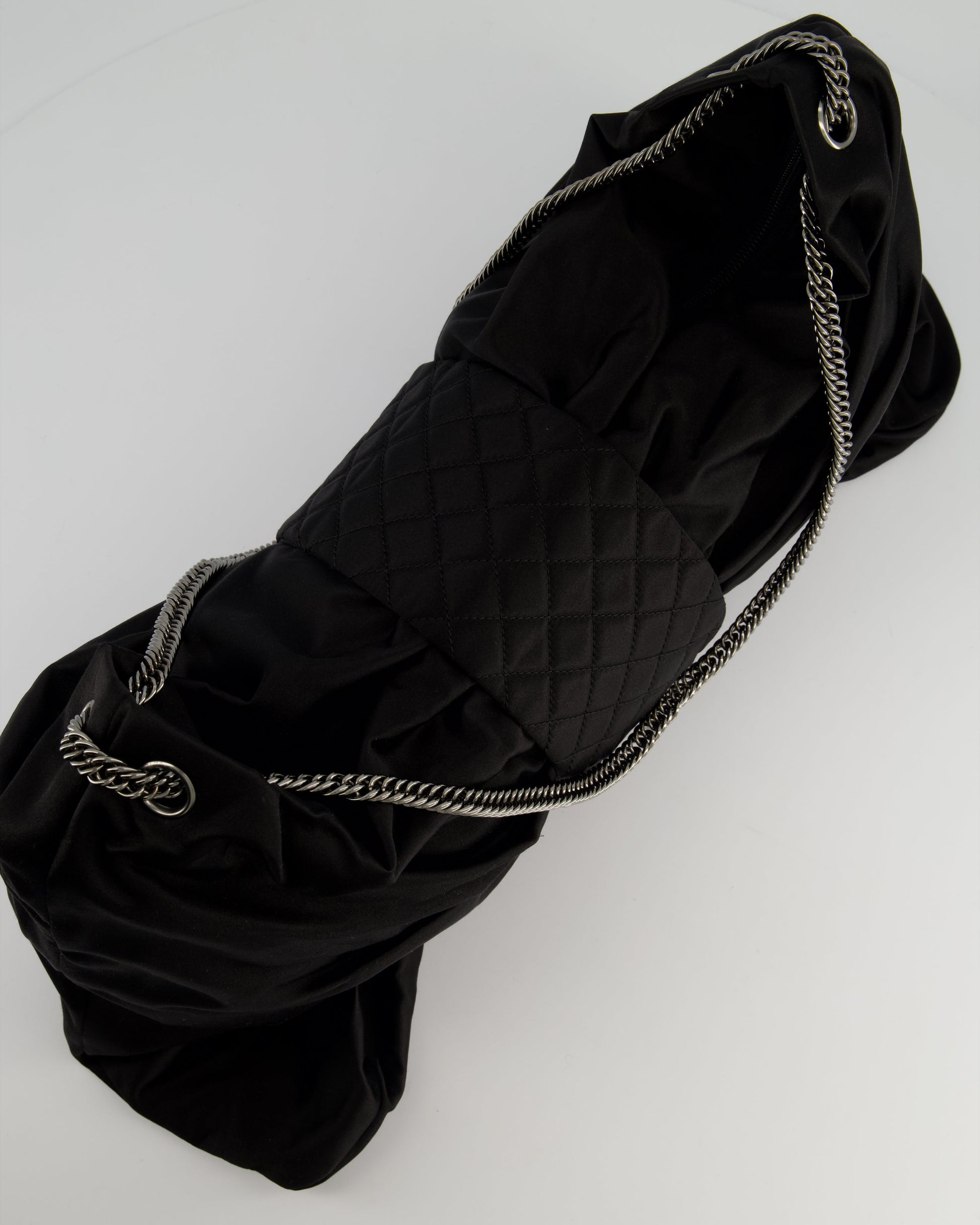 Chanel Black Large Satin Bow Reissue Shoulder Bag with Quilted Flap Detail and Silver Hardware