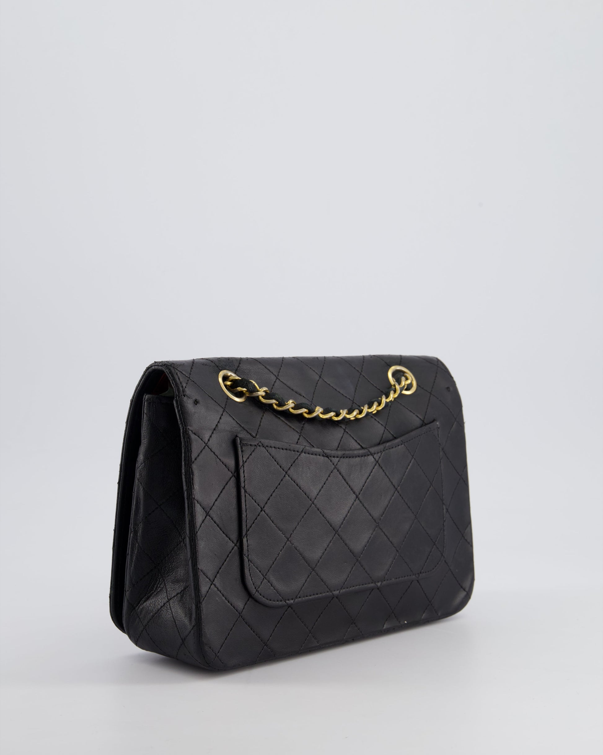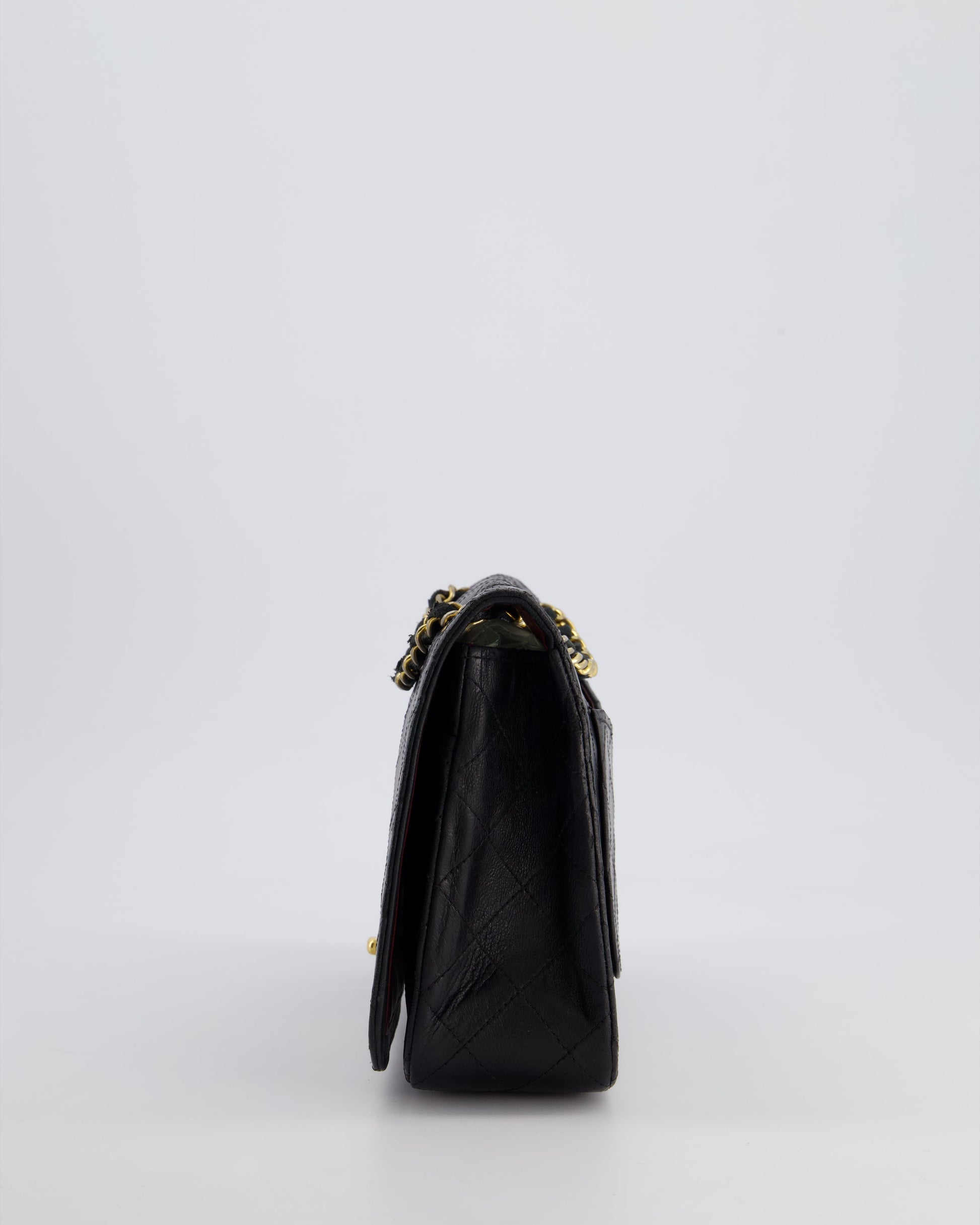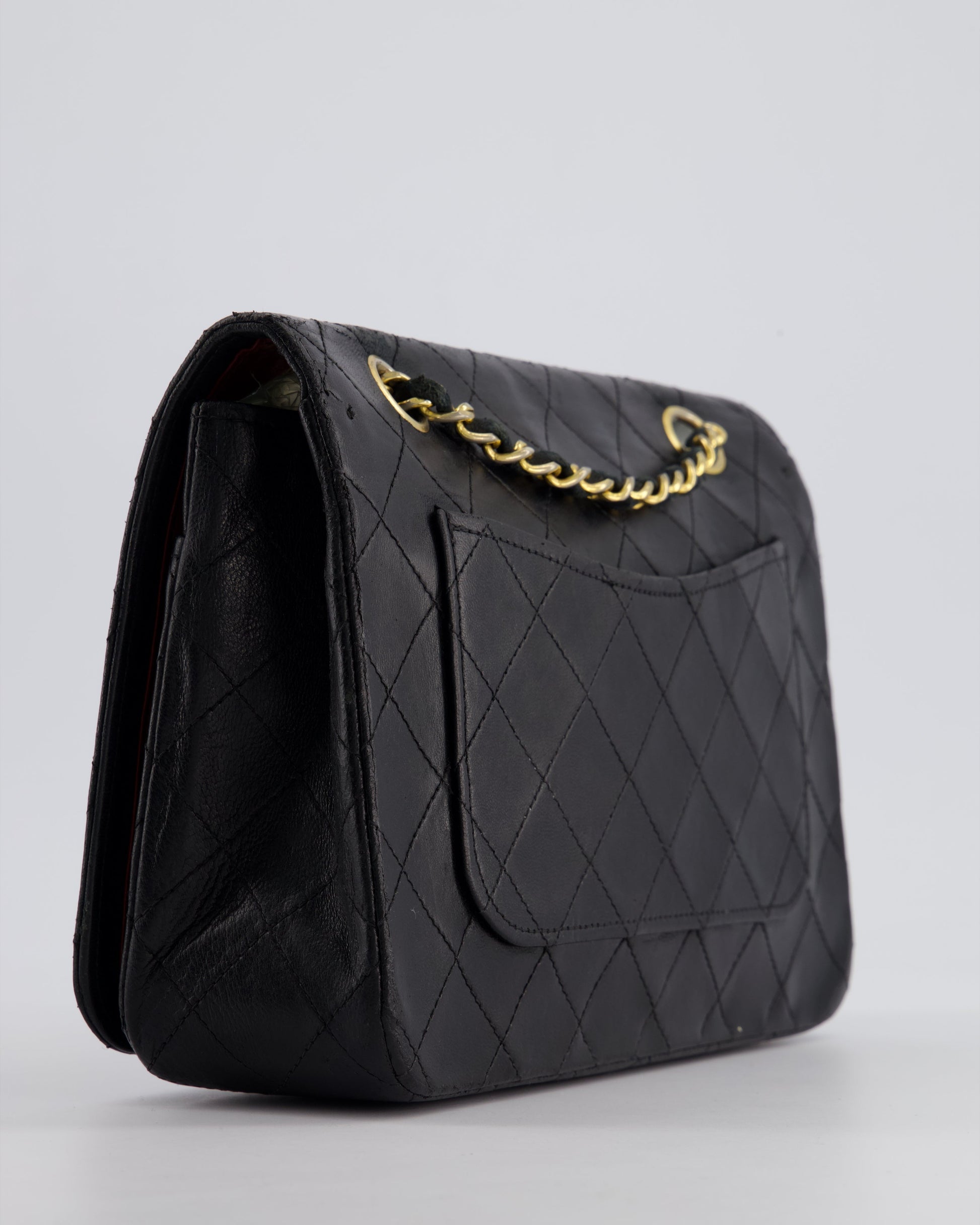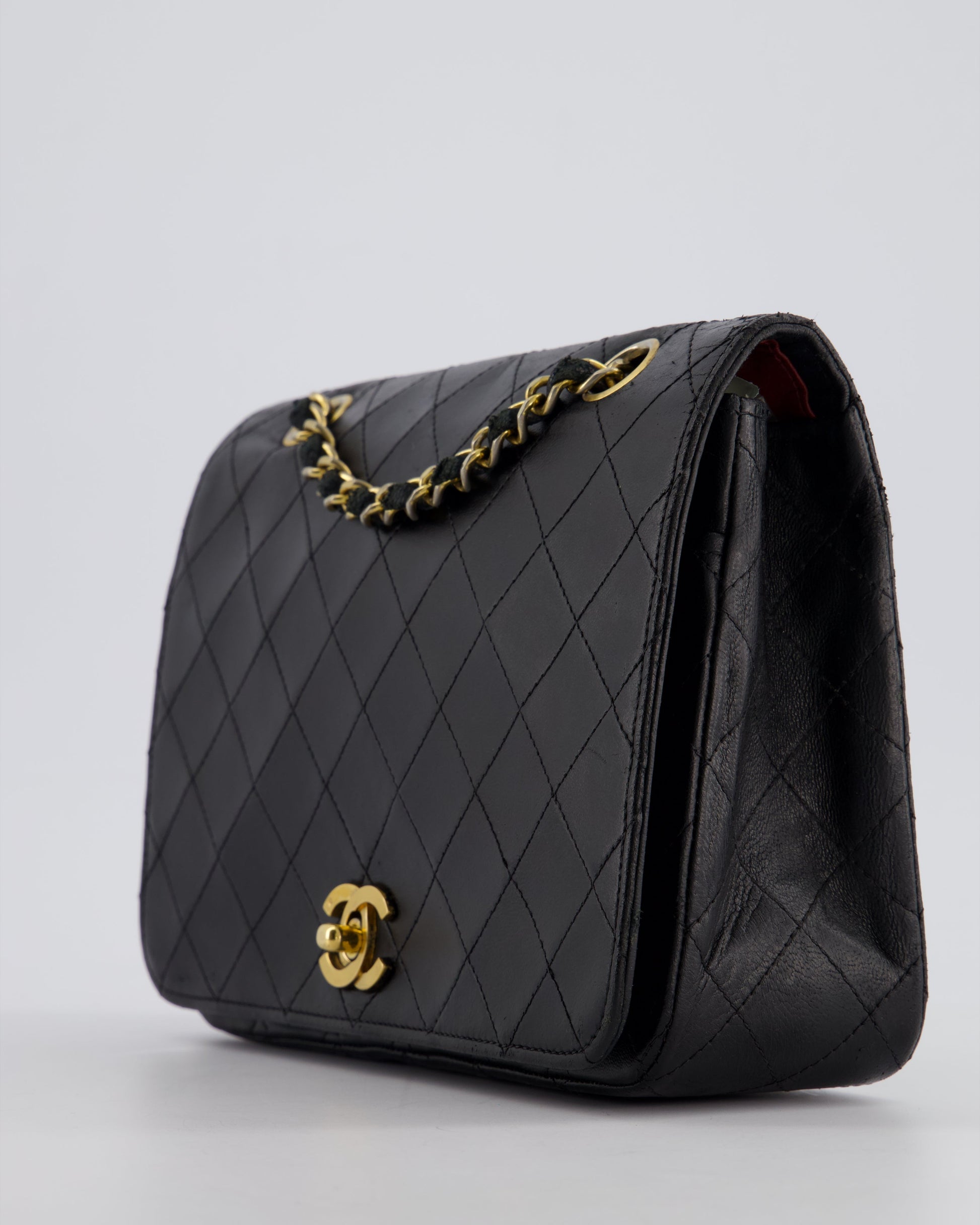 Chanel Vintage Black Matelasse Single Flap Bag in Lambskin Leather with Gold Hardware