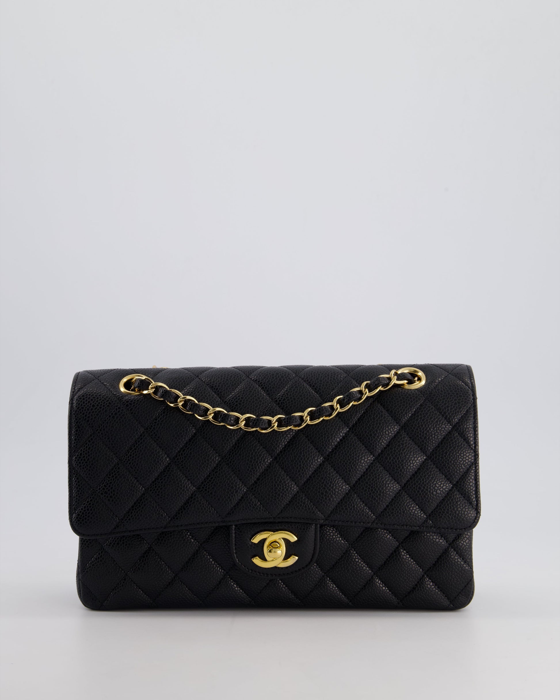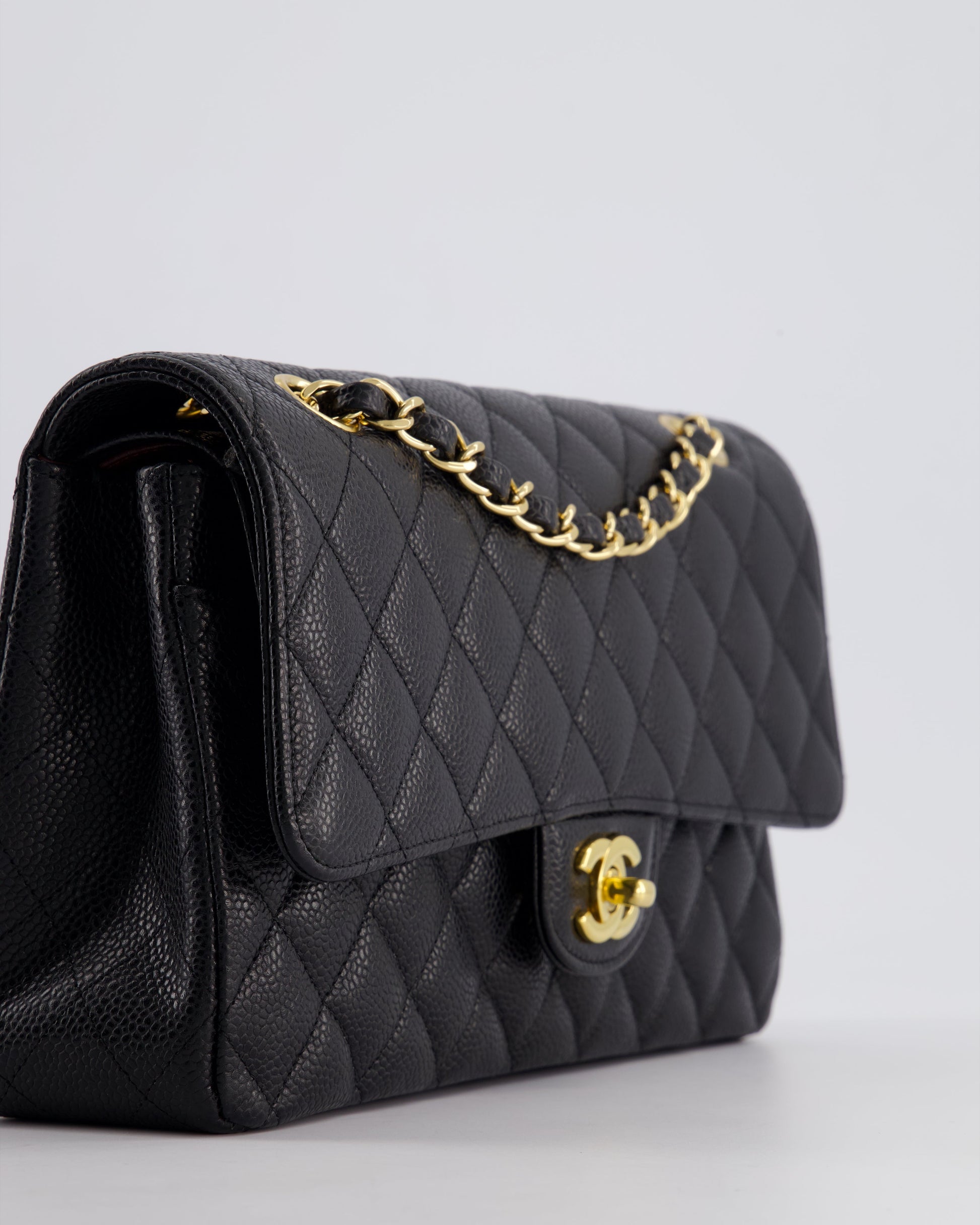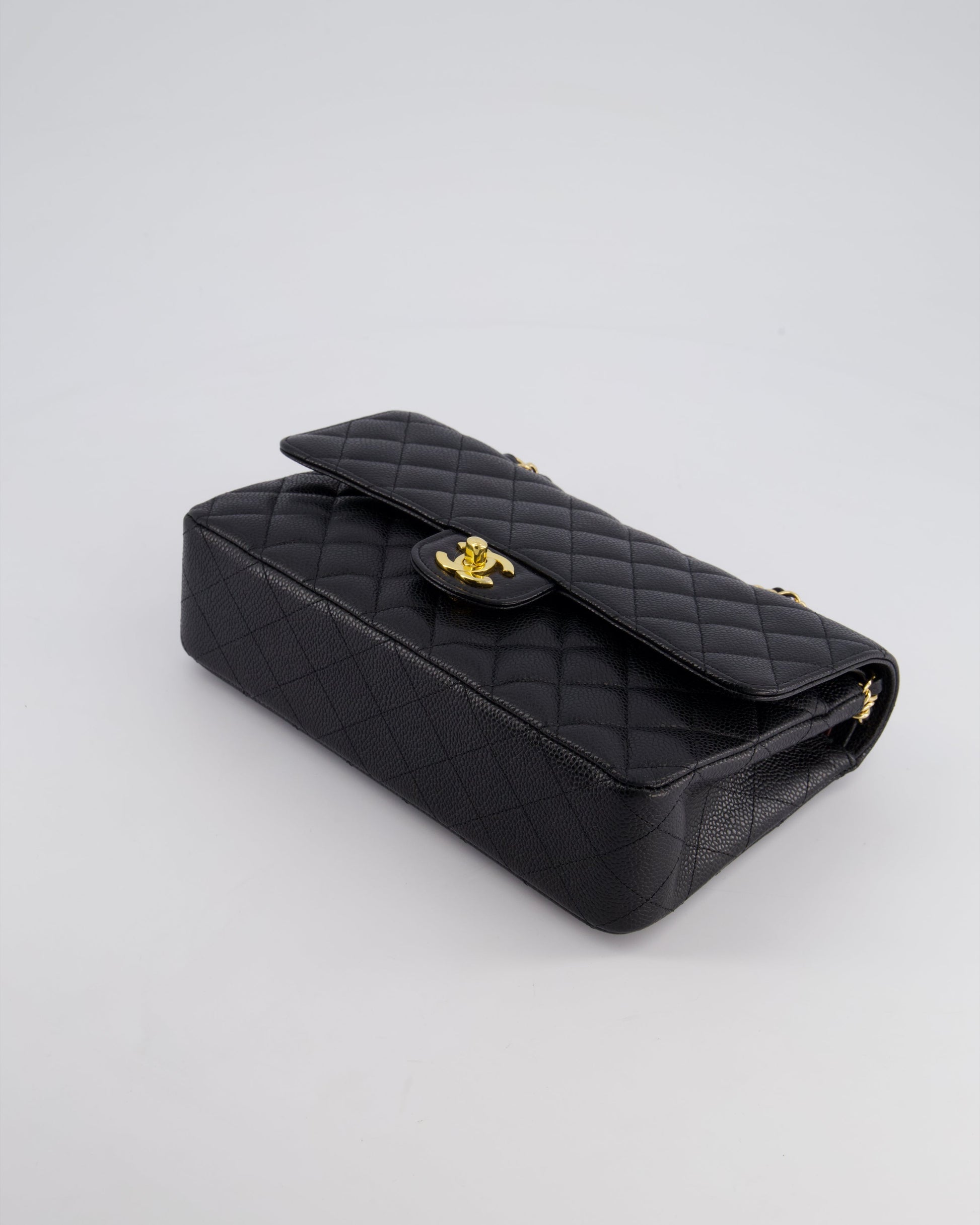 Chanel Black Medium Classic Double Flap Bag in Caviar Leather with Gold Hardware