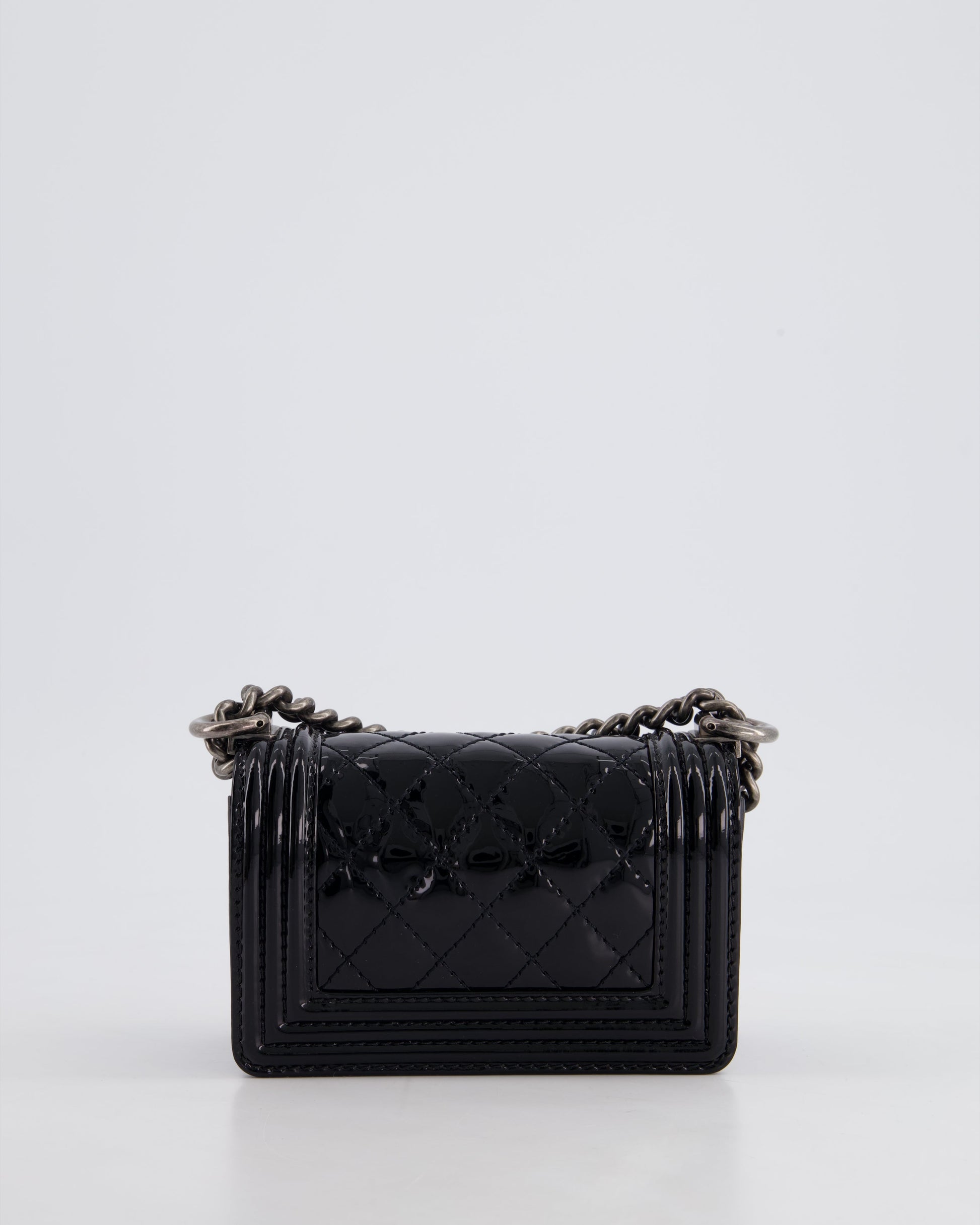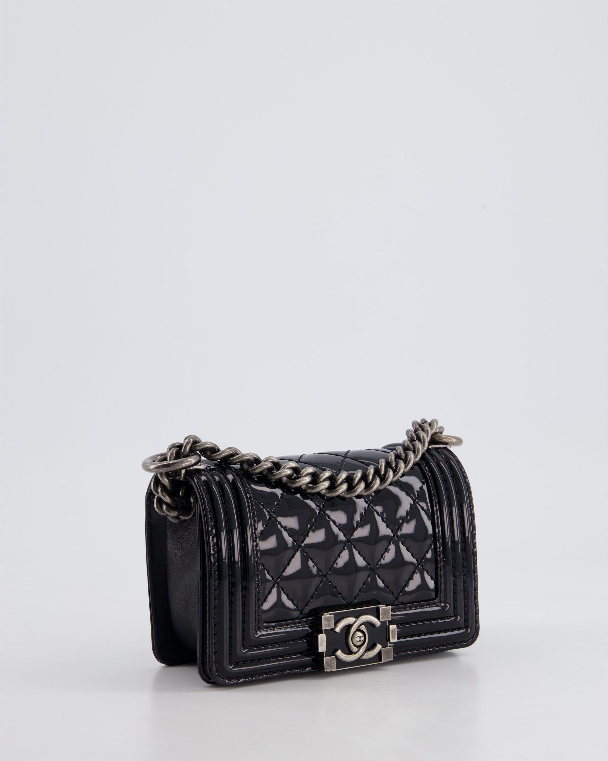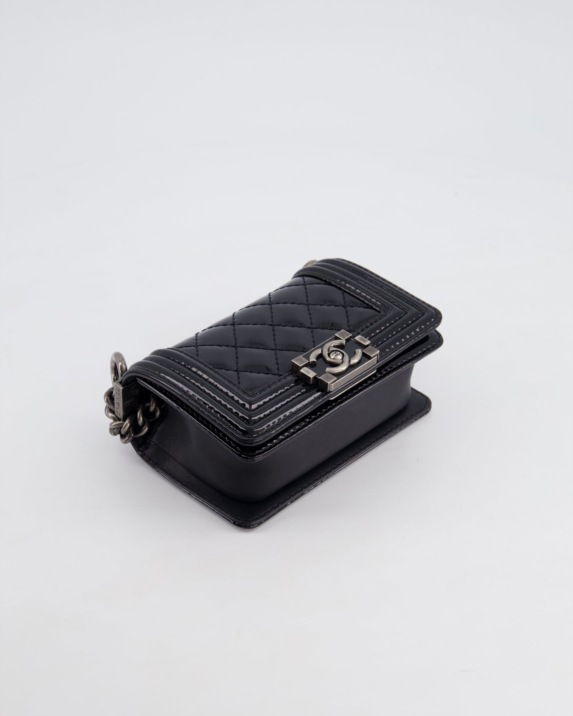 Chanel Black Patent Mini Boy Bag with Ruthenium Hardware