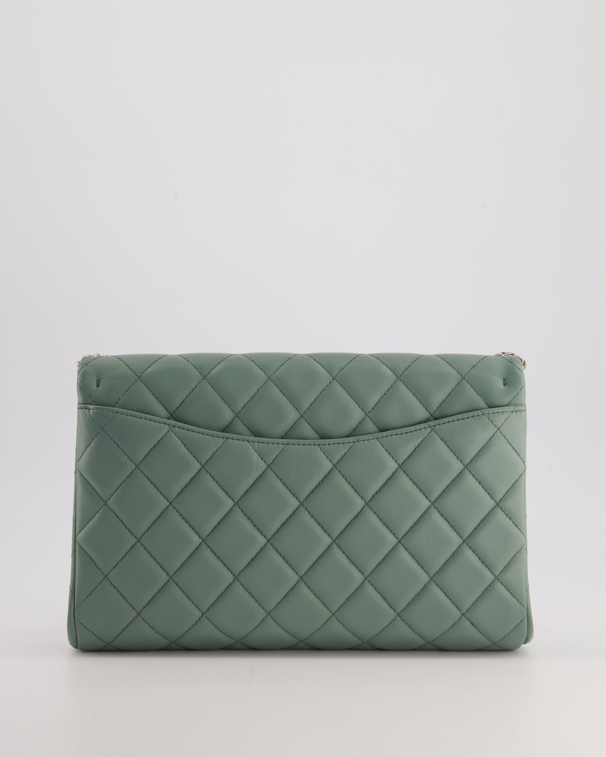 Chanel Cloudy Grey Timeless Clutch on Chain in Lambskin Leather with Silver Hardware