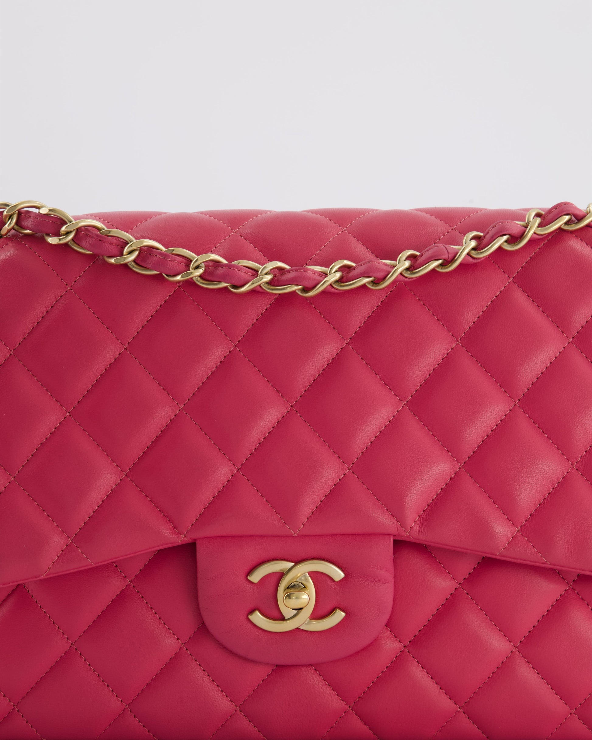 Chanel Deep Pink Classic Jumbo Double Flap Bag in Lambskin Leather and Gold Hardware