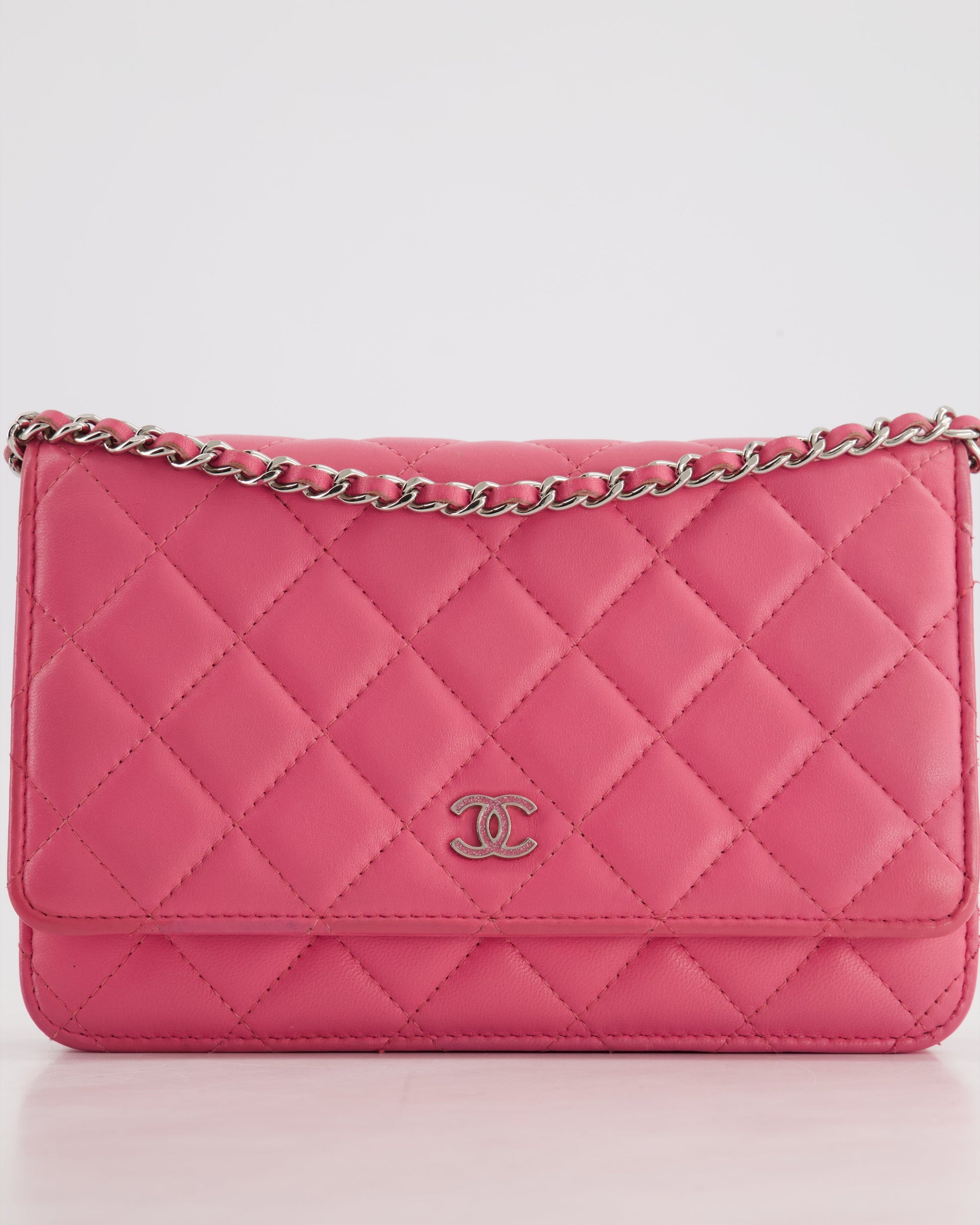 Chanel Hot Pink Lambskin Wallet on Chain Bag with Silver Hardware