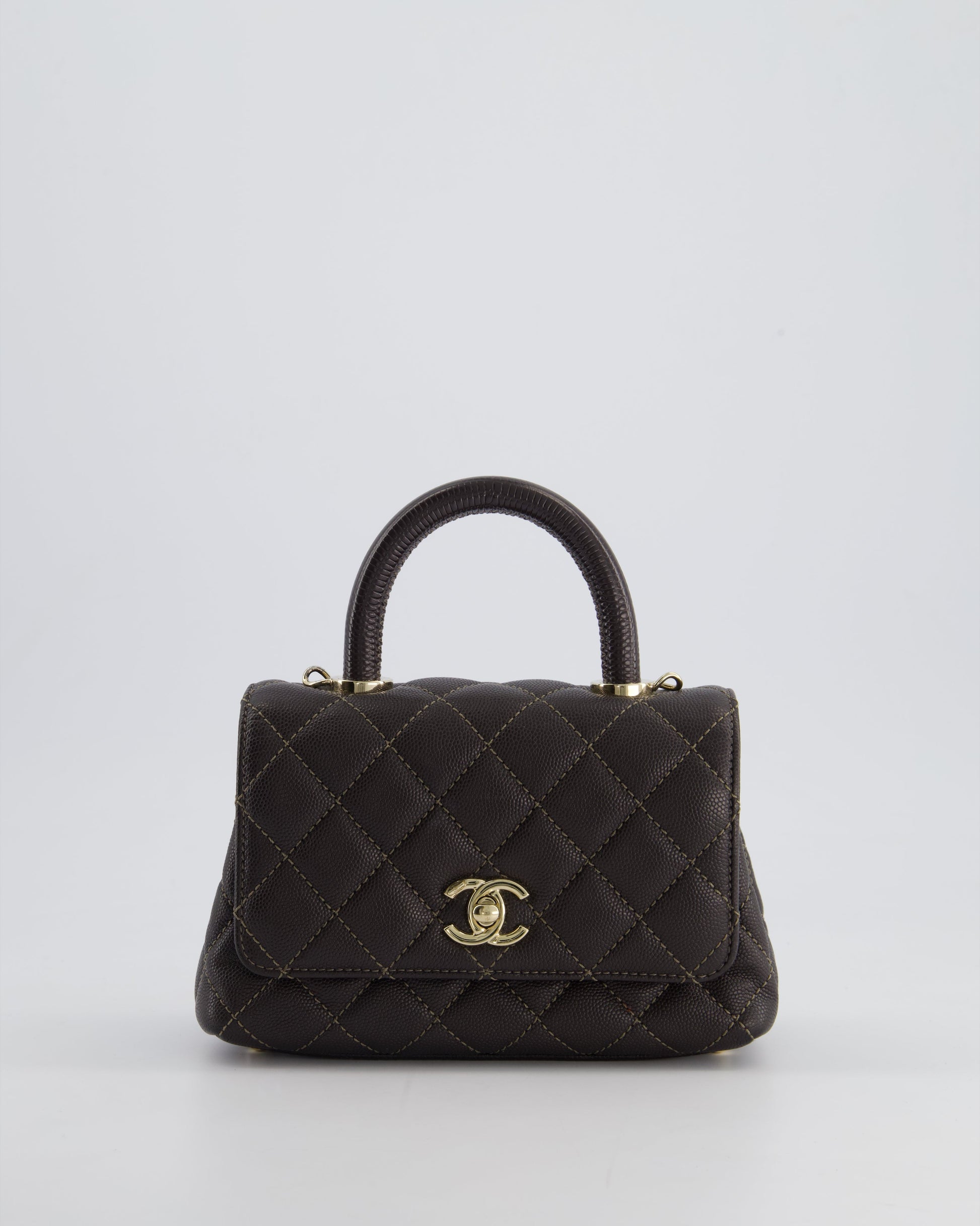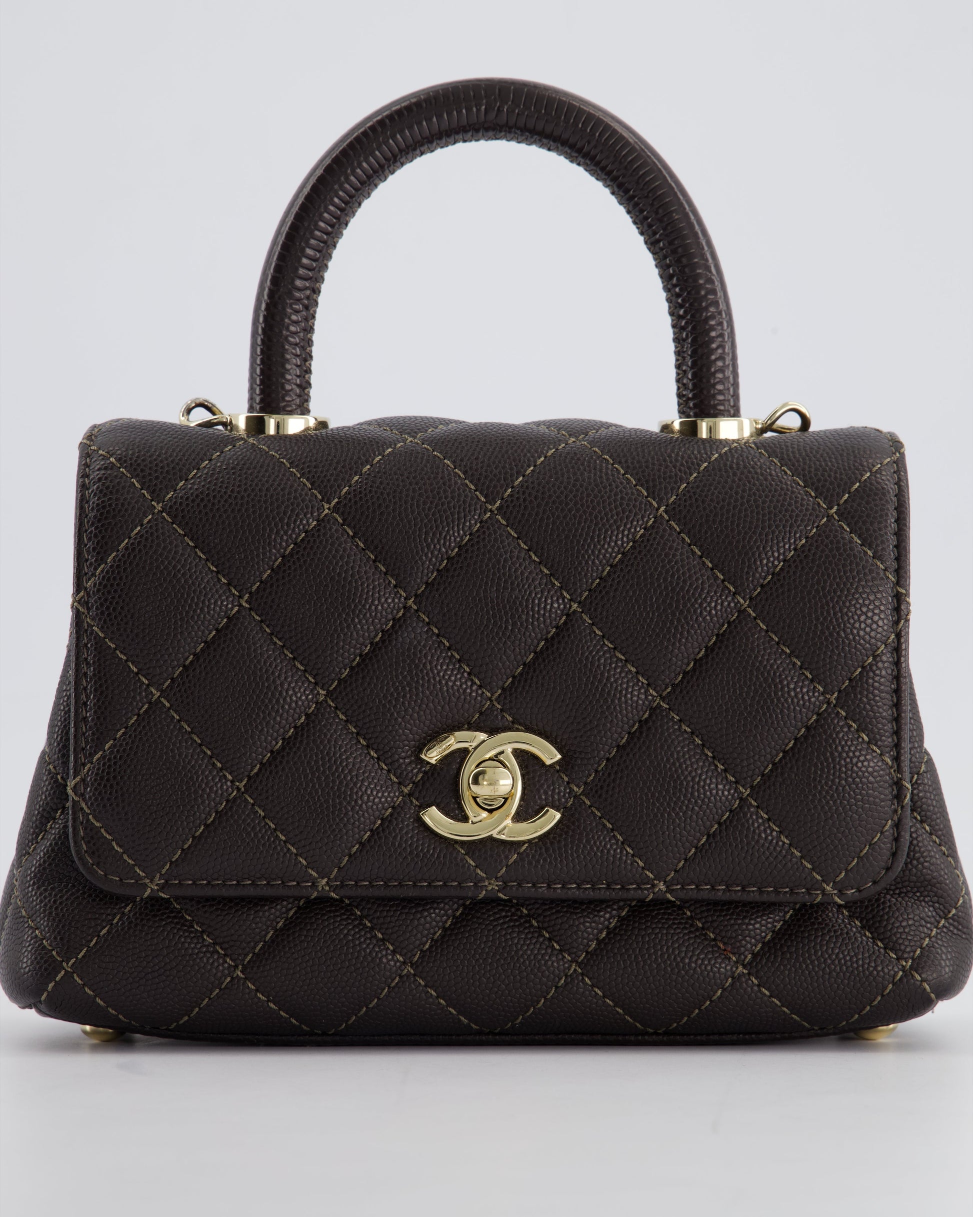Chanel Mini Coco Top Handle Bag in Dark Brown Caviar Leather with Champagne Gold Hardware