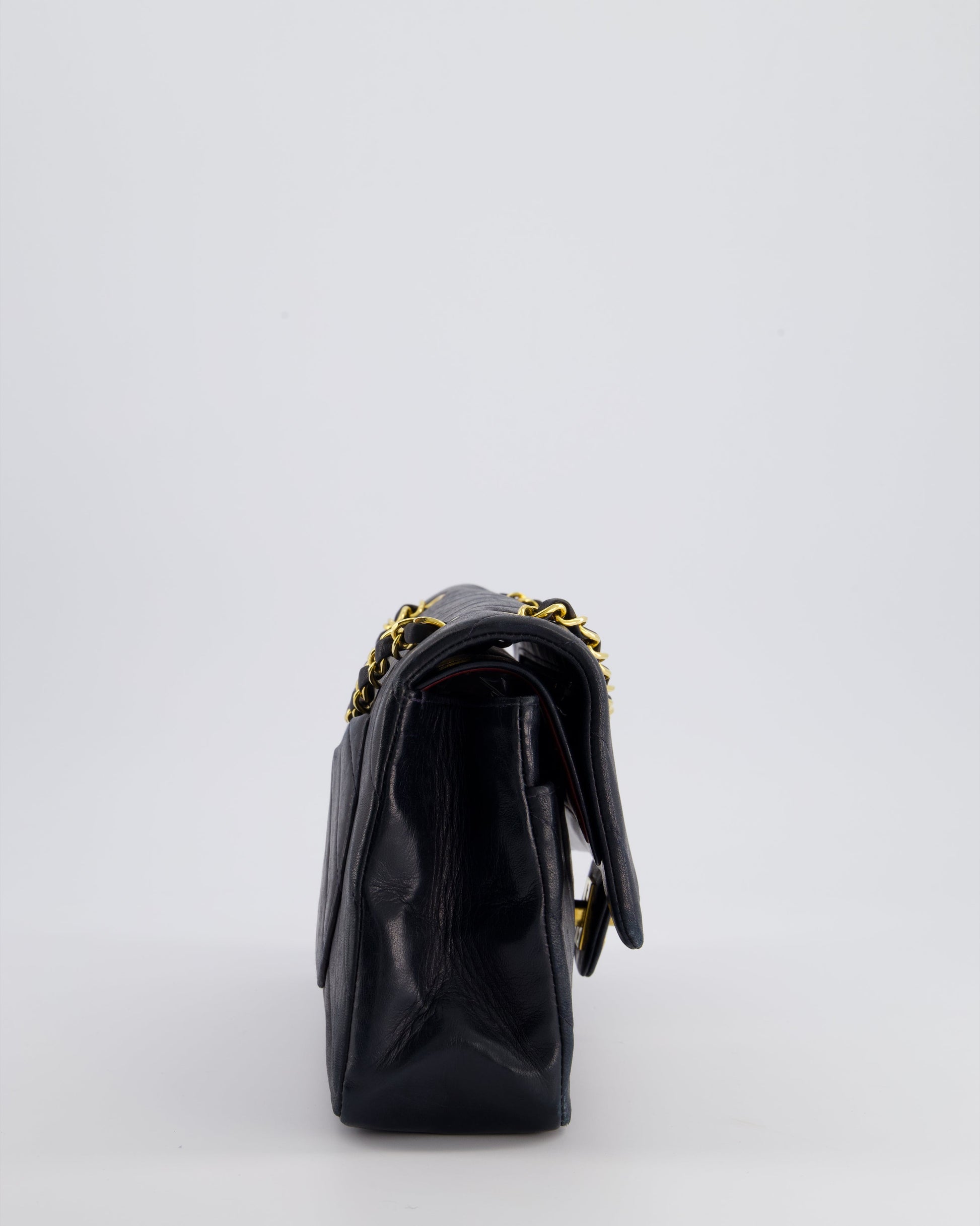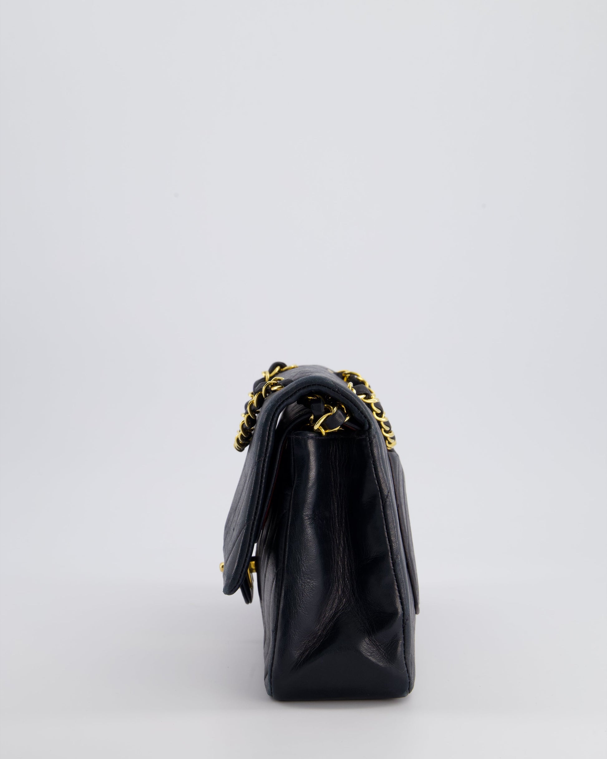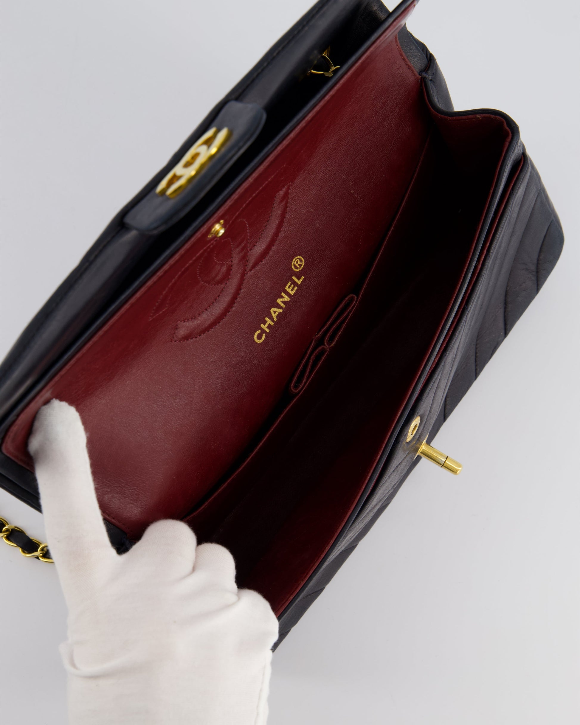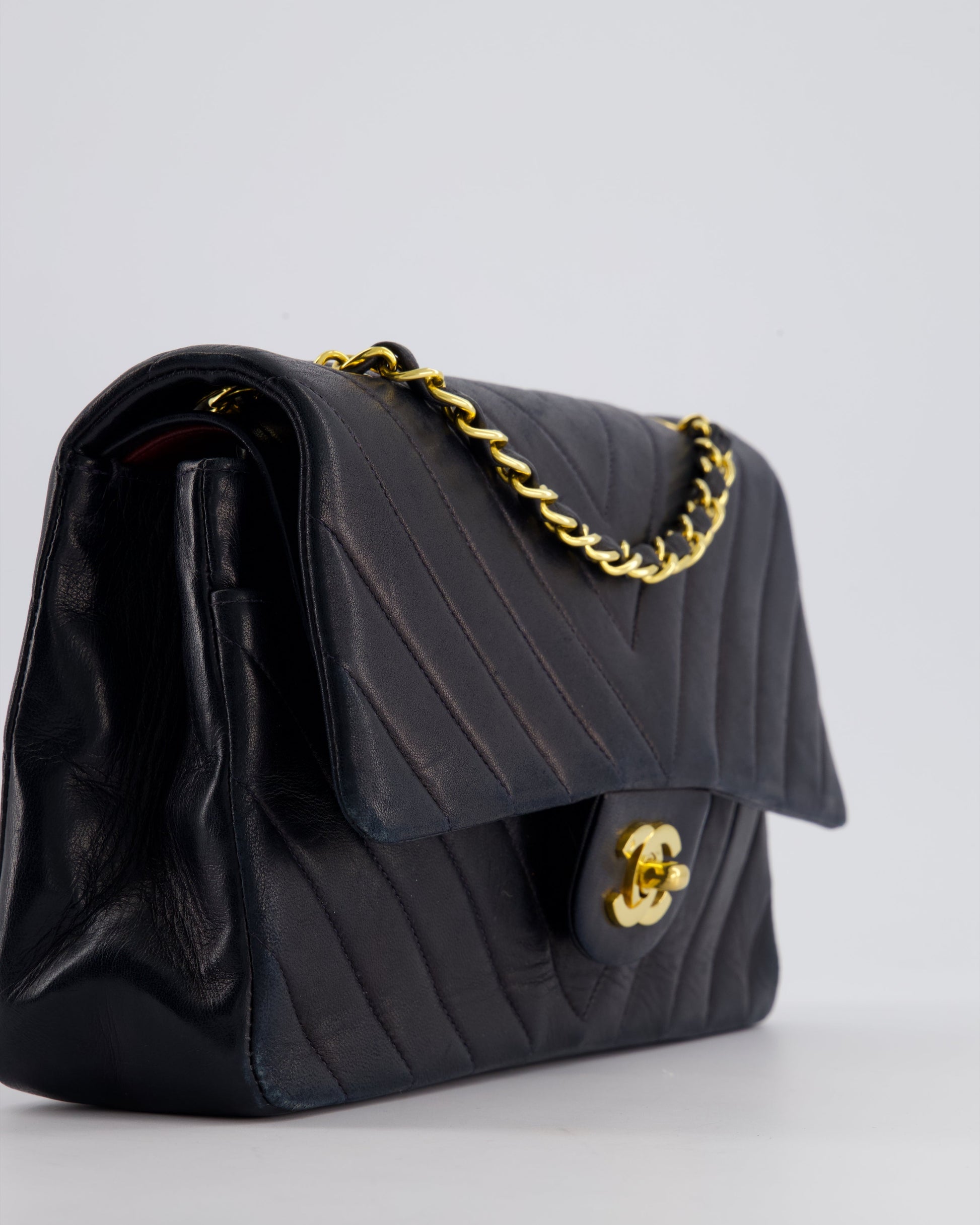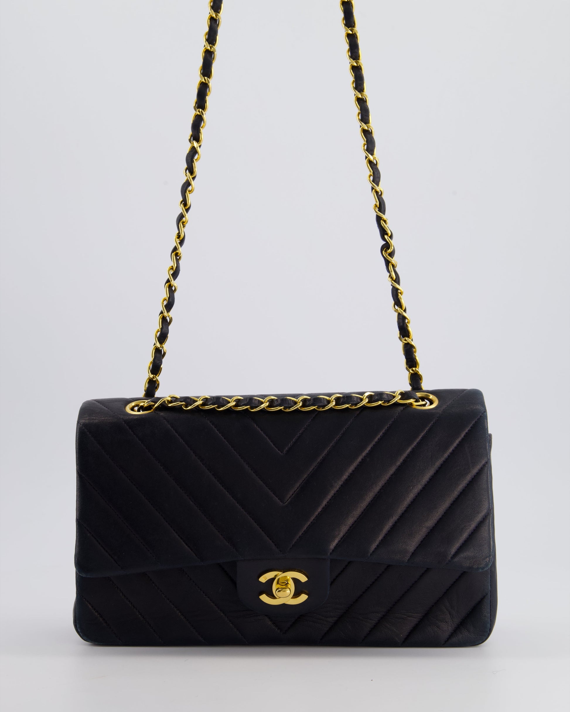 Chanel Navy Vintage Classic Medium Chevron Double Flap Bag in Lambskin Leather with 24K Gold Hardware