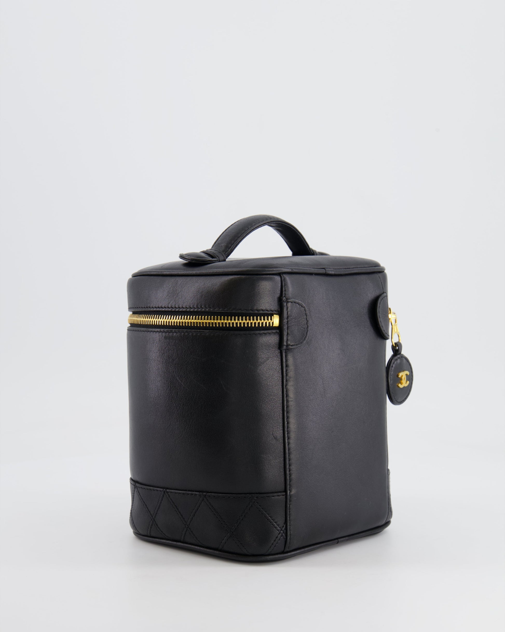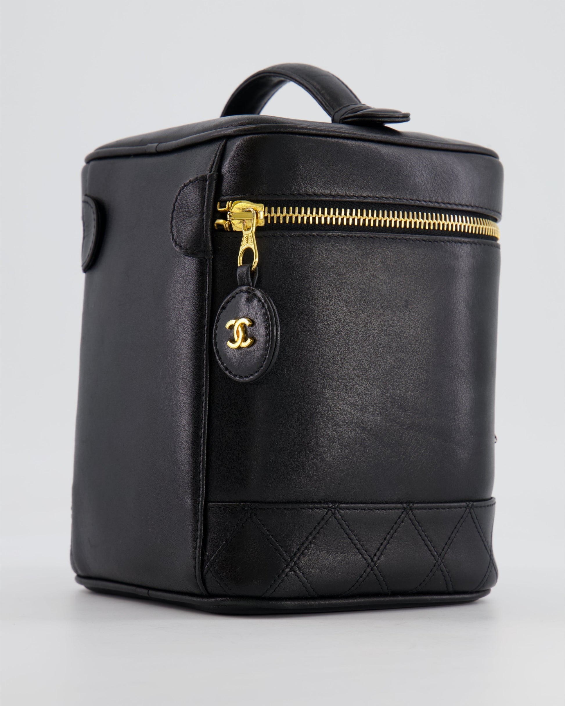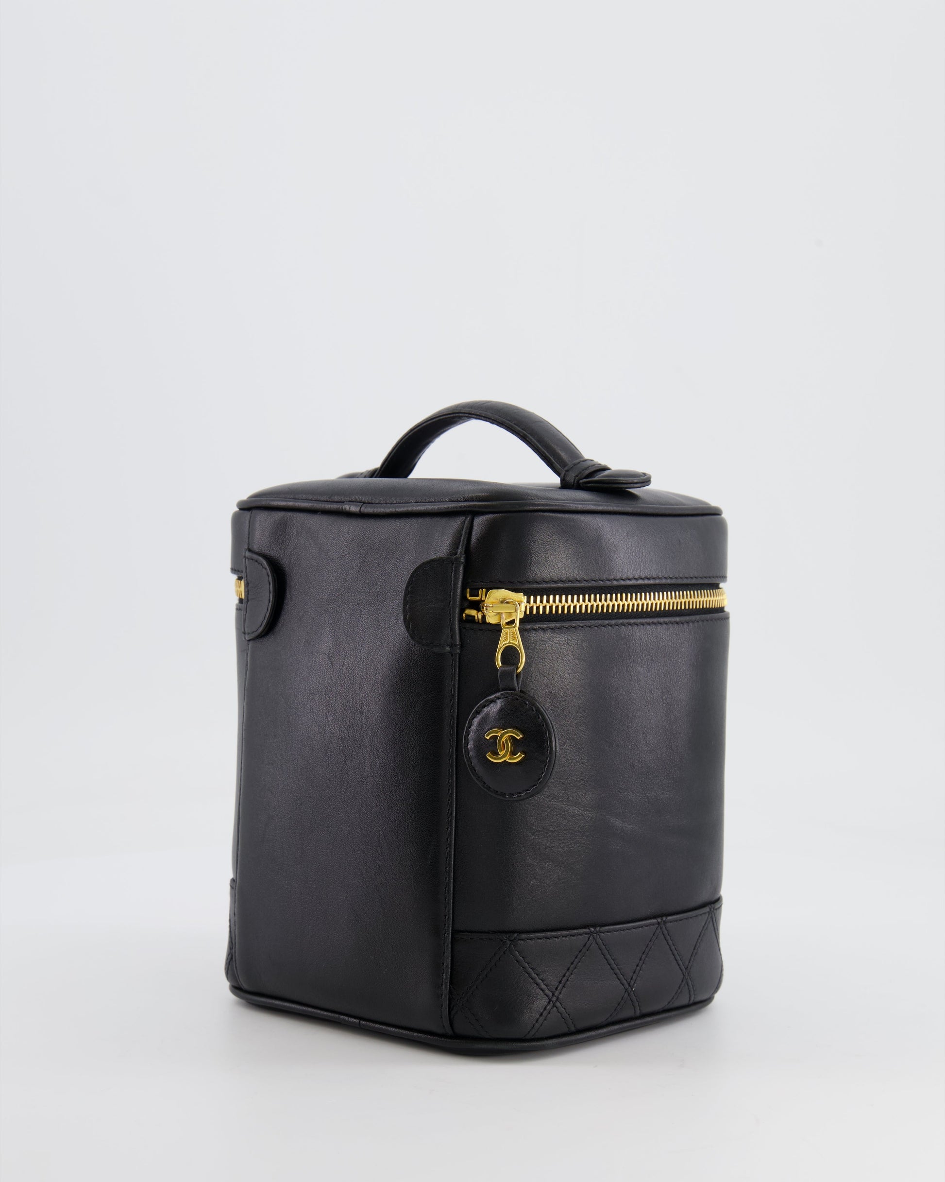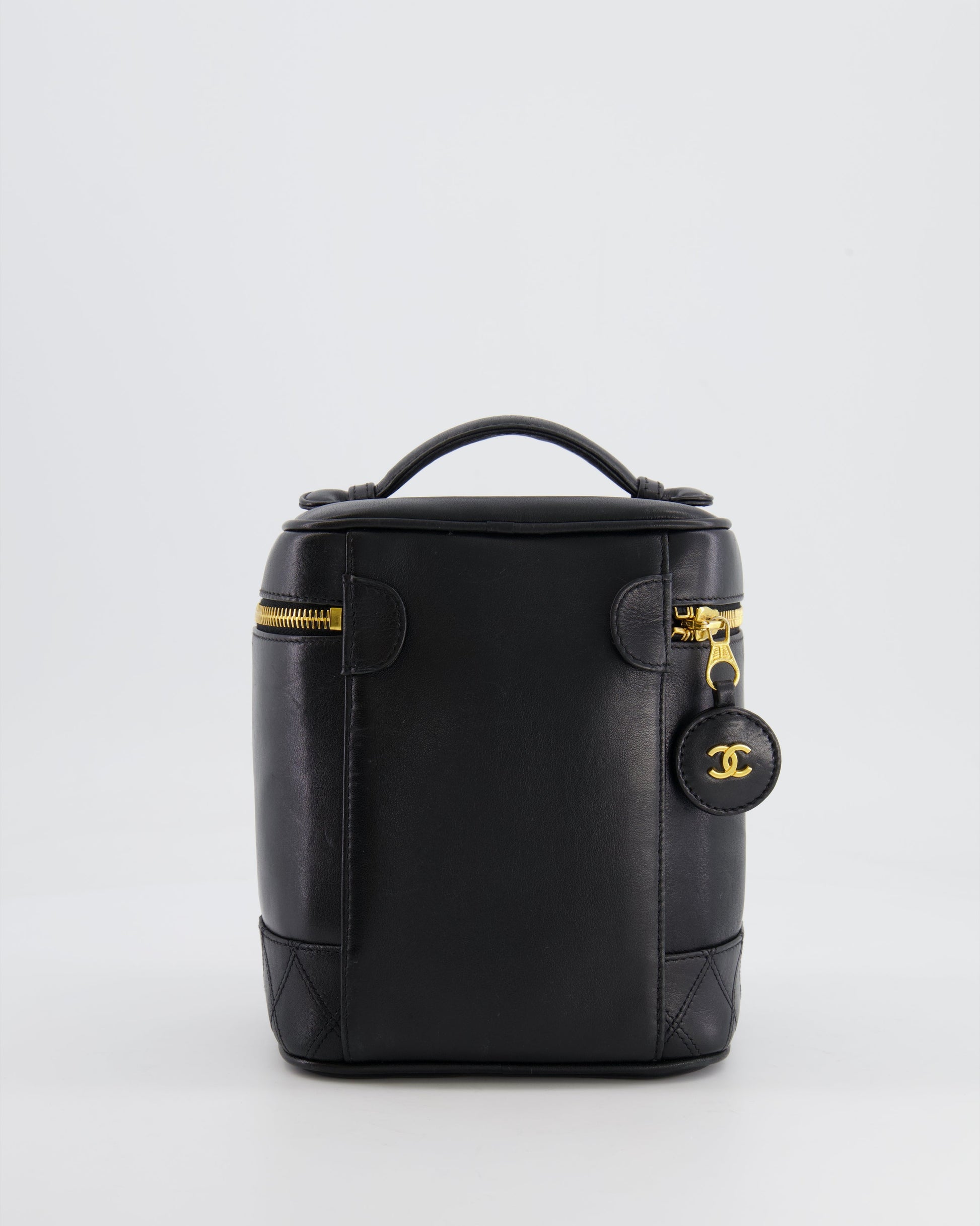 Chanel Vintage Black Lambskin Leather Embroidered Vanity Bag with 24K Gold Hardware