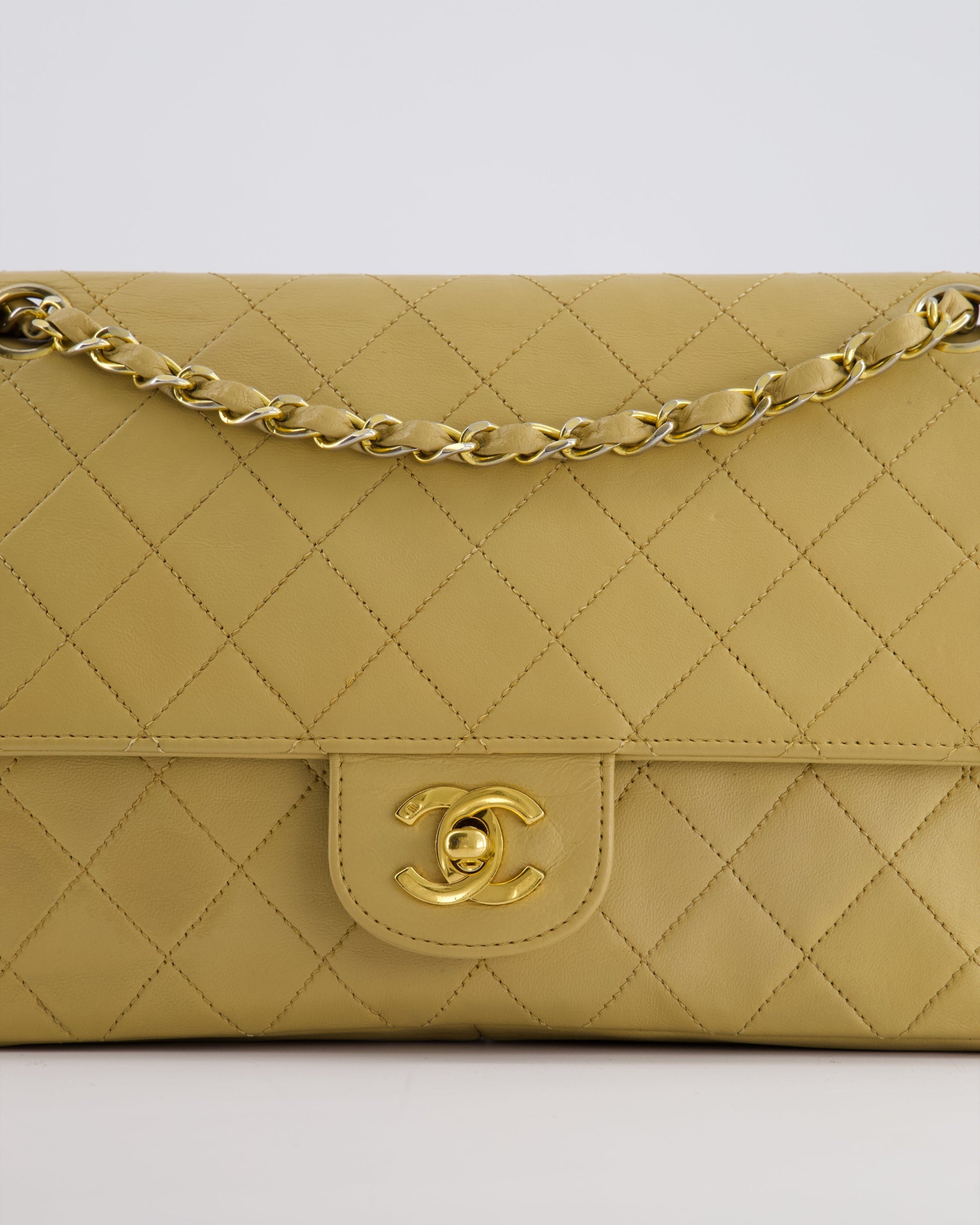 *FIRE PRICE* Chanel Vintage Chai Beige Classic Medium Stitched Edge Double Flap Bag in Lambskin Leather with 24K Gold Hardware
