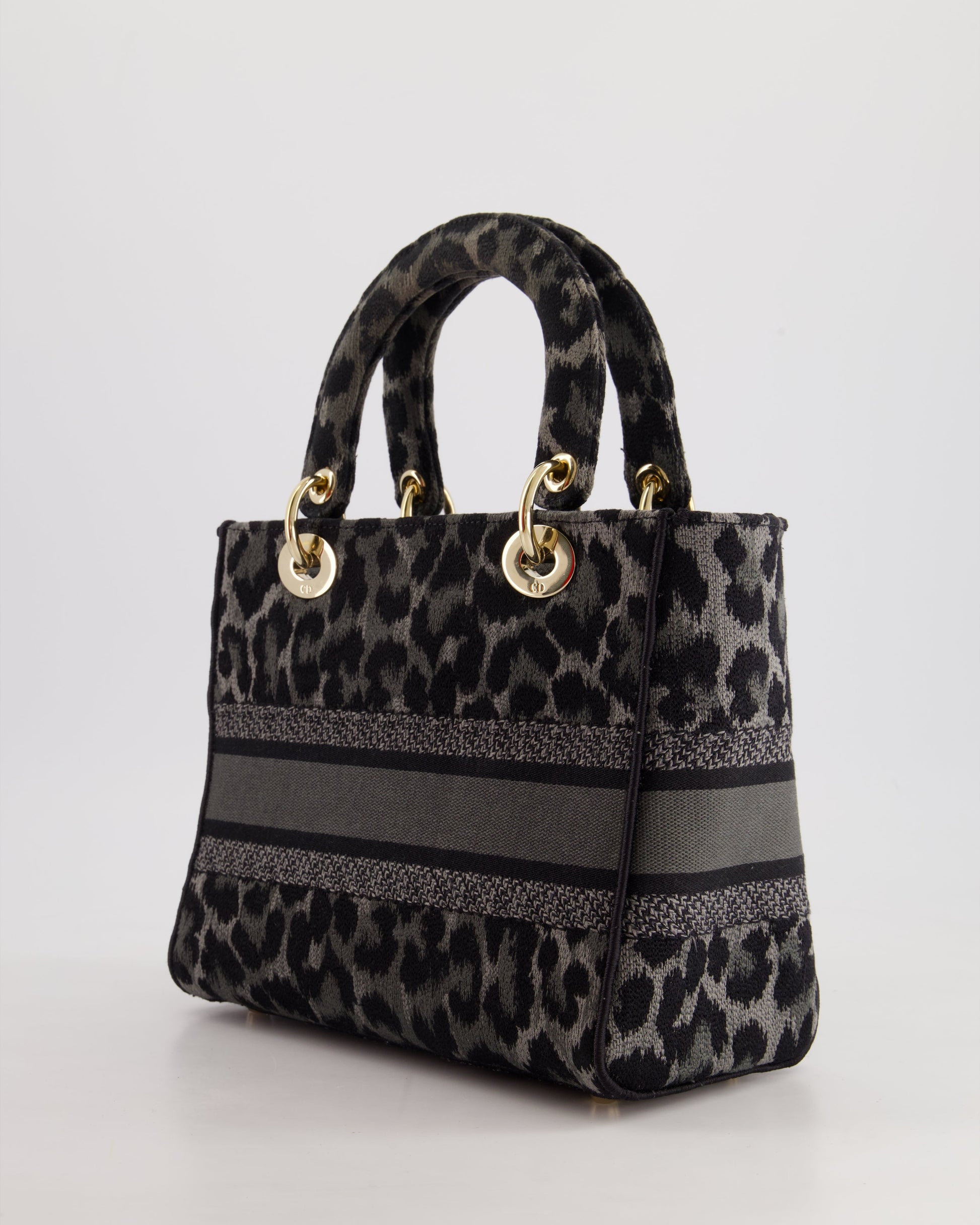 Christian Dior Medium Lady D-Lite in Grey & Black Mizza Embroidery with Champagne Gold Hardware RRP £3700