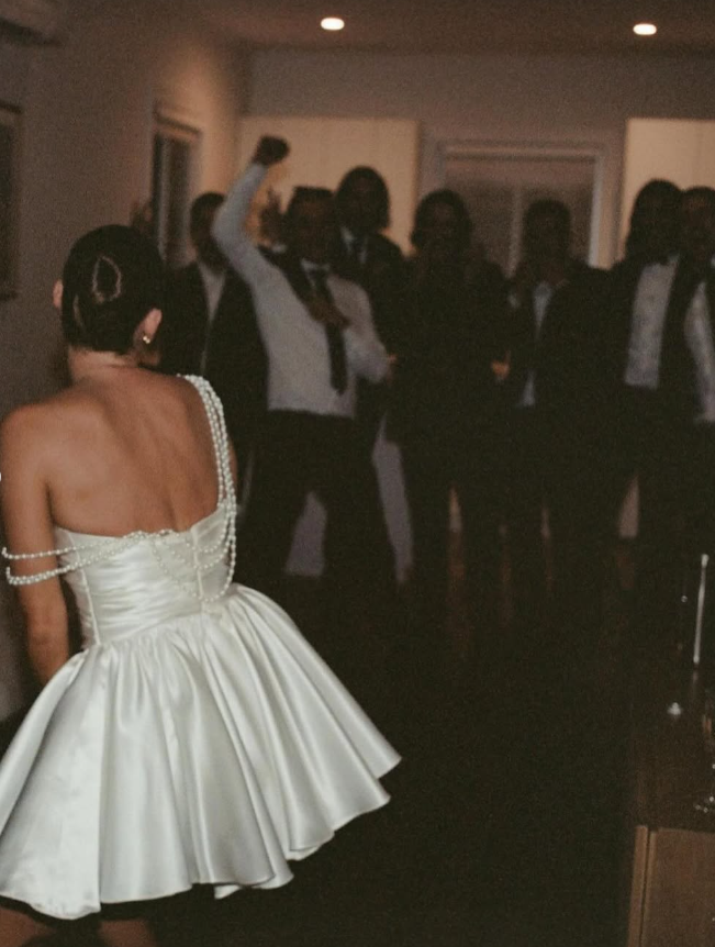 Cute A Line Spaghetti Strap Pearl White Satin Short Homecoming Dress Birthday Dress SH2085