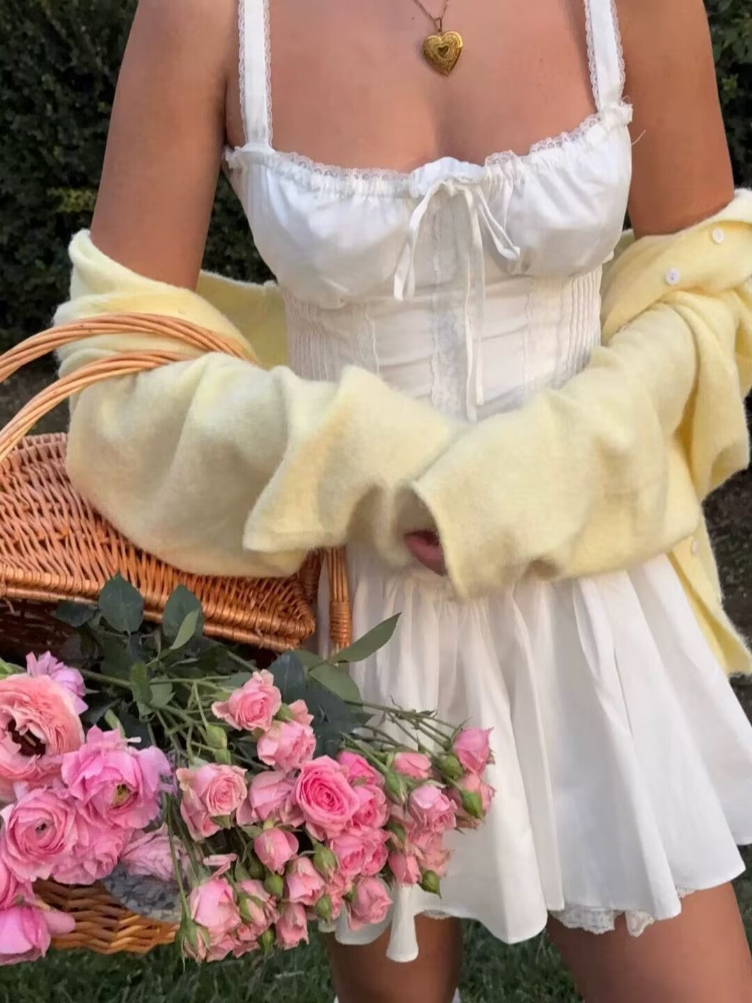 Cute A line Square Neck White Short Lace Homecoming Dress Summer Hoco Dresses Mini Night Homecoming Outfits DH2482