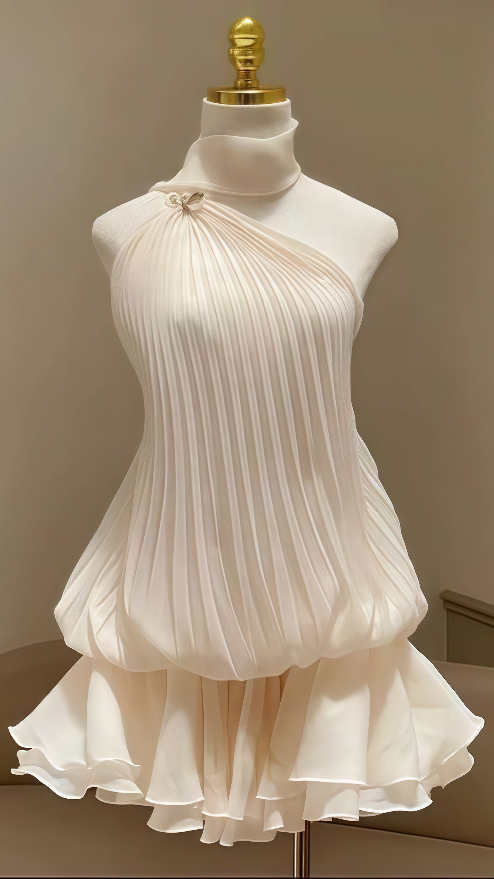 Elegant Halter Ivory Chiffon Homecoming Dresses Pleated Mini Cocktail Dance Dress,AST1819