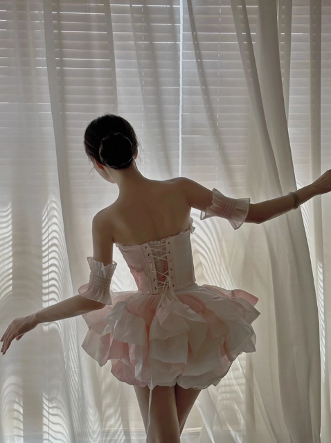 Gorgeous Sweetheart Neck Ball Gown Chiffon Short Prom Dresses, Pink Homecoming Dresses DP3140