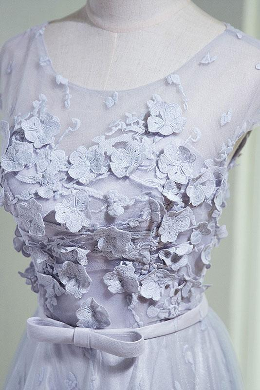Grey A-Line Tulle Long Prom Dress, Party Dress Grey Bridesmaid Dress gh427