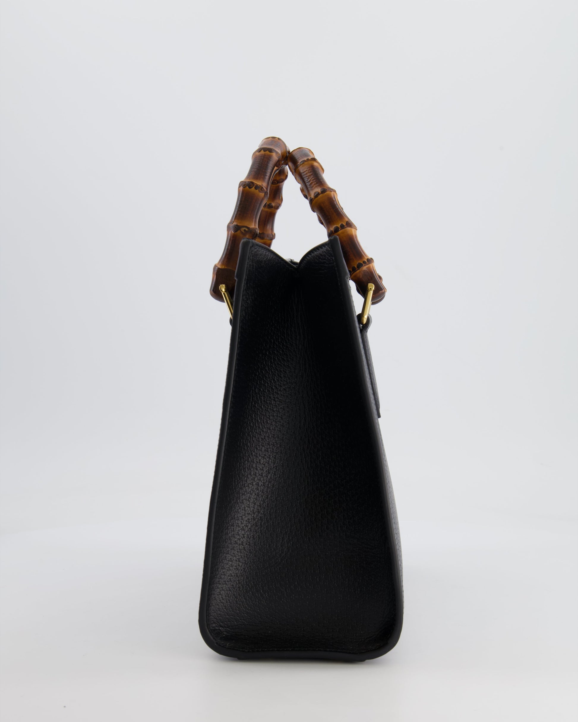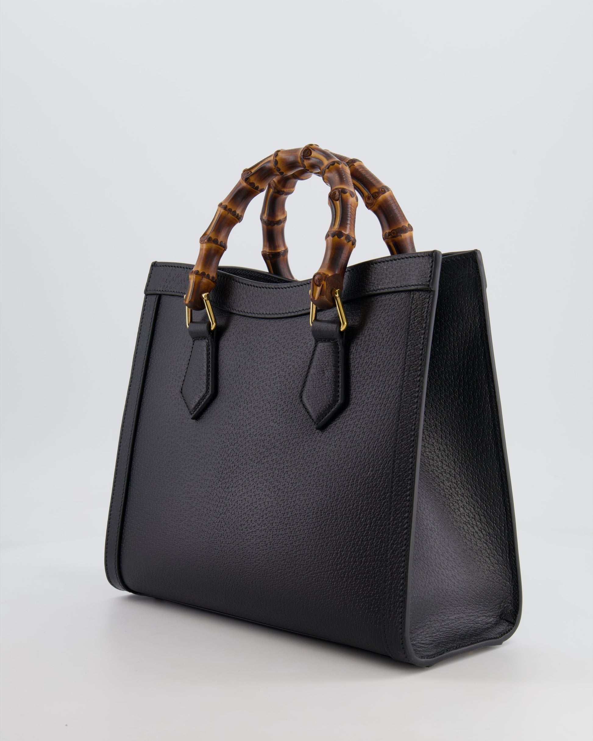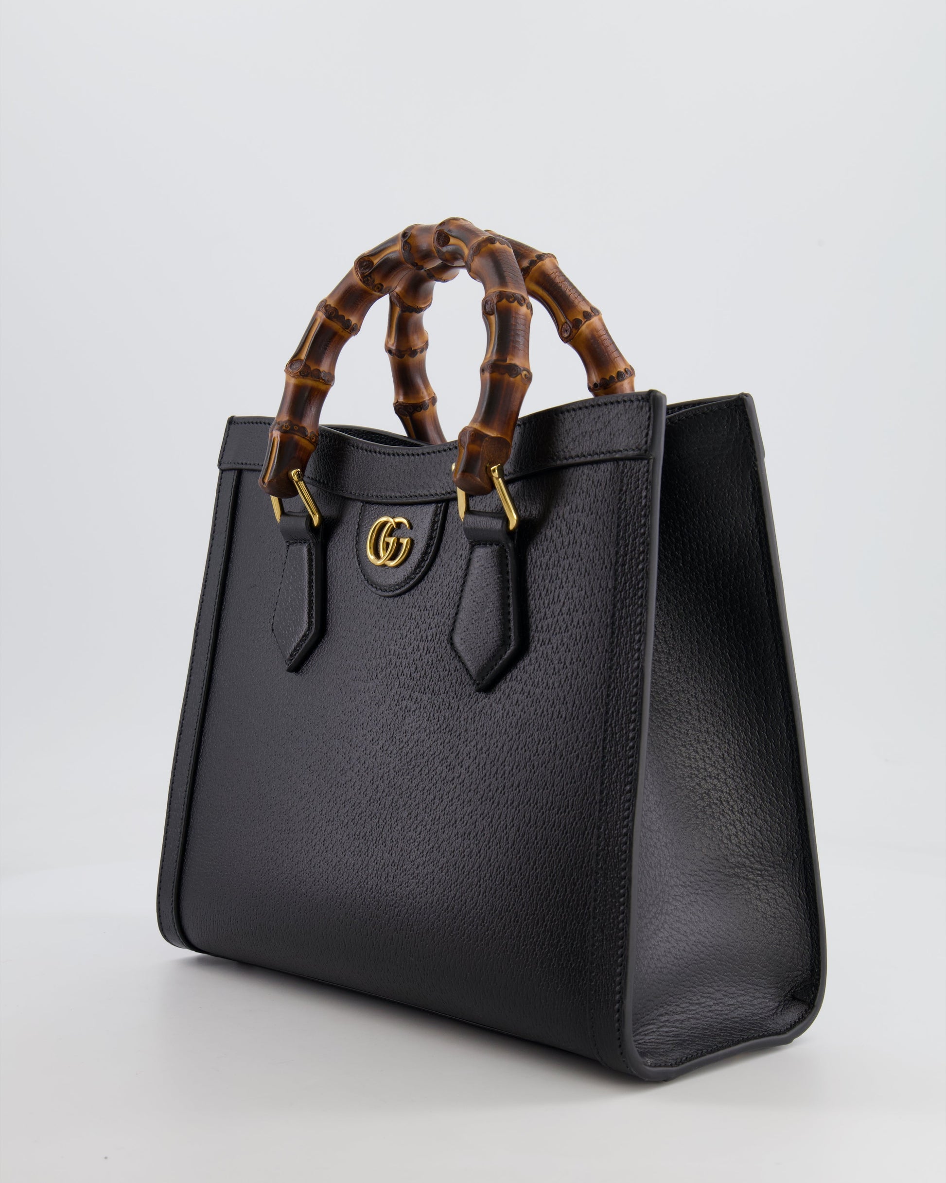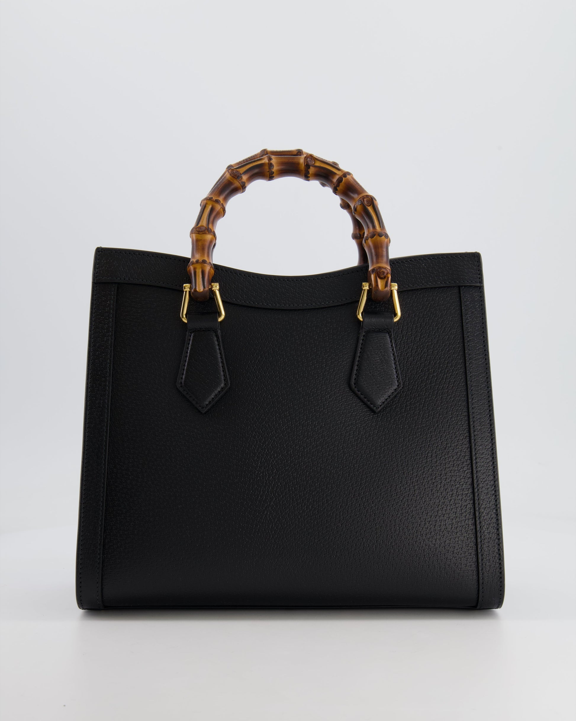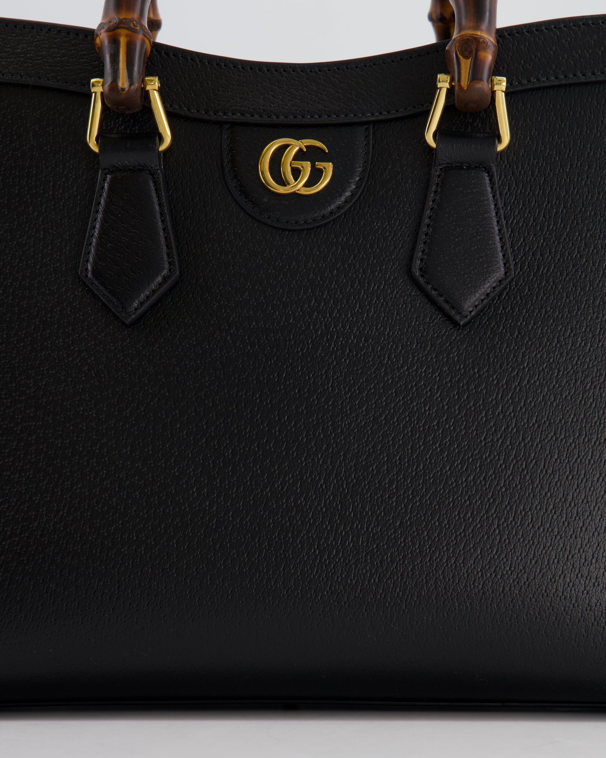 Gucci Black Diana Medium Tote Leather Bag with Shiny Antique Gold Hardware & Bamboo Handle RRP £3,170