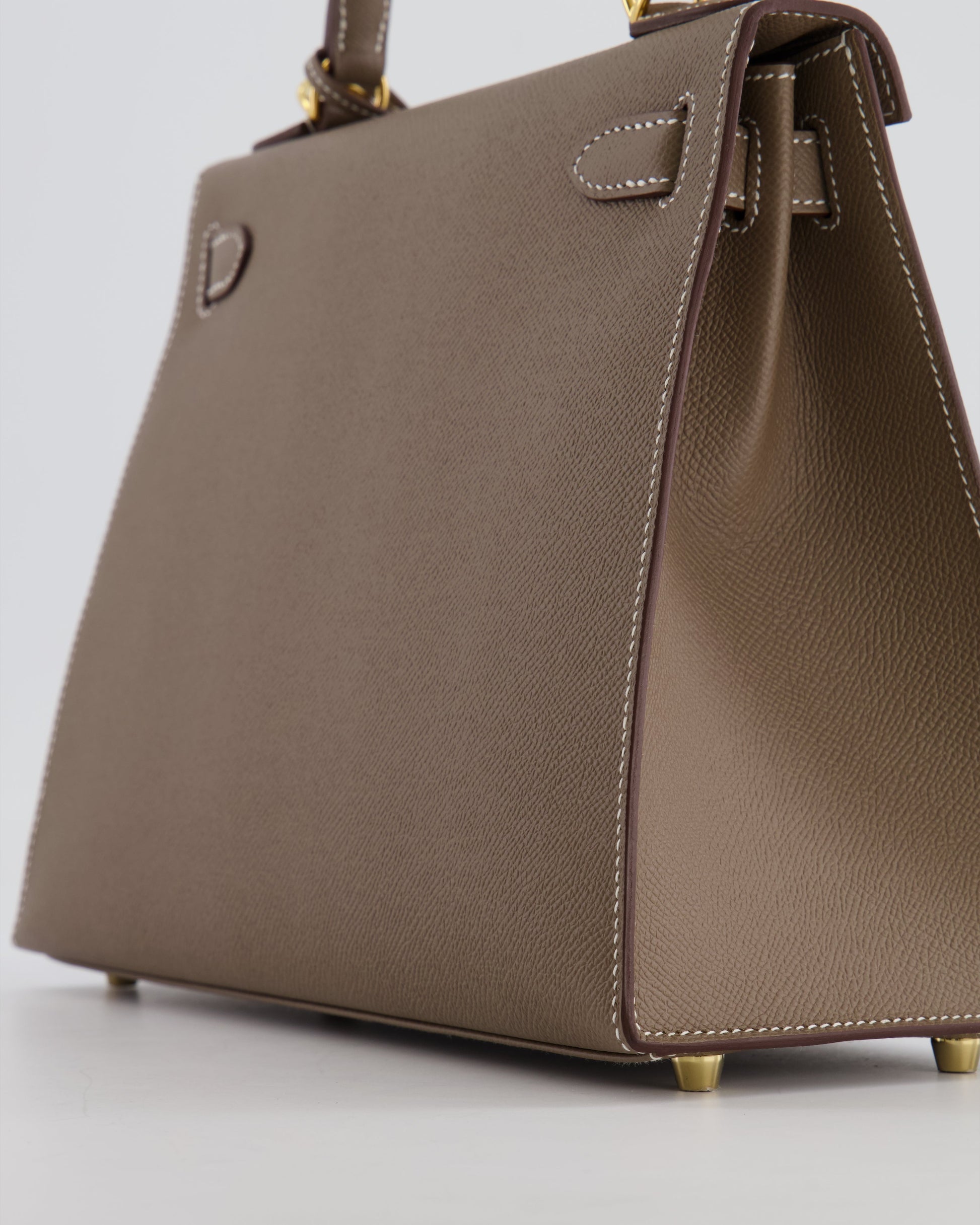 Hermès Kelly Sellier Bag 28cm in Etoupe Epsom Leather with Gold Hardware
