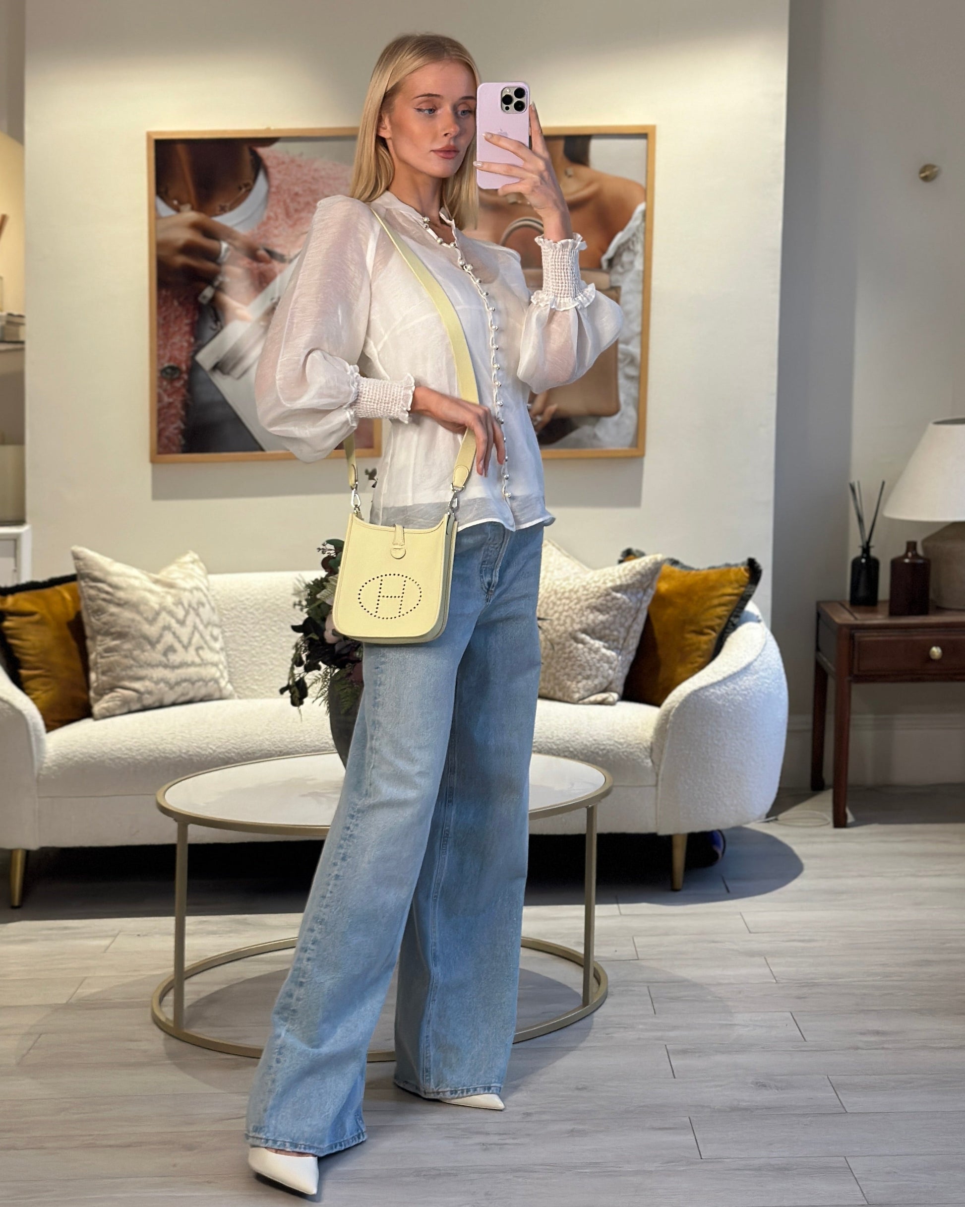 Hermès Mini Evelyne Bag in Jaune Milton Clemence Leather with Palladium Hardware