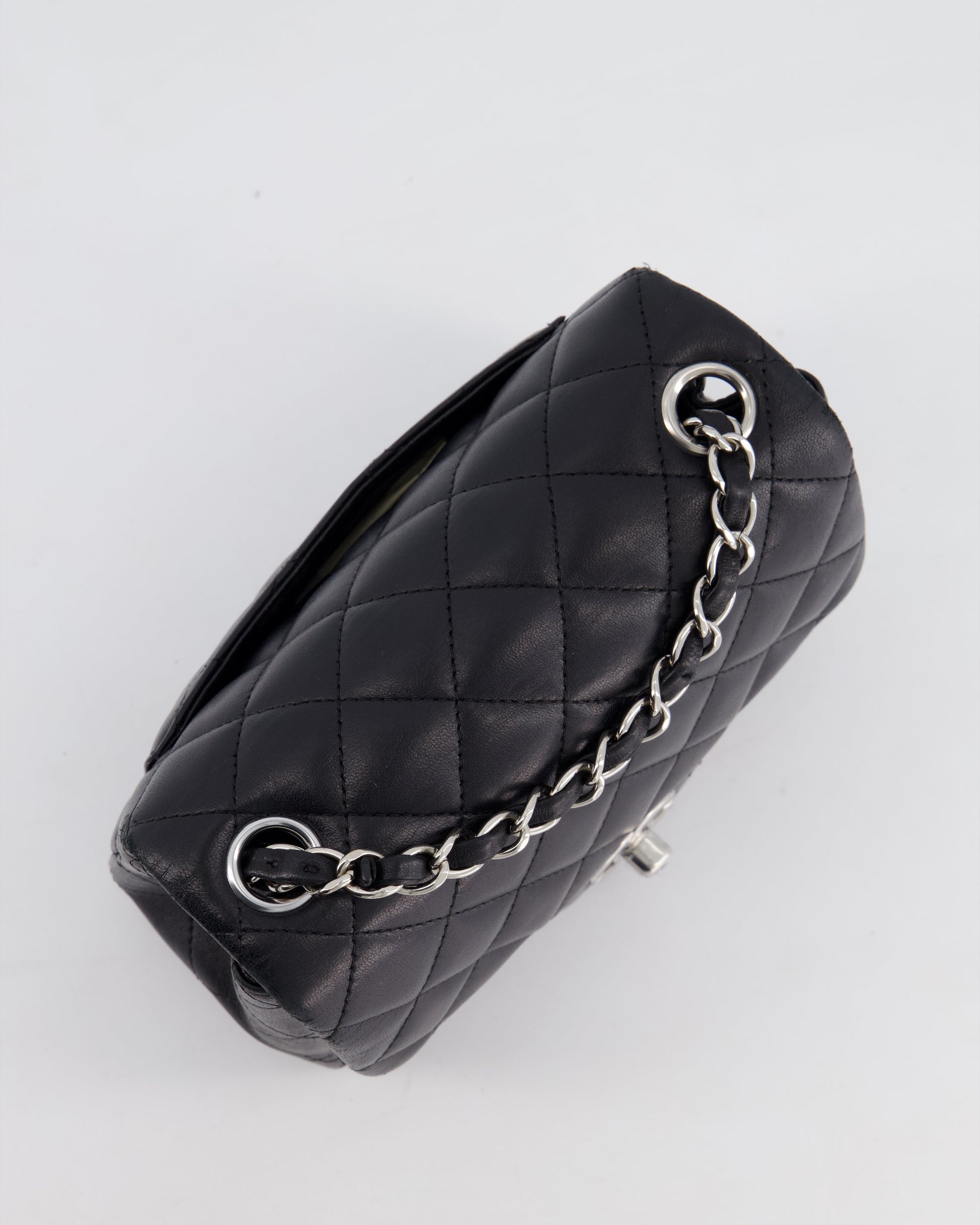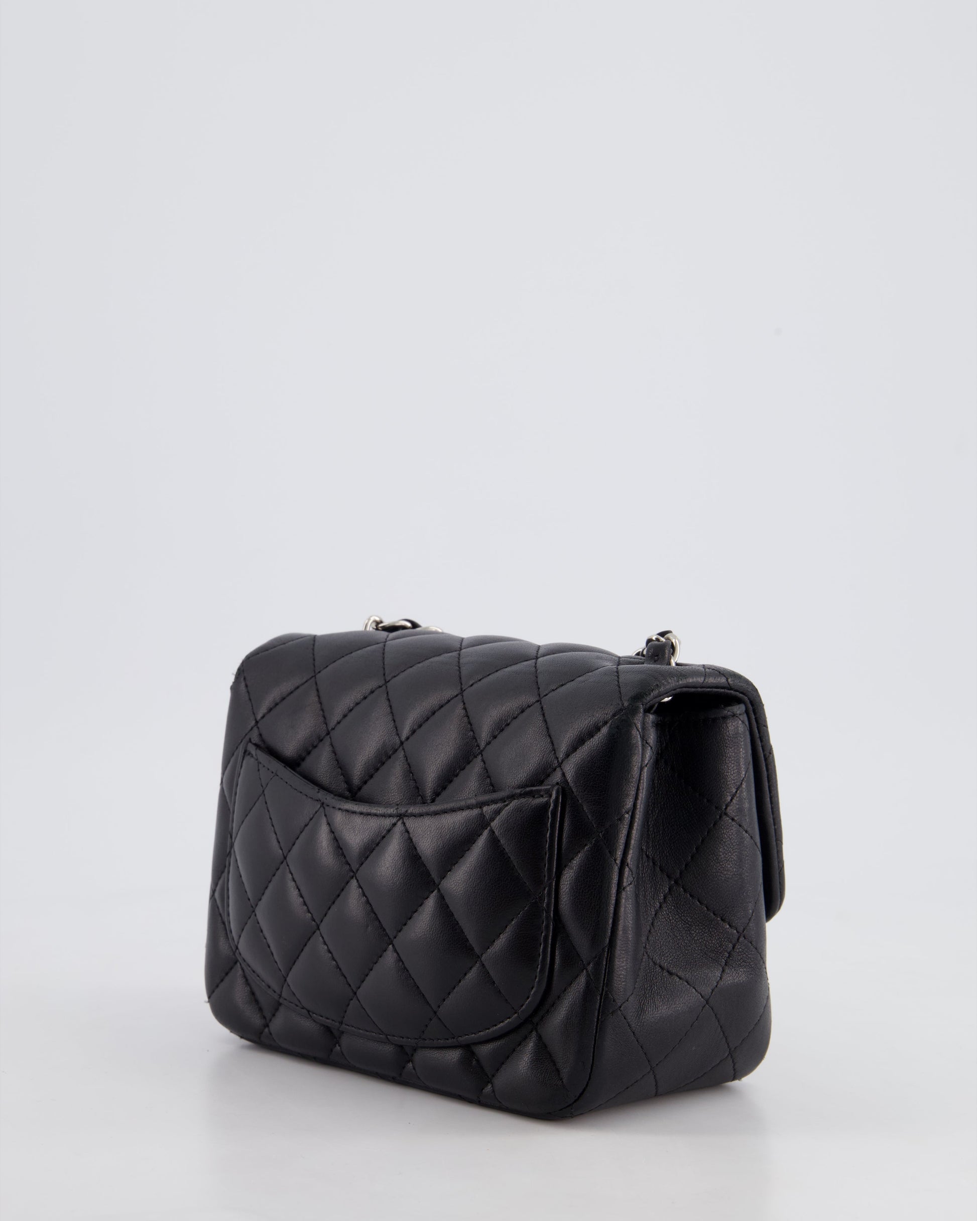 *HOT* Chanel Black Mini Square Flap Bag in Lambskin with Silver Hardware