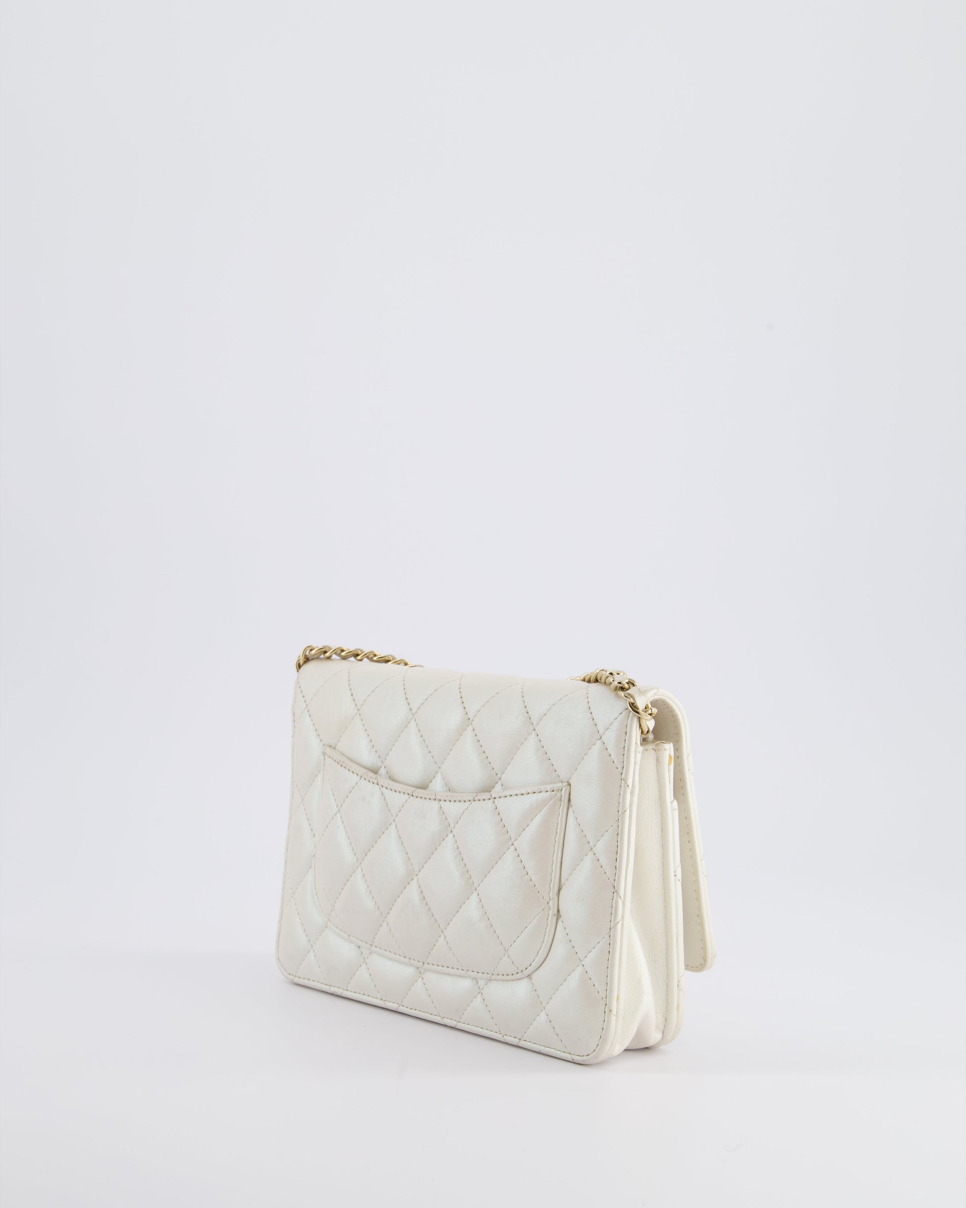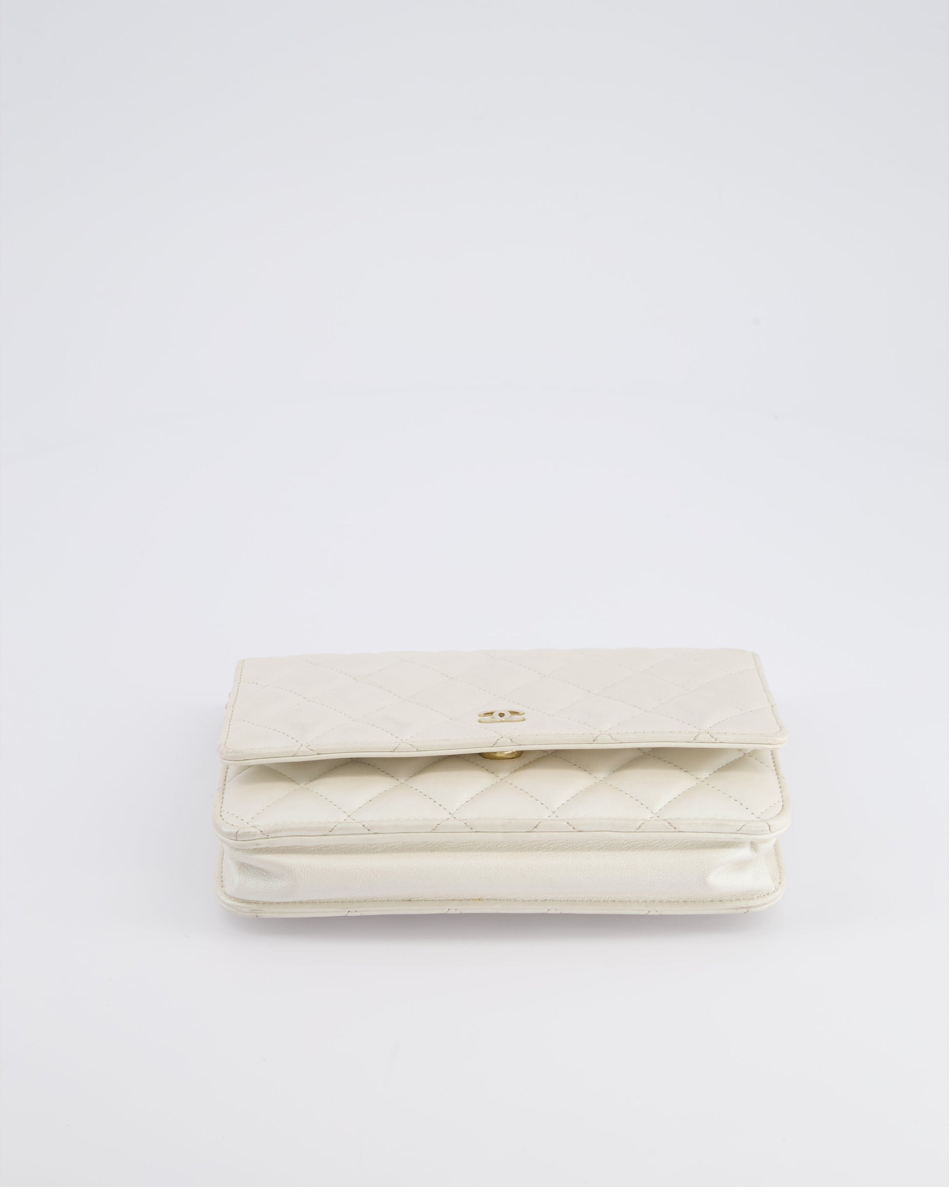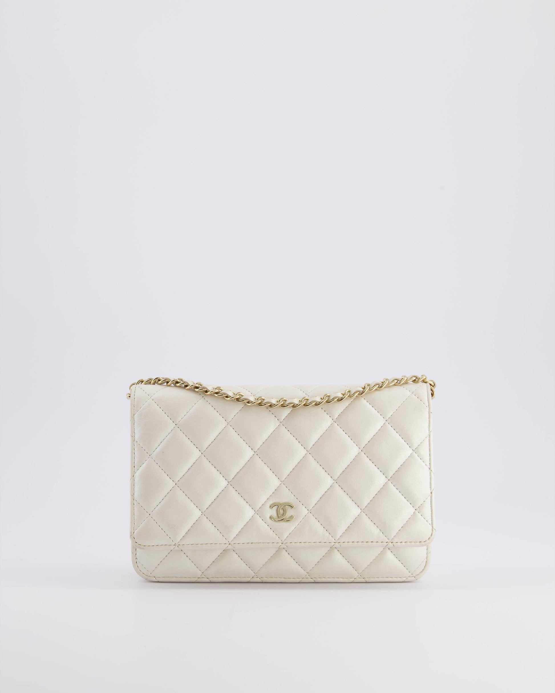 *HOT* Chanel Pearlescent Off-White Wallet on Chain Bag in Calfskin Leather with Champagne Gold Hardware