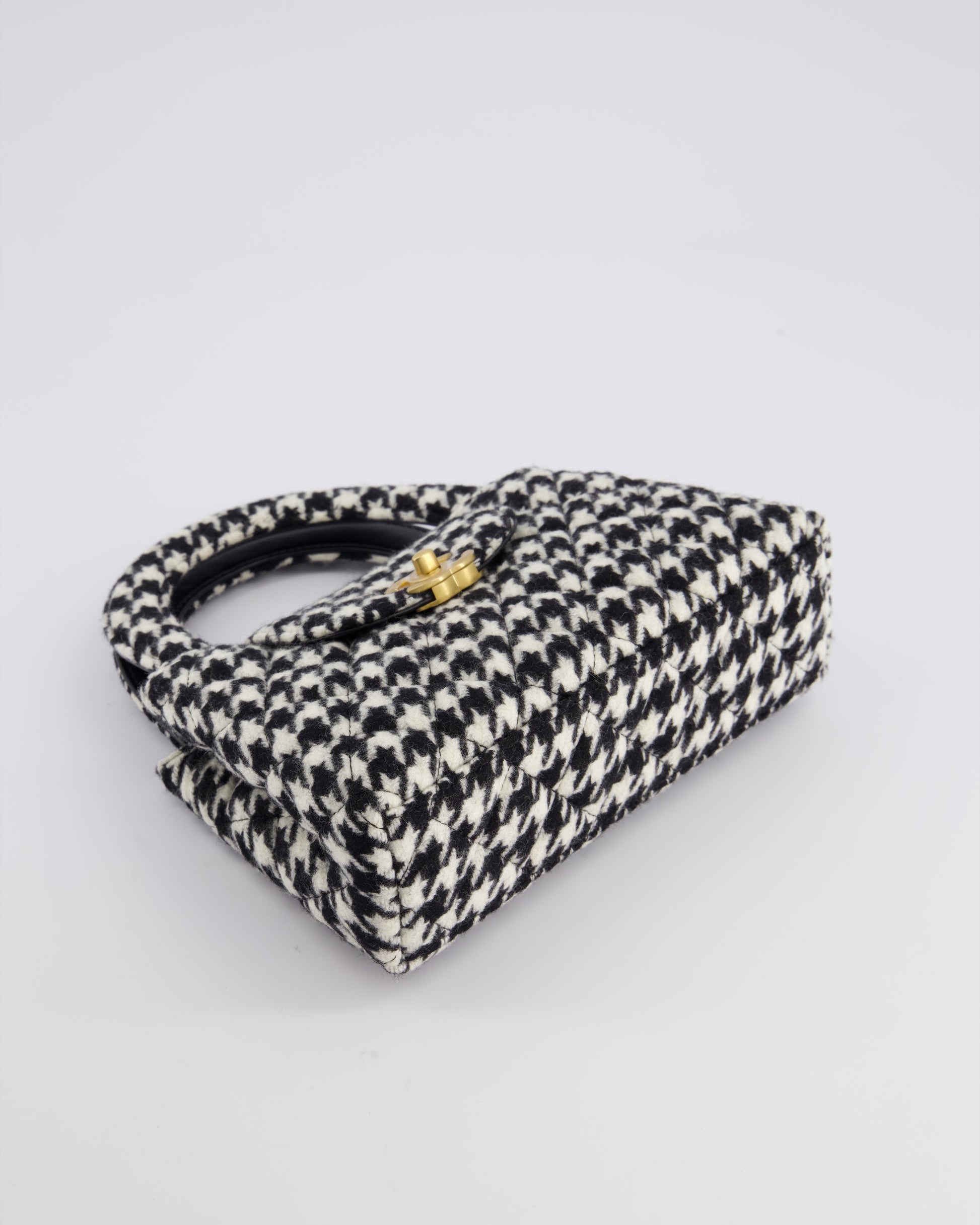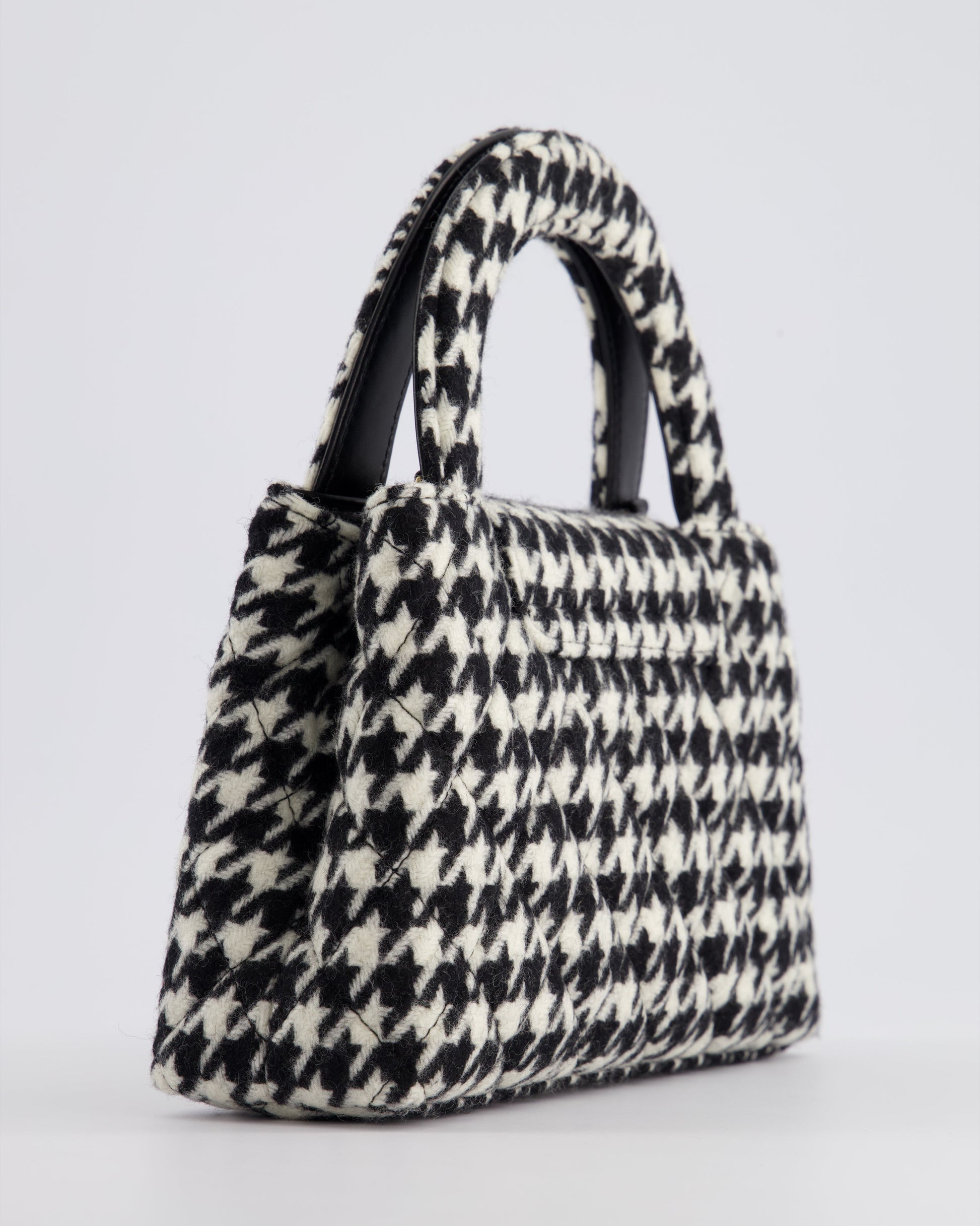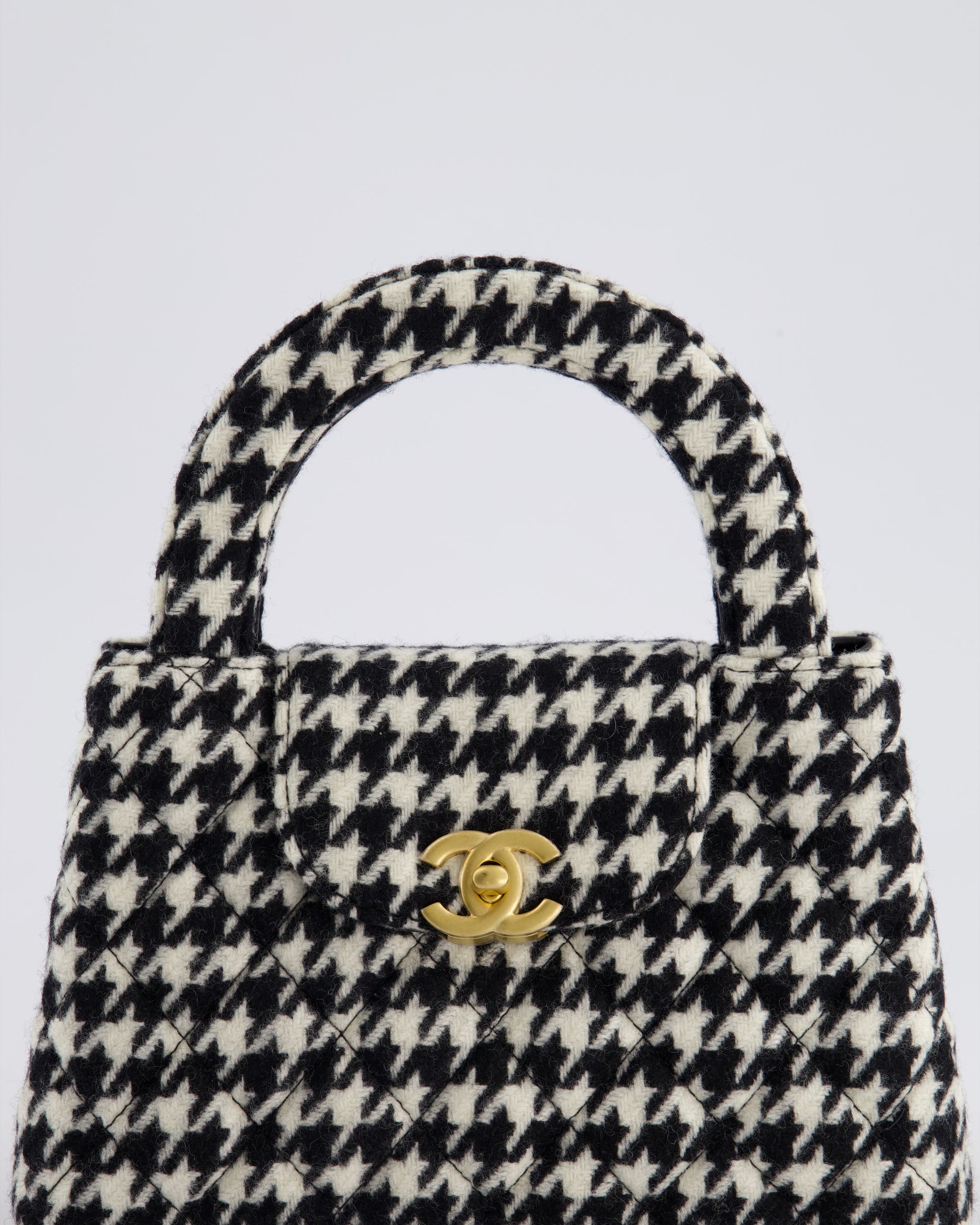 *HOT* Chanel Small Kelly Shopping Bag in Black & White Wool Houndstooth with Brushed Antique Gold Hardware