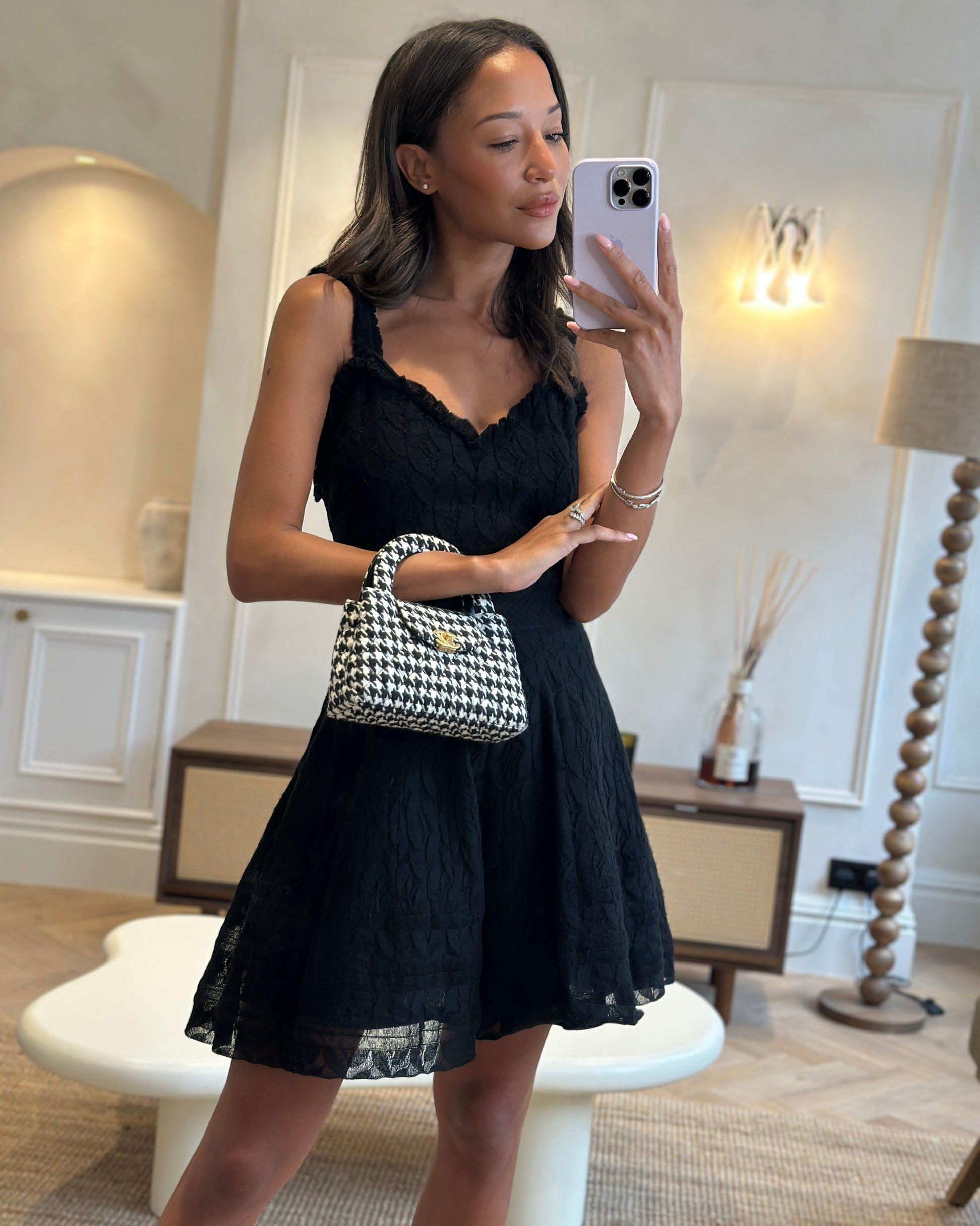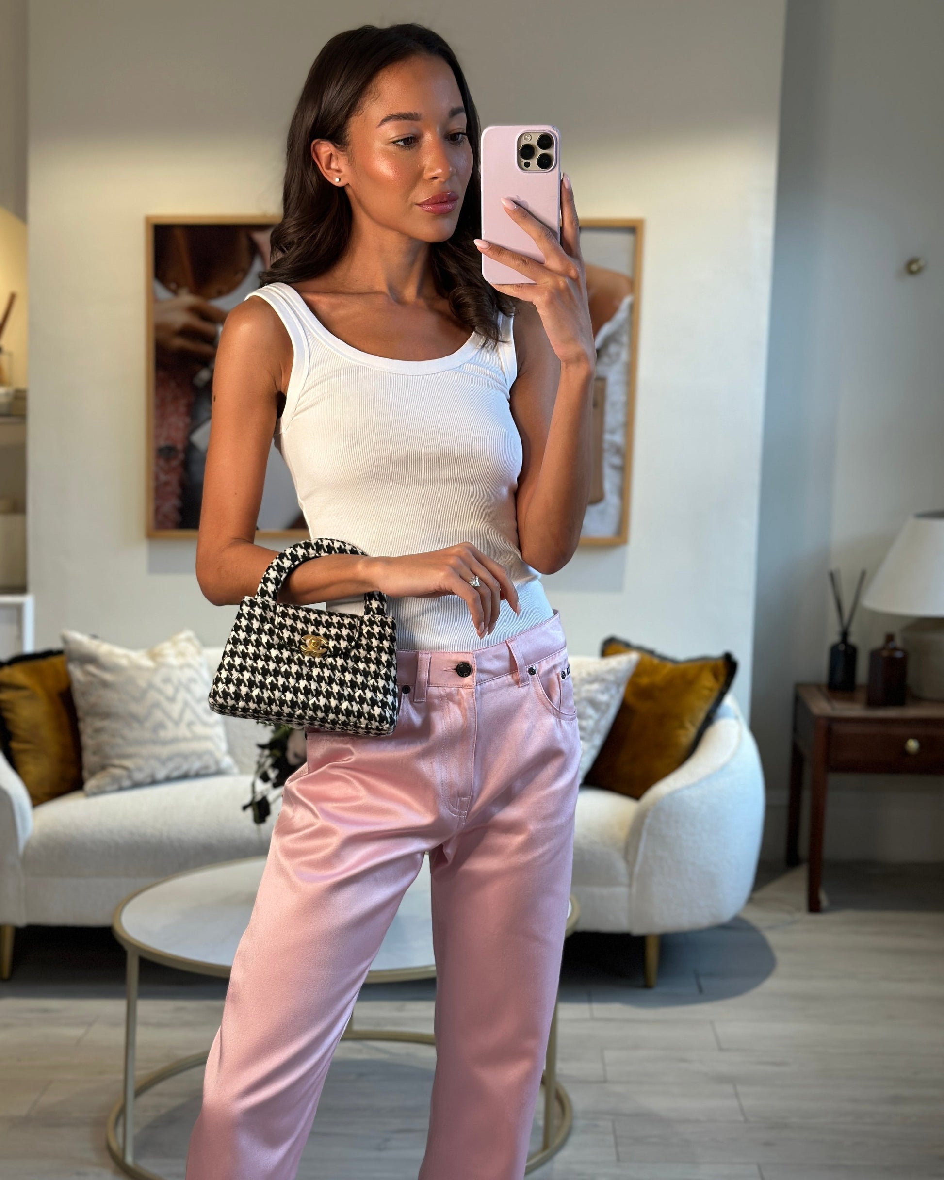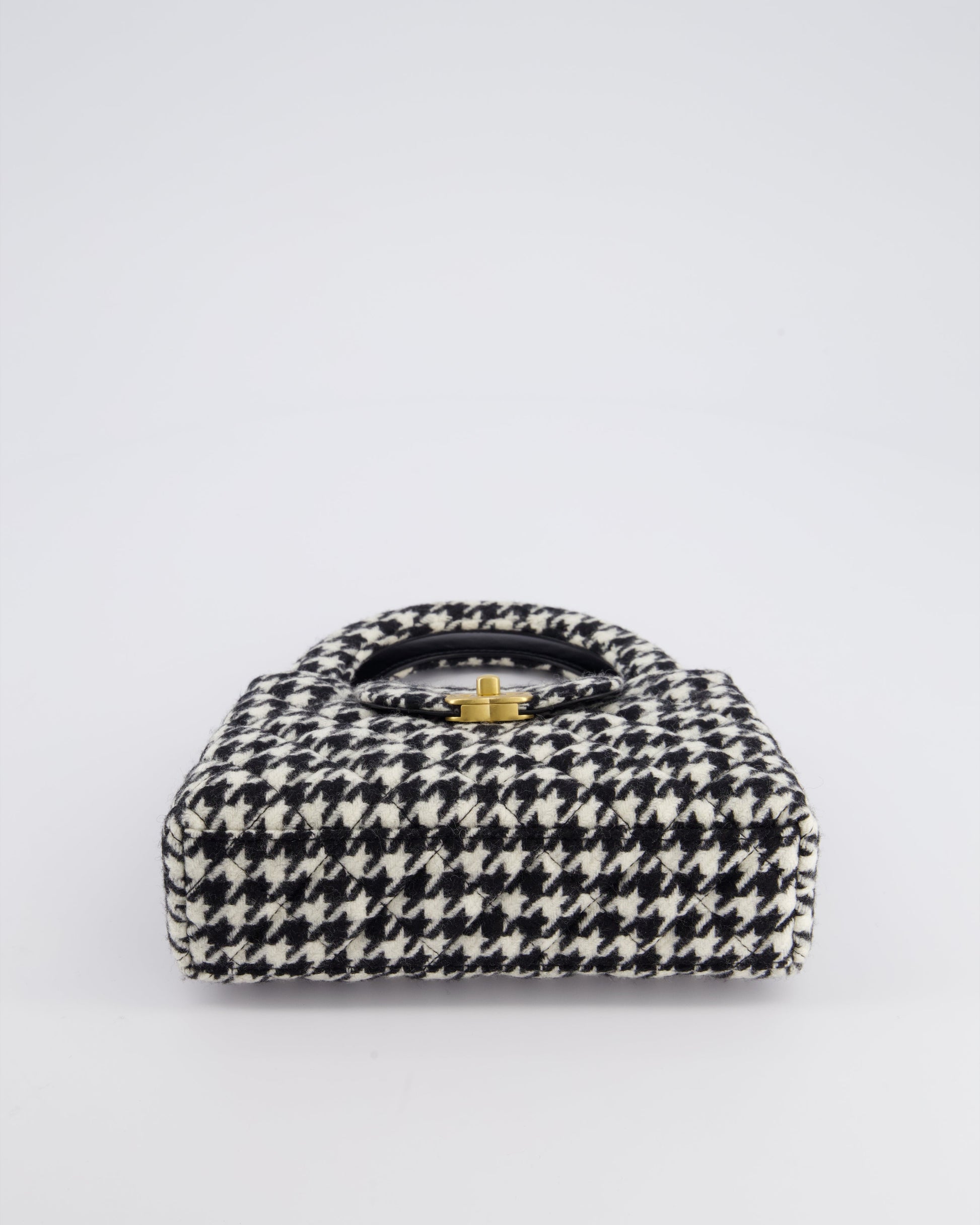 *HOT* Chanel Small Kelly Shopping Bag in Black & White Wool Houndstooth with Brushed Antique Gold Hardware