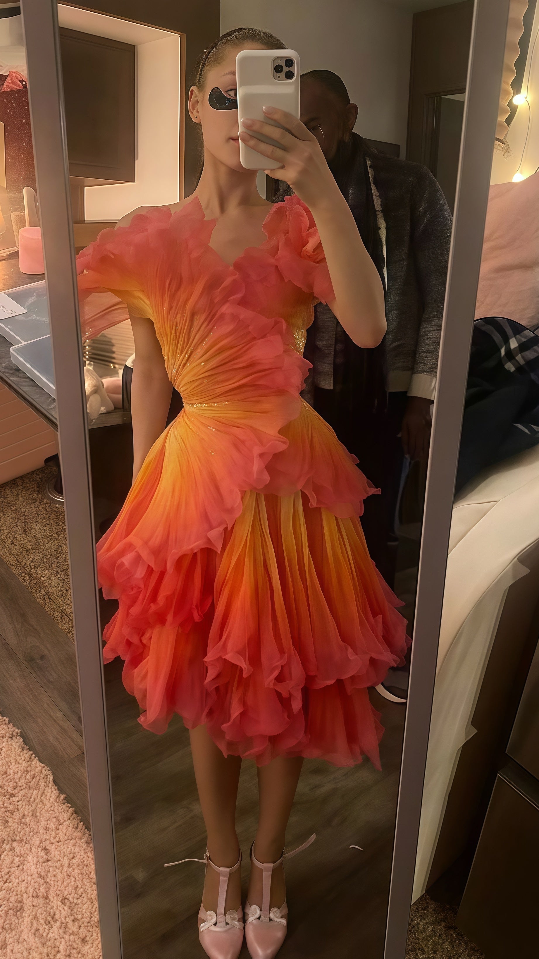 Hot Floral Red Yellow Party Dress, Beaded Ruffle Mini Prom Hoco Dress,AST1806