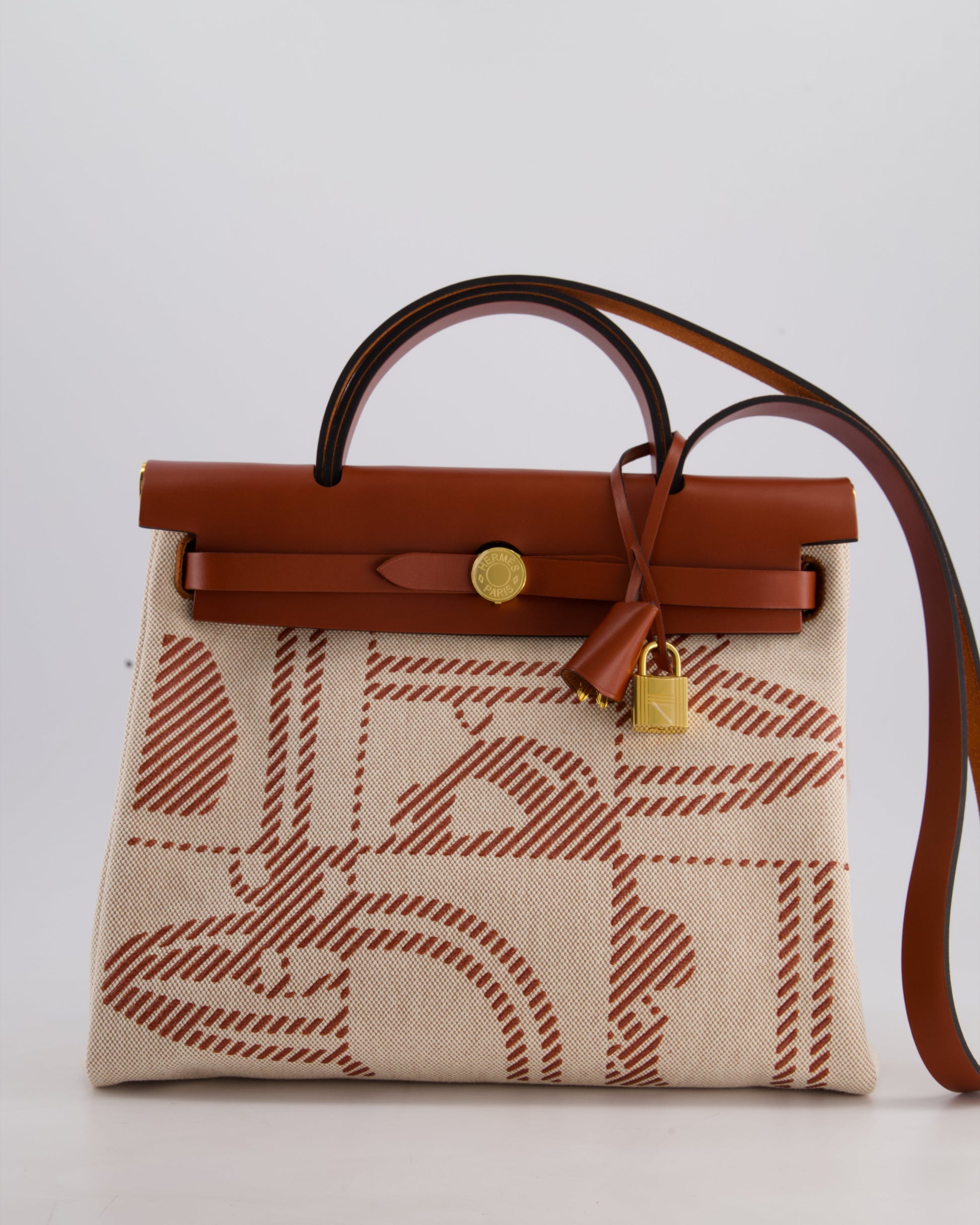 *HOT* Hermès Herbag Zip Retourne 31 Brides De Gala Bag in Rouge H & Ecru Toille H Canvas, Rouge H Vache Hunter Leather with Gold Hardware