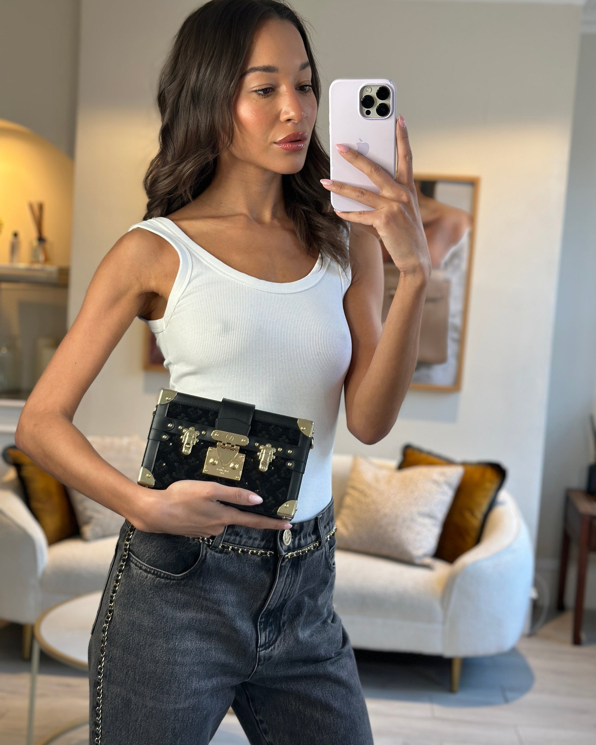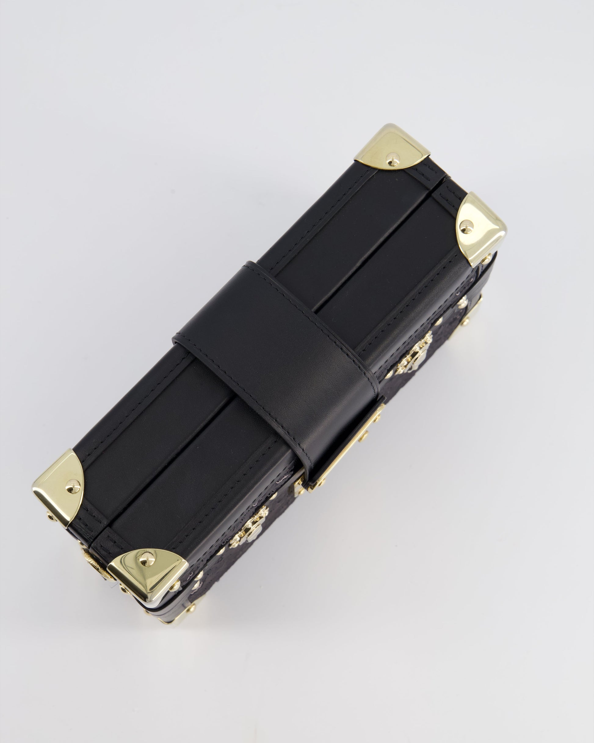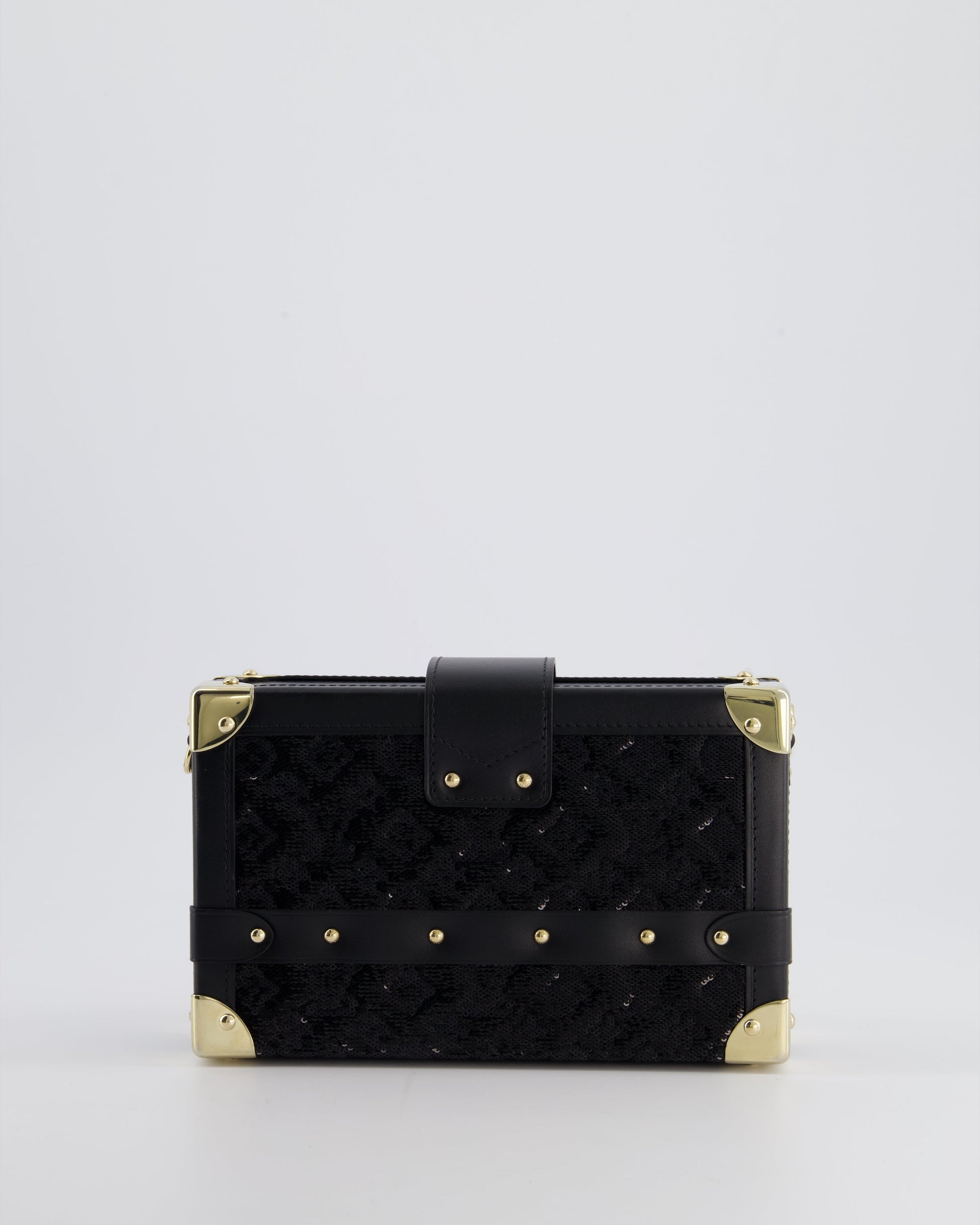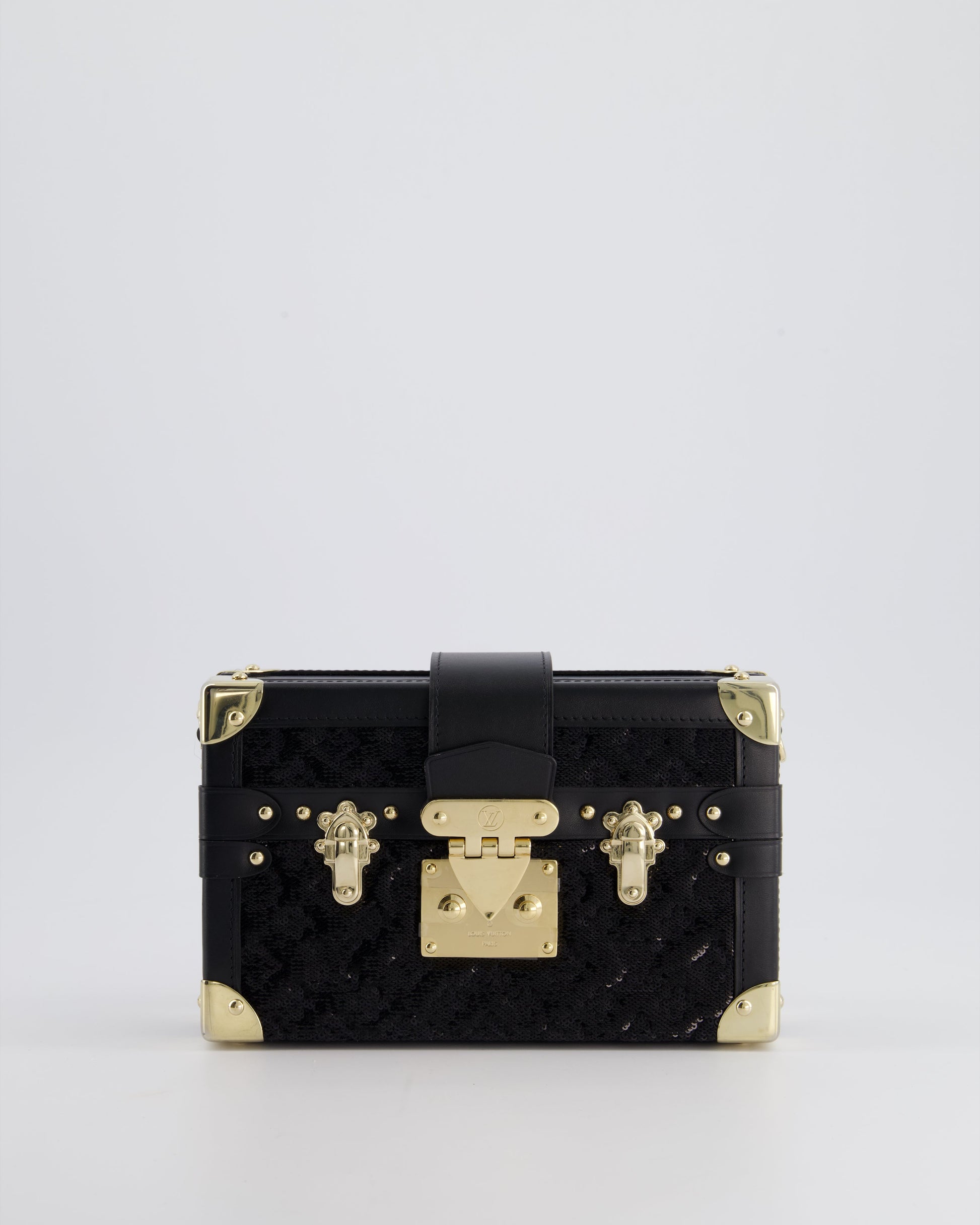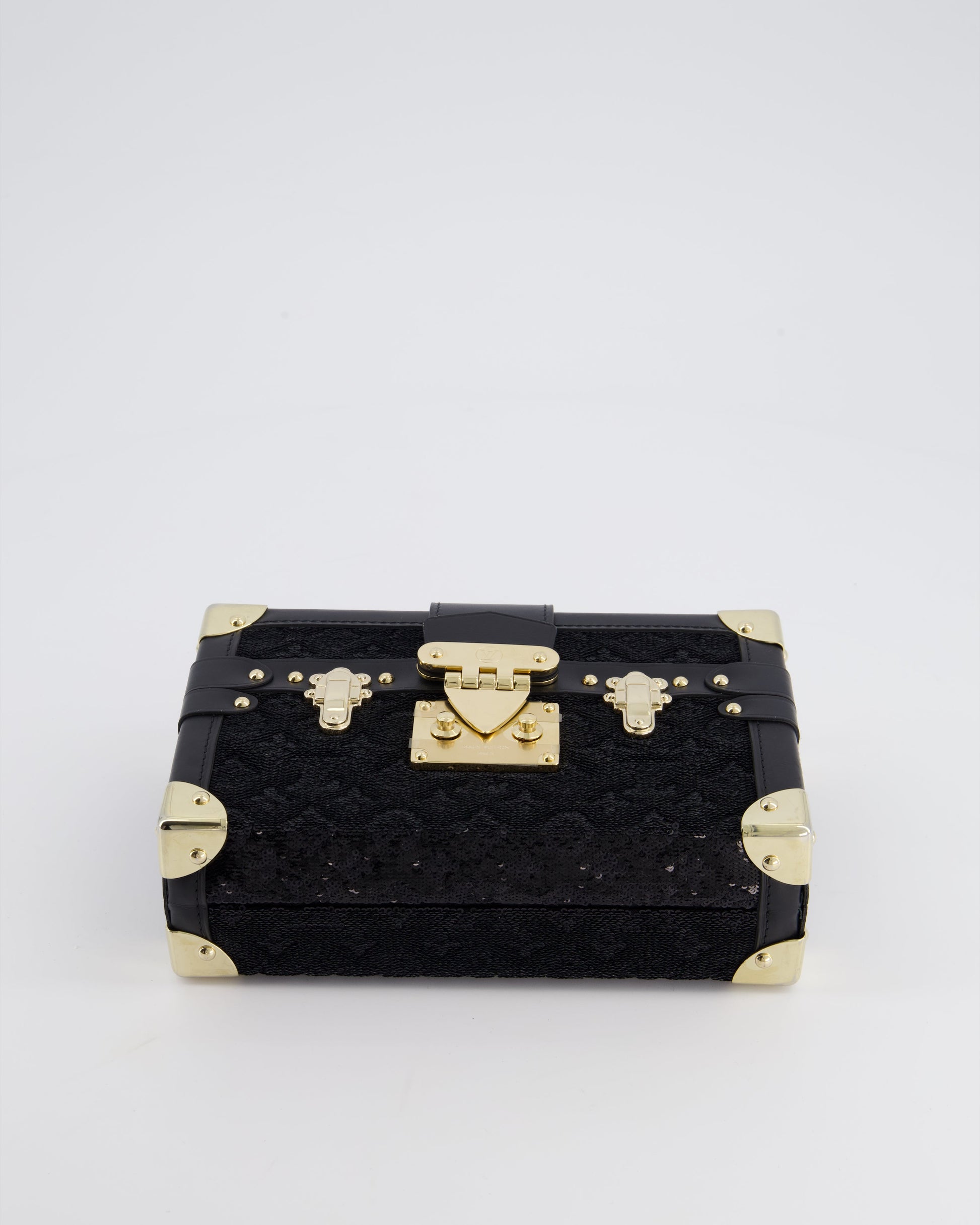 *HOT* Louis Vuitton Sequin Black Petite Malle Monogram Handbag with Gold Hardware