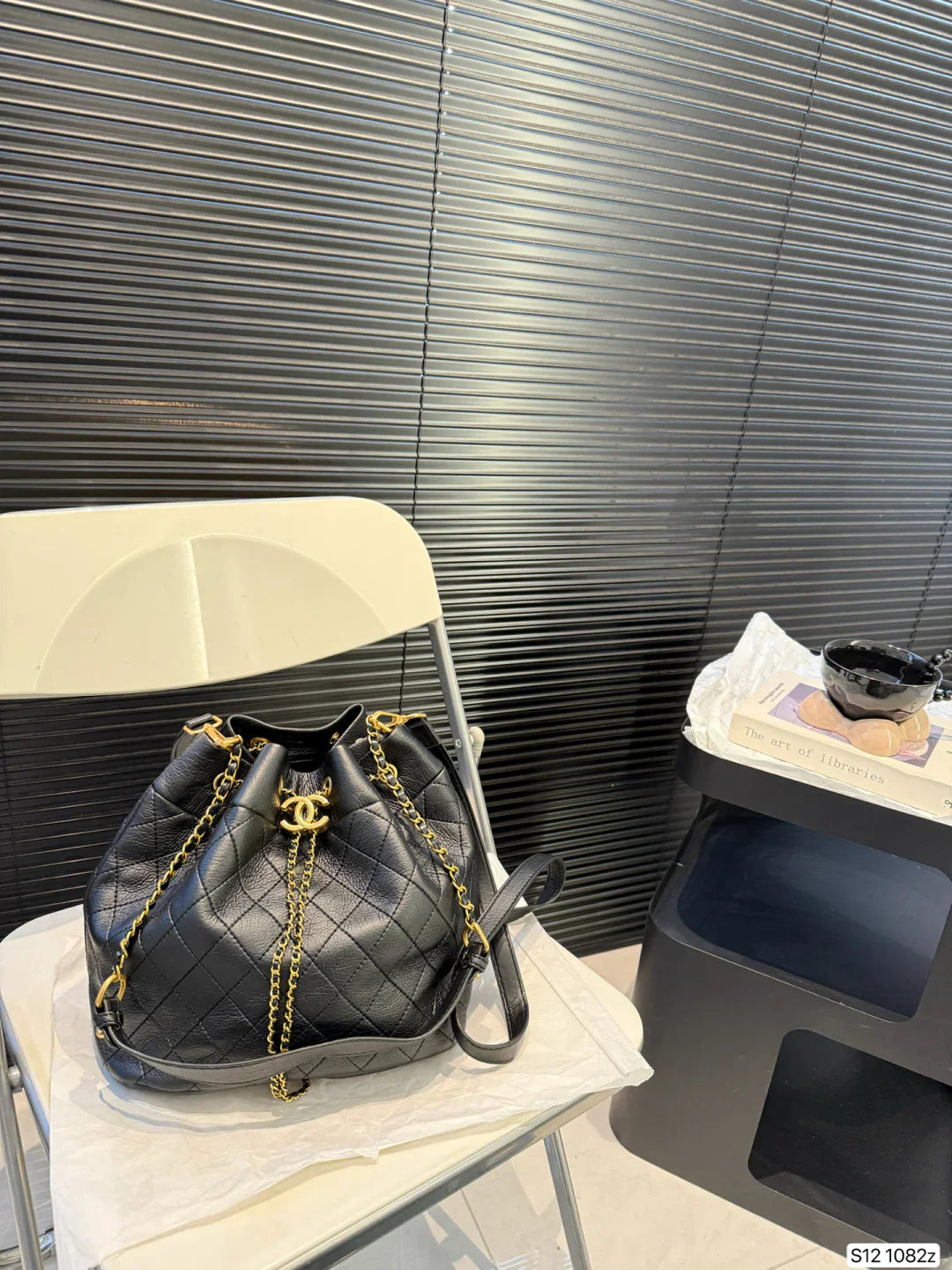 Louis Vuitton LV Black Tote Bag Slidable Metal Chain 26x17cm