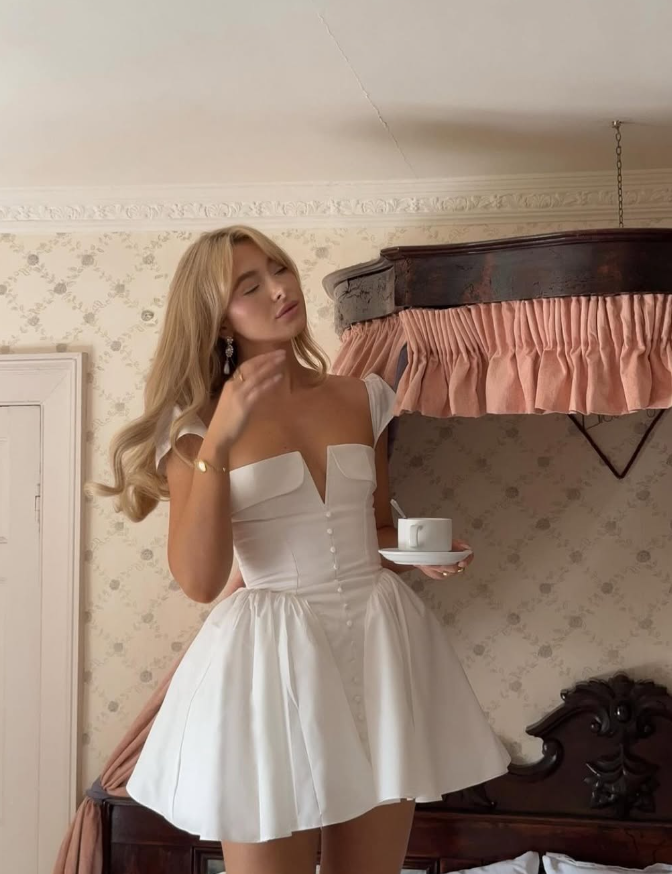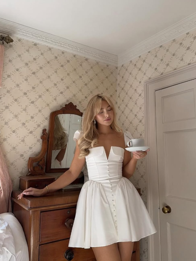 Princess A Line V Neck White Satin Short Homecoming Dress Birthday Dress SH2238