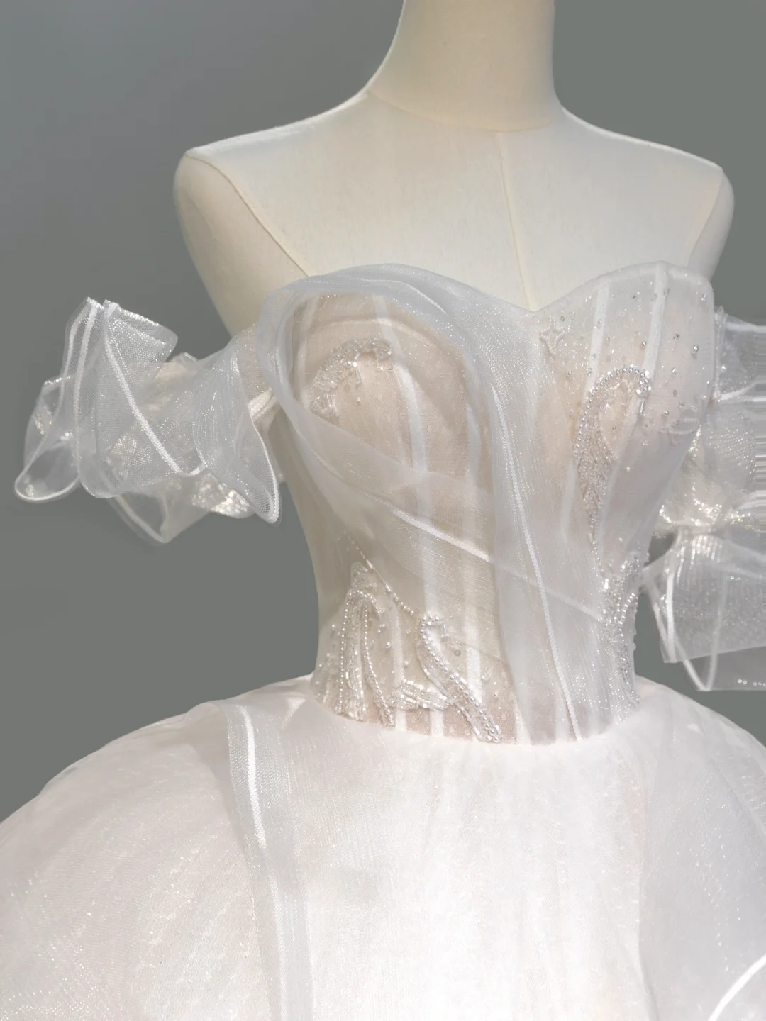 Princess Bridal Dress Ball Gown Off The Shoulder White Tulle Long Wedding Dress Simple Wedding Dresses Modest Wedding Gowns DH2044
