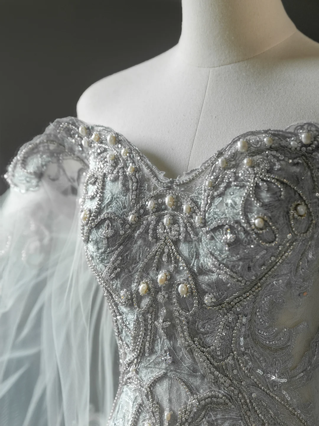 Princess Bridal Dress Mermaid Off The Shoulder Lace Tulle Long Sleeves Wedding Dress With Long Sleeves Wedding Dresses Modest Wedding Gowns DH2065