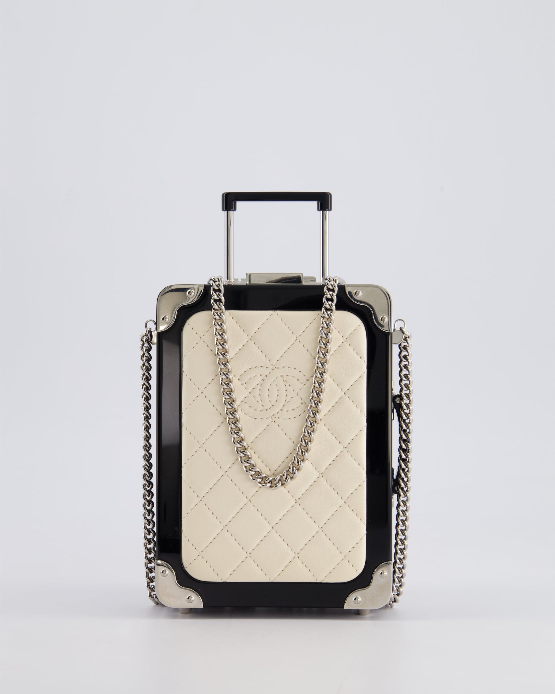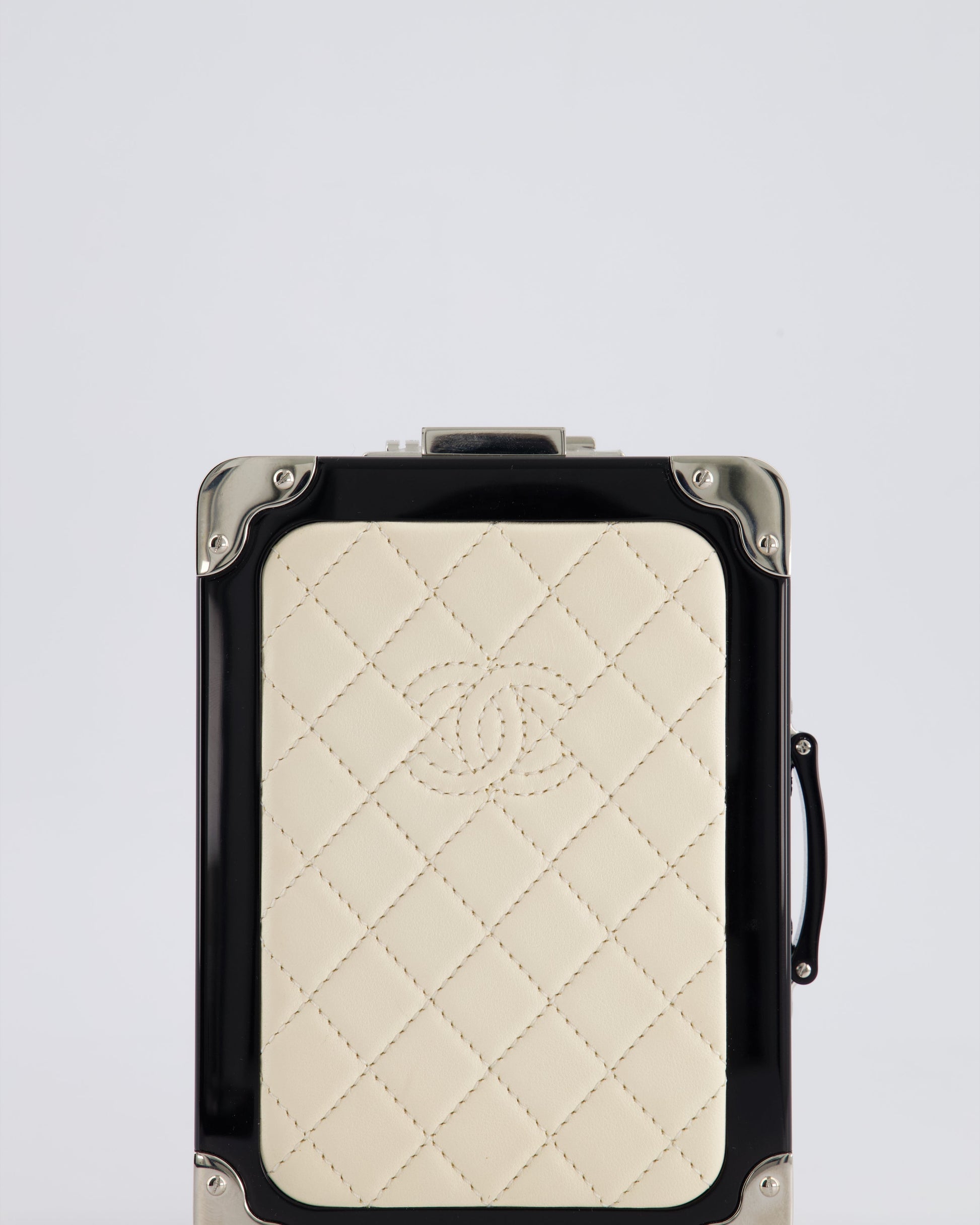 *RARE* Chanel 2016 Airlines Evening In The Air Trolley Minaudière Bag with Silver Hardware and Quilted Leather with CC Logo Detail