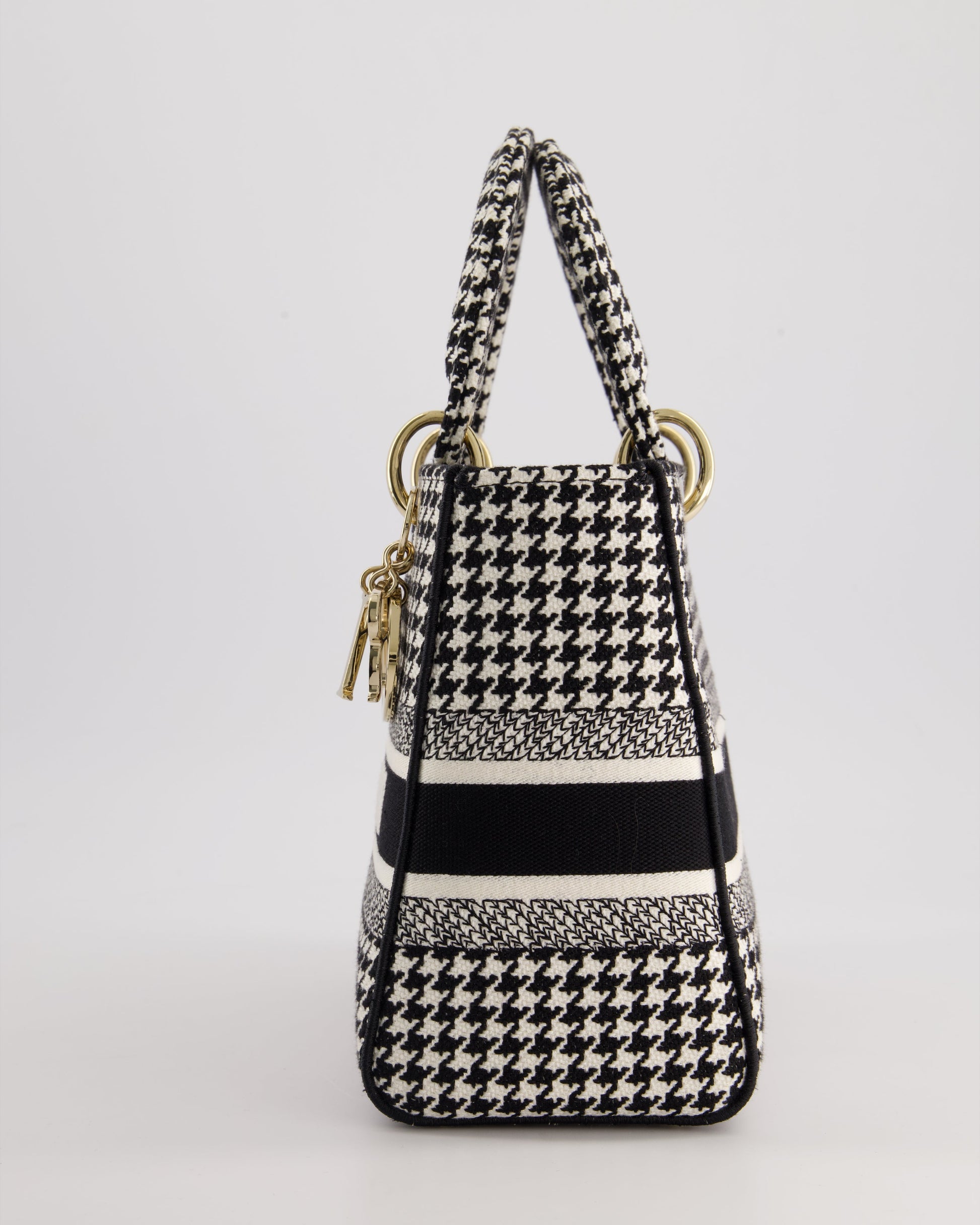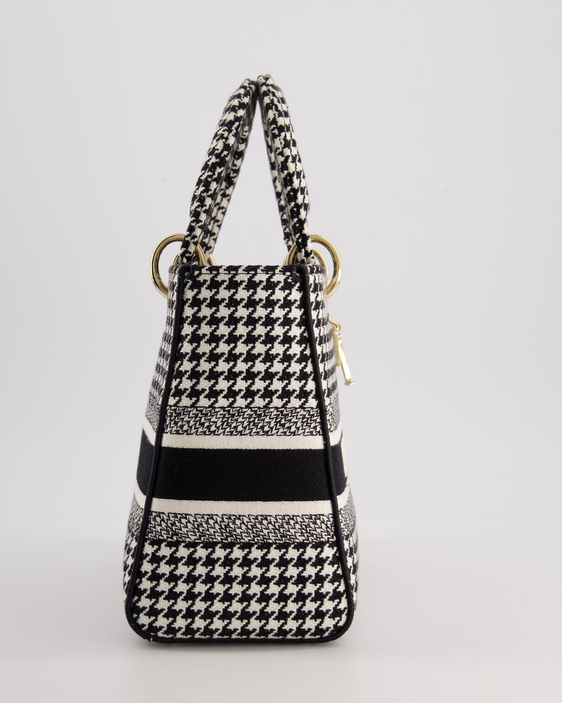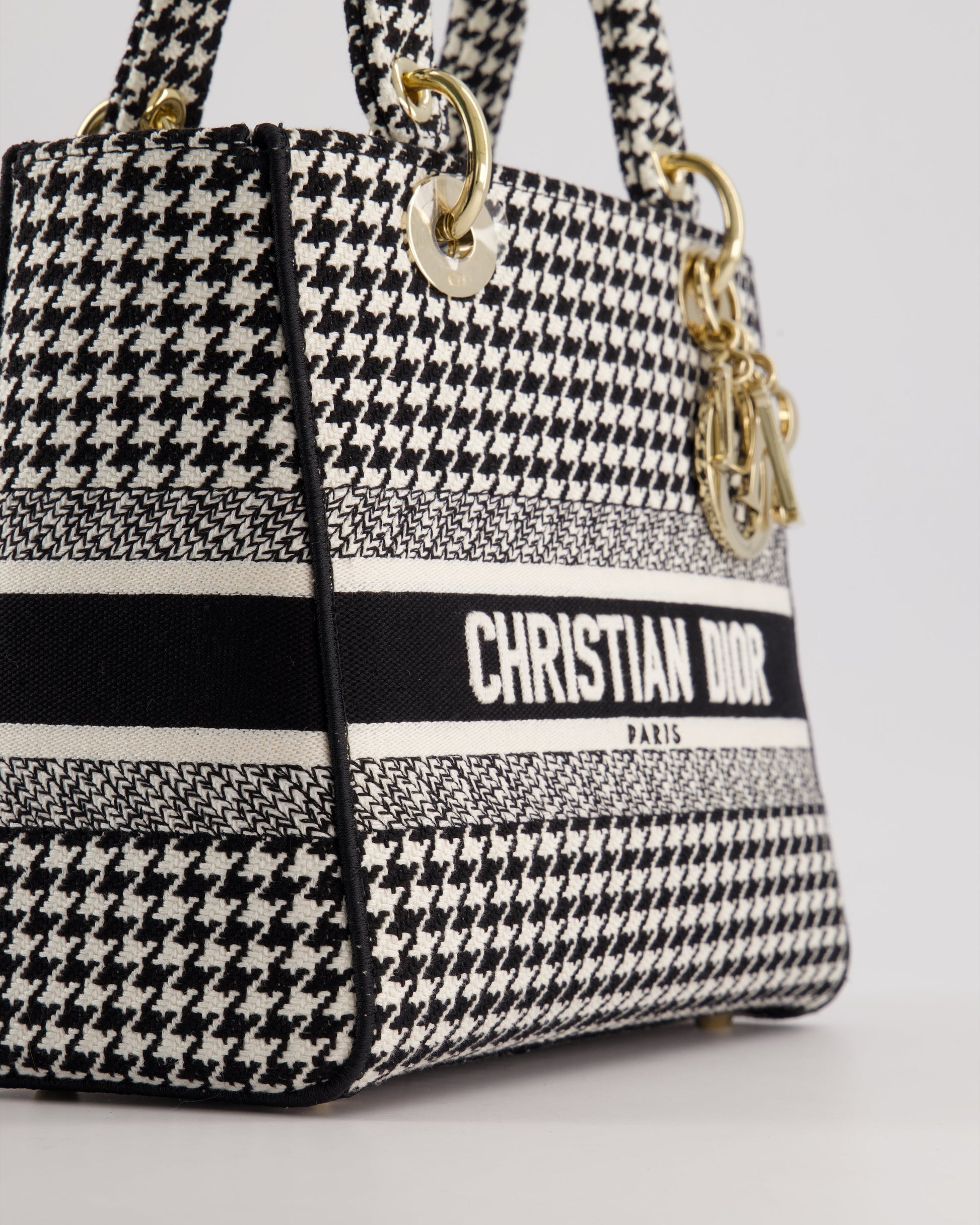 *RARE* Christian Dior Black & White Houndstooth Medium Lady Dior Bag in Canvas with Champagne Gold Hardware
