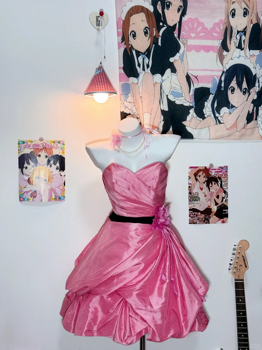Retro Pink Ball Gown Birthday Dress Sweetheart Neck Short Homecoming Dress Sweet Taffeta Formal Dress ED03947
