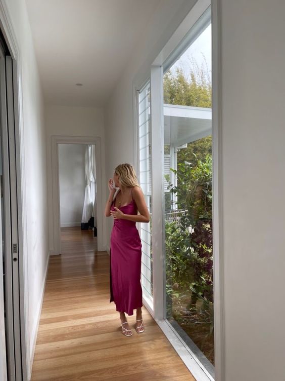 Sexy Sheath Straps Silk Satin Slit Prom Dresses P1220