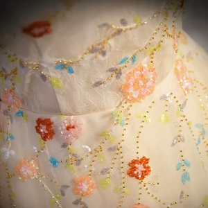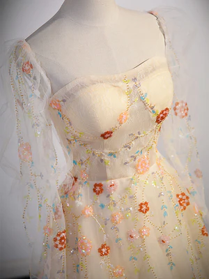 Shiny A Line Sequins Long Sleeves Champagne Lace Beaded Long Prom Dresses,Floral Long Formal Evening Dresses GG031