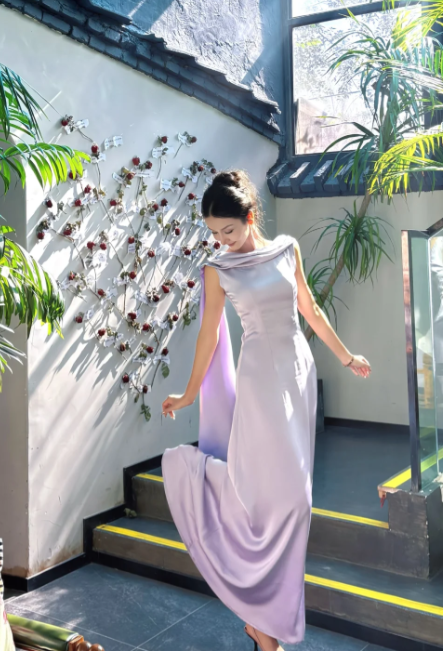 Simple Sheath Satin Purple Bridesmaid Dresses Purple Formal Dresses ED05008