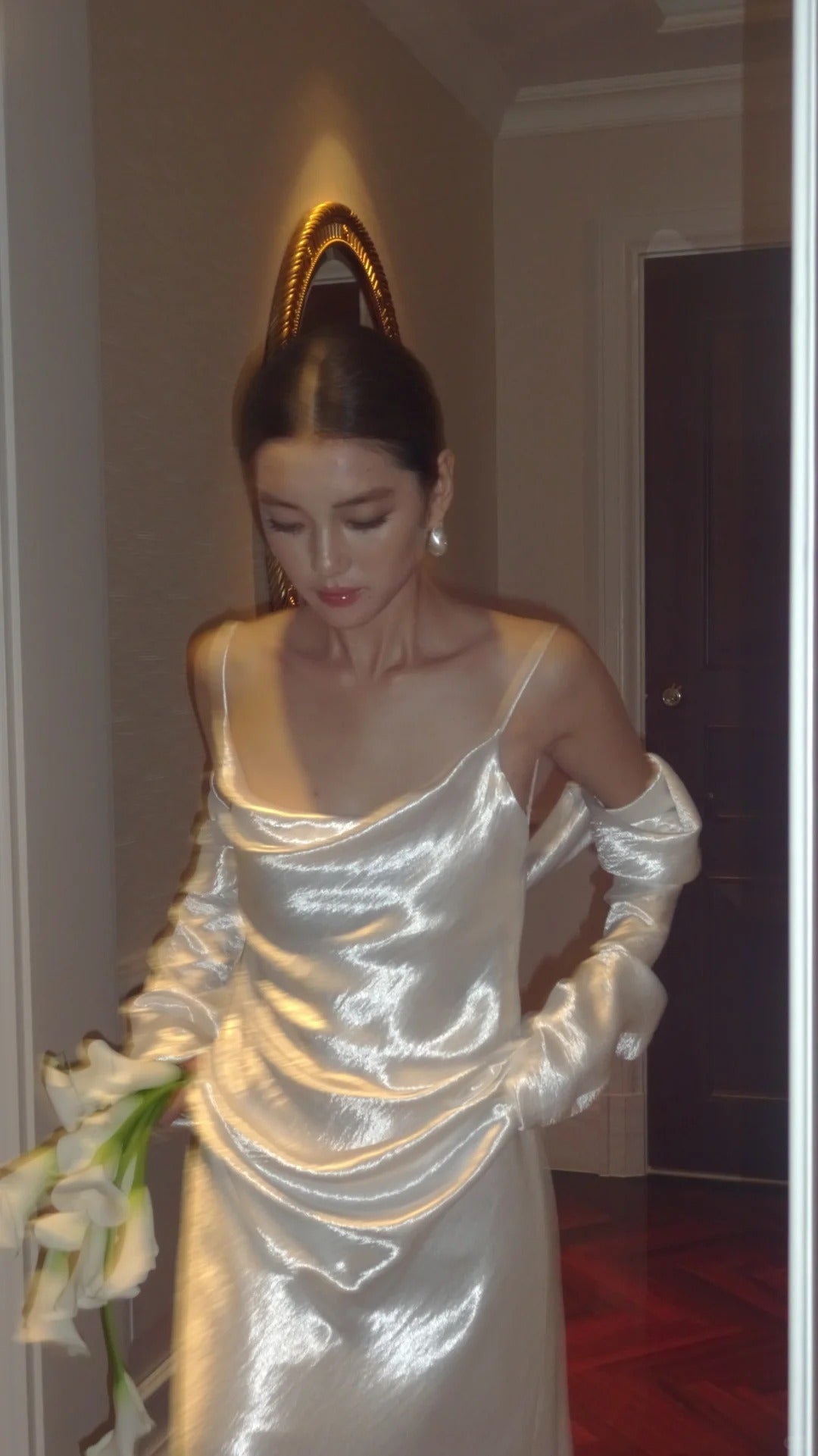 Simple Spaghetti Strap Sheath Wedding Dresses Silk White Backless Bridal Gowns DP3351
